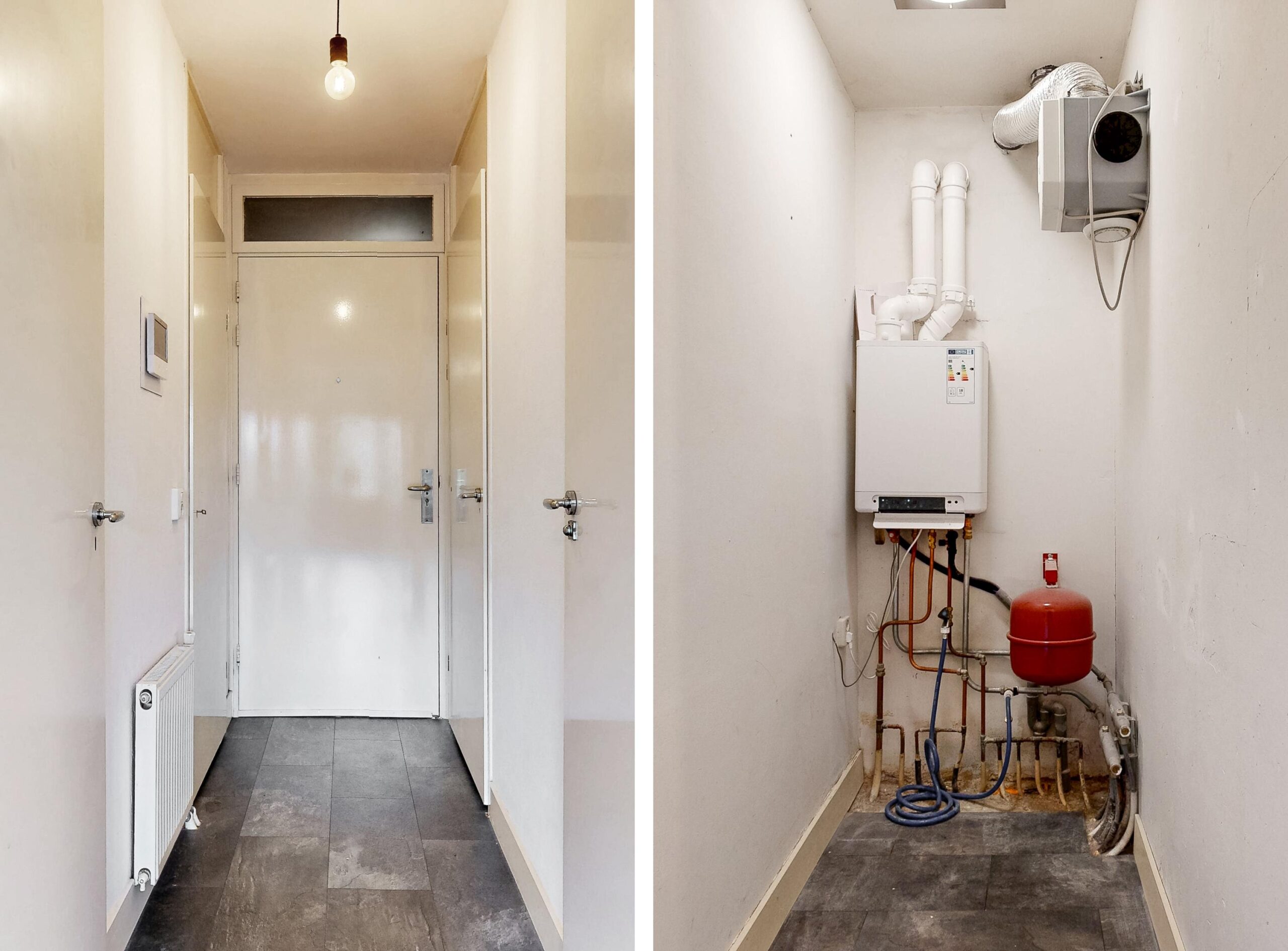 Indeling: hal met video-intercom, bergkast met cv-opstelling (2024) en mechanische ventilatie, wit/grijze badkamer met inloopdouche, wandcloset, wasmachineaansluiting en wastafel in meubel, ruime woonkamer met frans balkon en vrij uitzicht, open keuken met moderne U-vormige unit voorzien van inbouw koelkast, vriezer, vaatwasser, combimagnetron, 4-pits gaskomfoor en afzuigkap, ruime slaapkamer met kastenwand en een hobby-/babykamer.