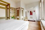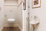 doorloop naar het tweede gedeelte. Allen voorzien van een houten vloer en hoge plafonds. Overloop met toilet en