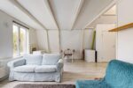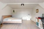 Vanuit de hal toegang tot de ruime open zolderruimte, thans in gebruik als slaap/leefruimte. Hier kan gemakkelijk