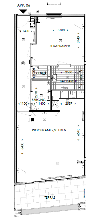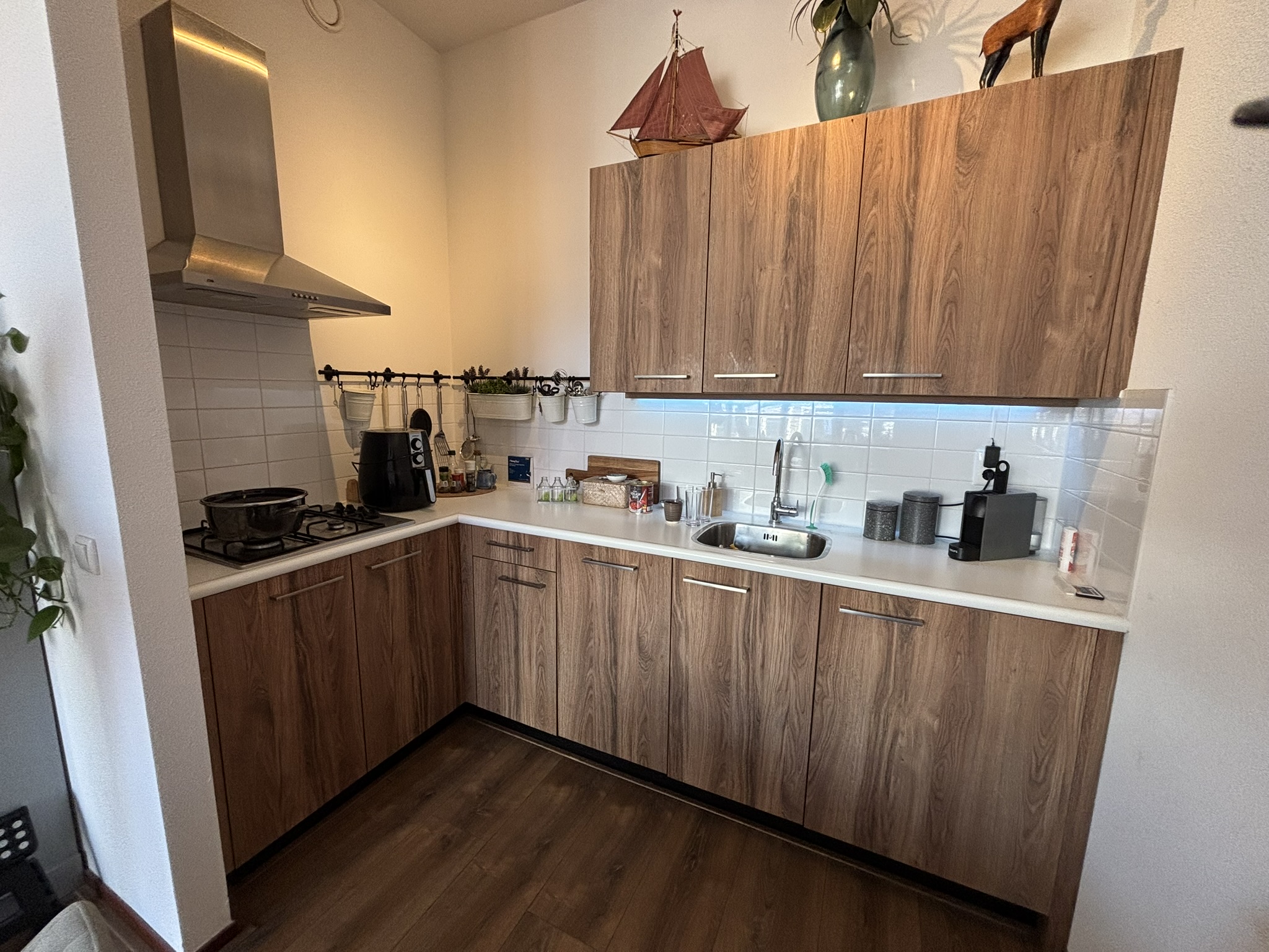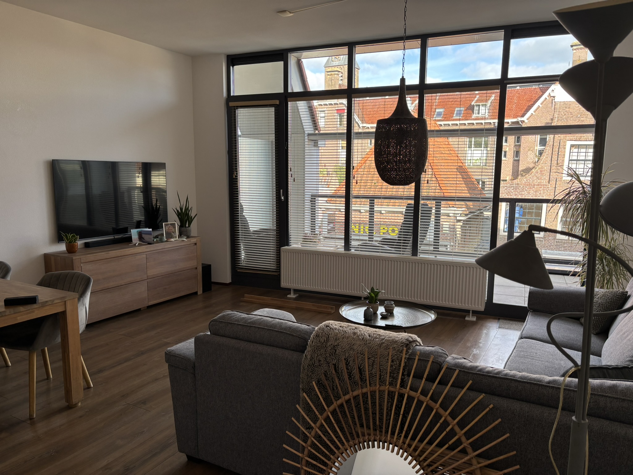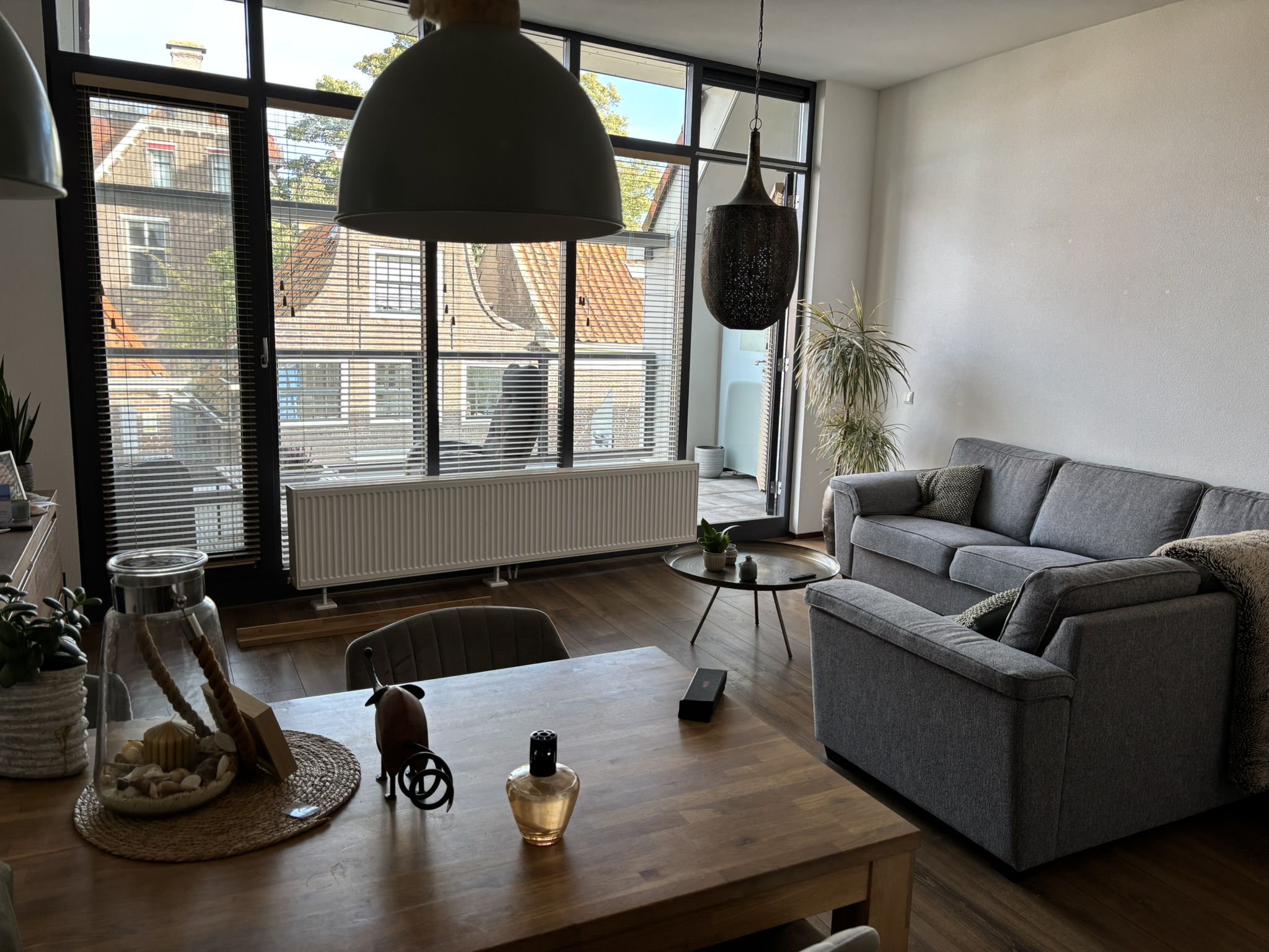 Eigentijds 2-kamer appartement (2018) gesitueerd op de per lift bereikbare eerste verdieping met royaal terras (circa 12 m2) en direct bij de winkels, haven en andere geneugten van de binnenstad. Indeling: ruime hal, slaapkamer, wit/grijze badkamer met inloopdouche en wastafel, separaat toiletruimte voorzien van wandcloset, bergruimte met cv-/wasmachineopstelling, ruime woonkamer met toegang tot dakterras, open keuken met L-vormige unit voorzien van inbouw koelkast, vaatwasser, gaskomfoor en afzuigkap. Keurig afgewerkt met spuitwerk wanden en circa 3 meter hoog plafond.