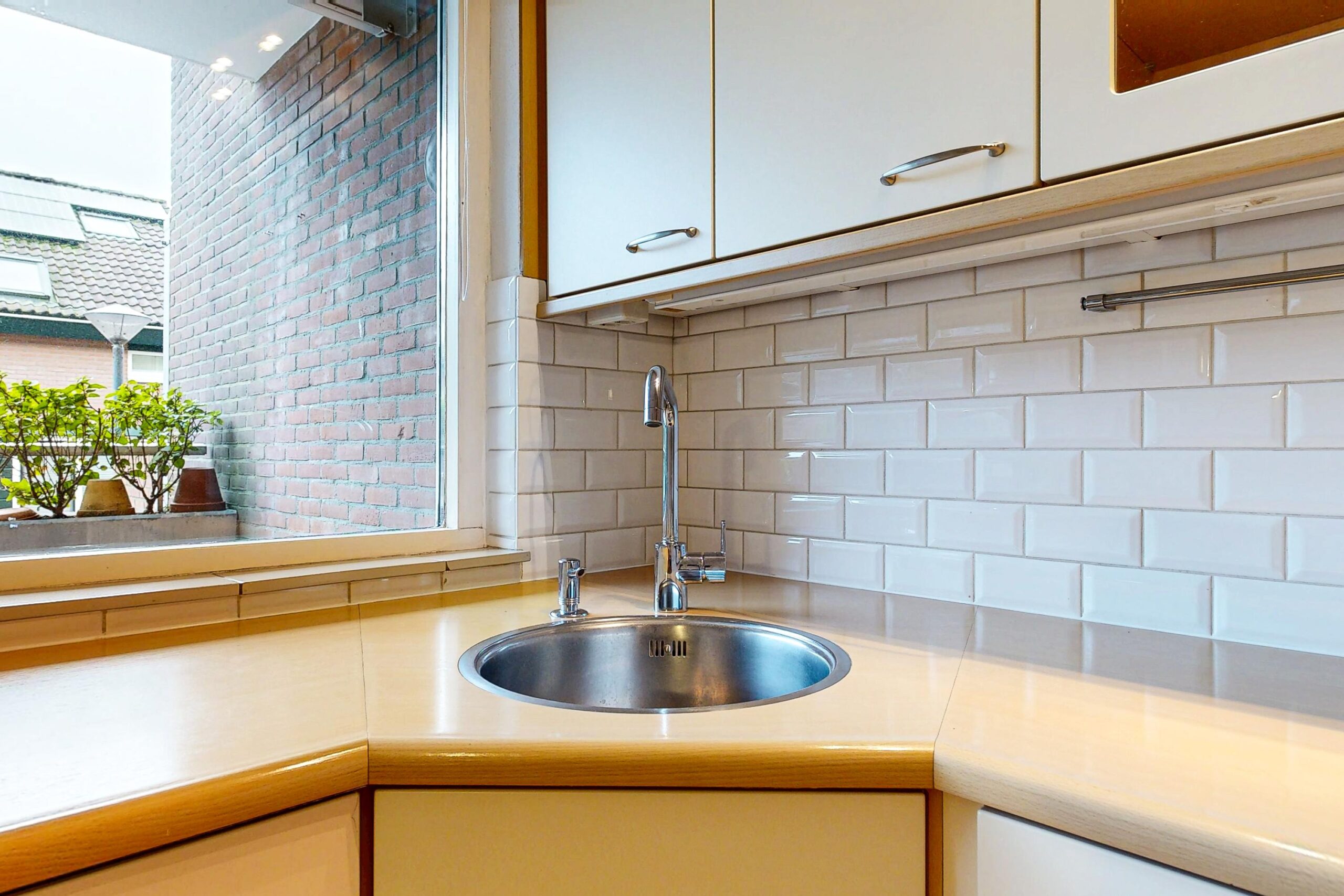 Indeling: hal met cv-ruimte en kast met wasmachine-/drogeraansluiting, badkamer met douchecabine, wastafel in meubel en wandcloset, 2 slaapkamers en ruime woonkamer met veel lichtinval en 2 balkons (1x op het oosten en 1x op het westen), half open keuken met roomwitte U-vormige unit voorzien van inbouw elektrische oven, inductiekookplaat, rvs afzuigkap, vriezer, vaatwasser en kickspace.