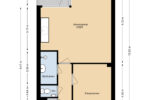 Indeling: ruime hal, cv ruimte, toilet, slaapkamer, badkamer met douche, wastafel en wasmachine-aansluiting, woonkamer met open keuken voorzien van wit recht unit en toegang tot het zonnige balkon.