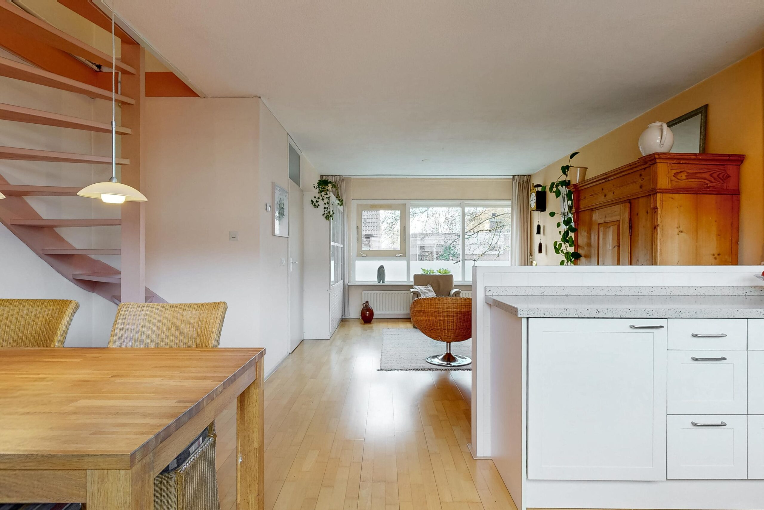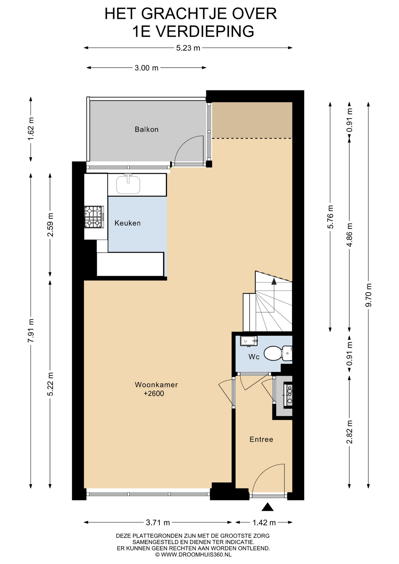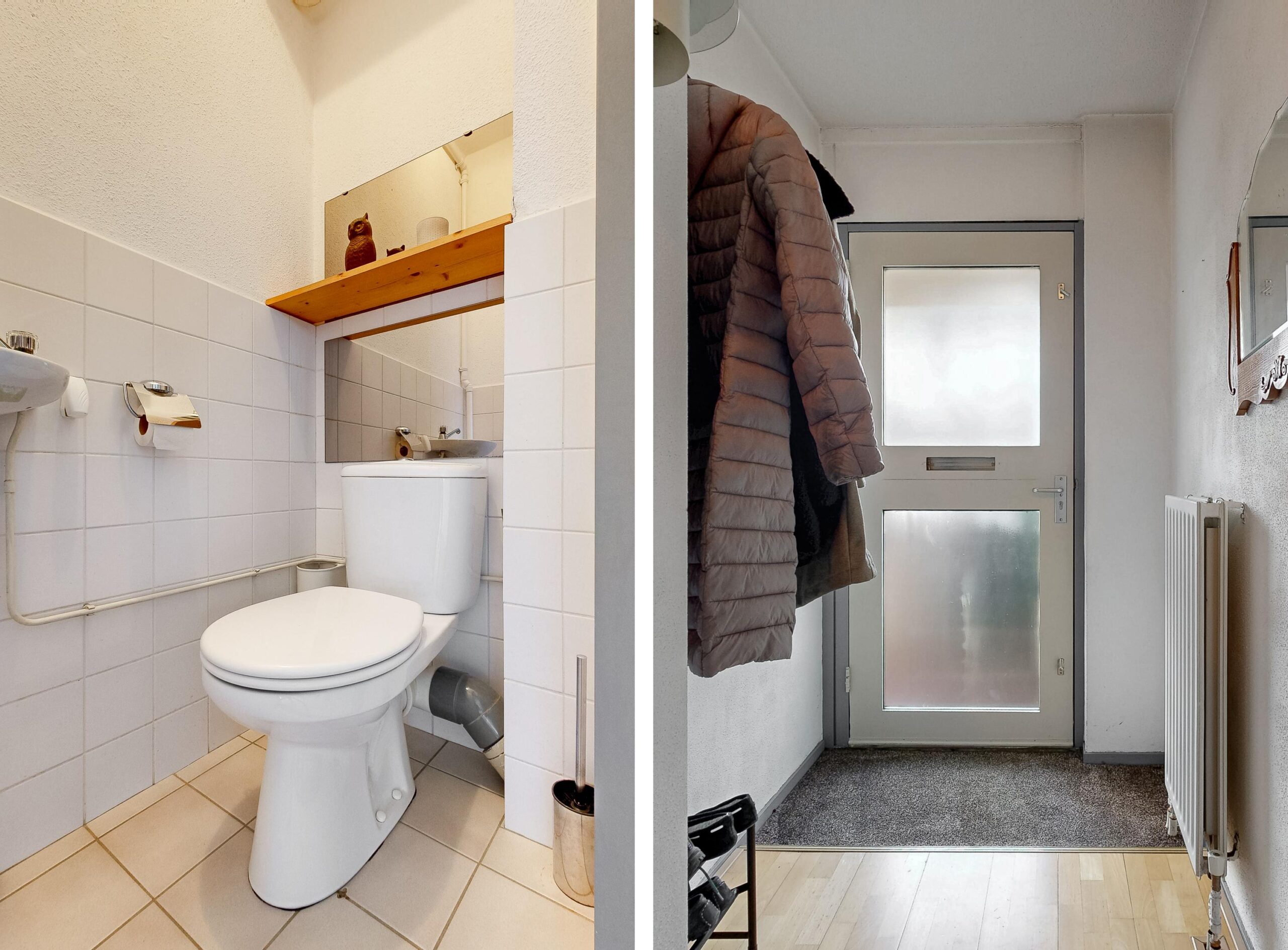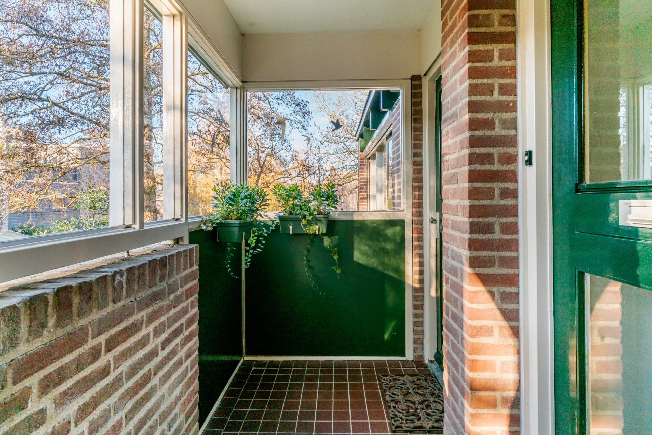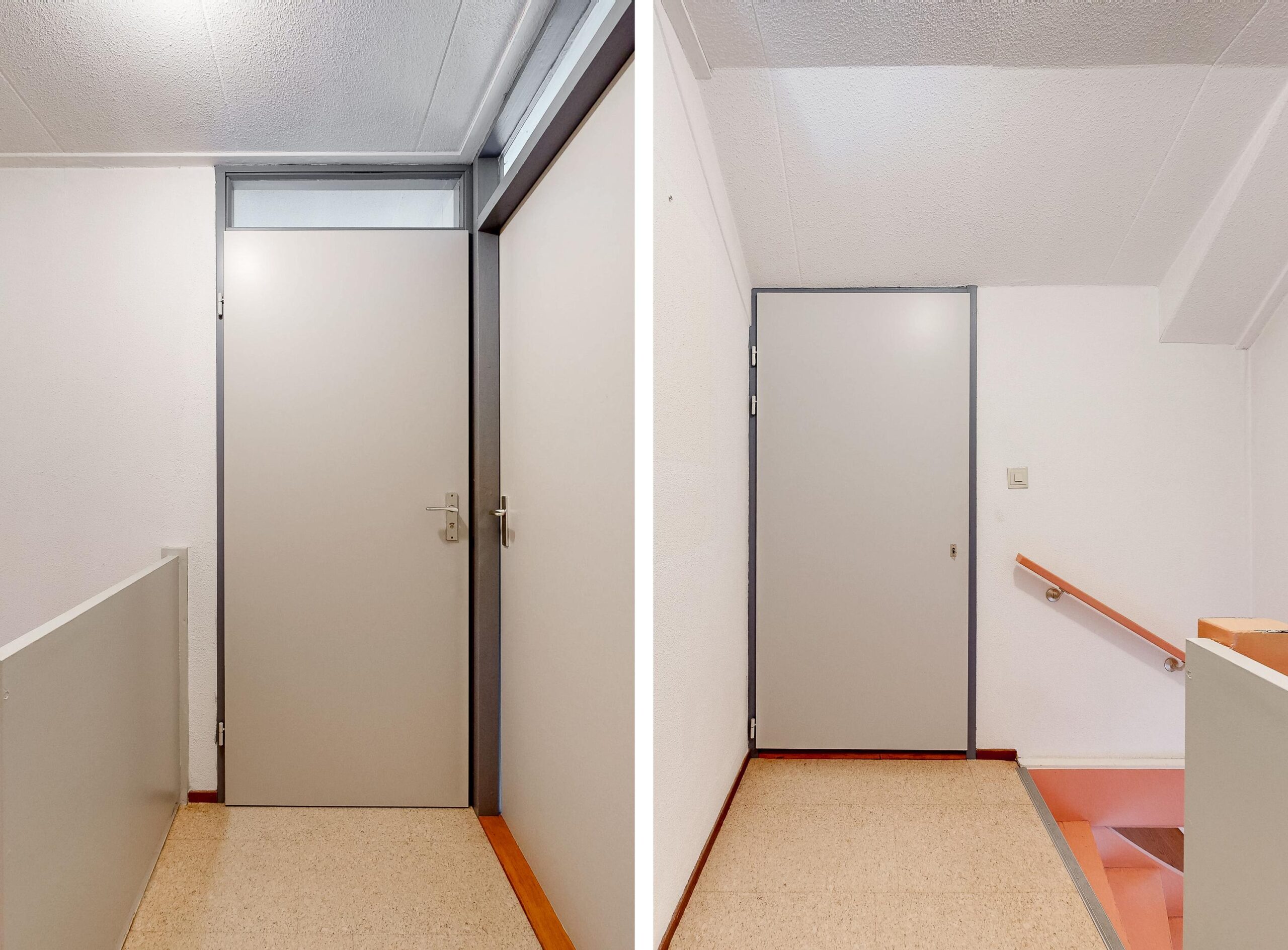 Overdekt trappenhuis, toegang op de eerste verdieping.