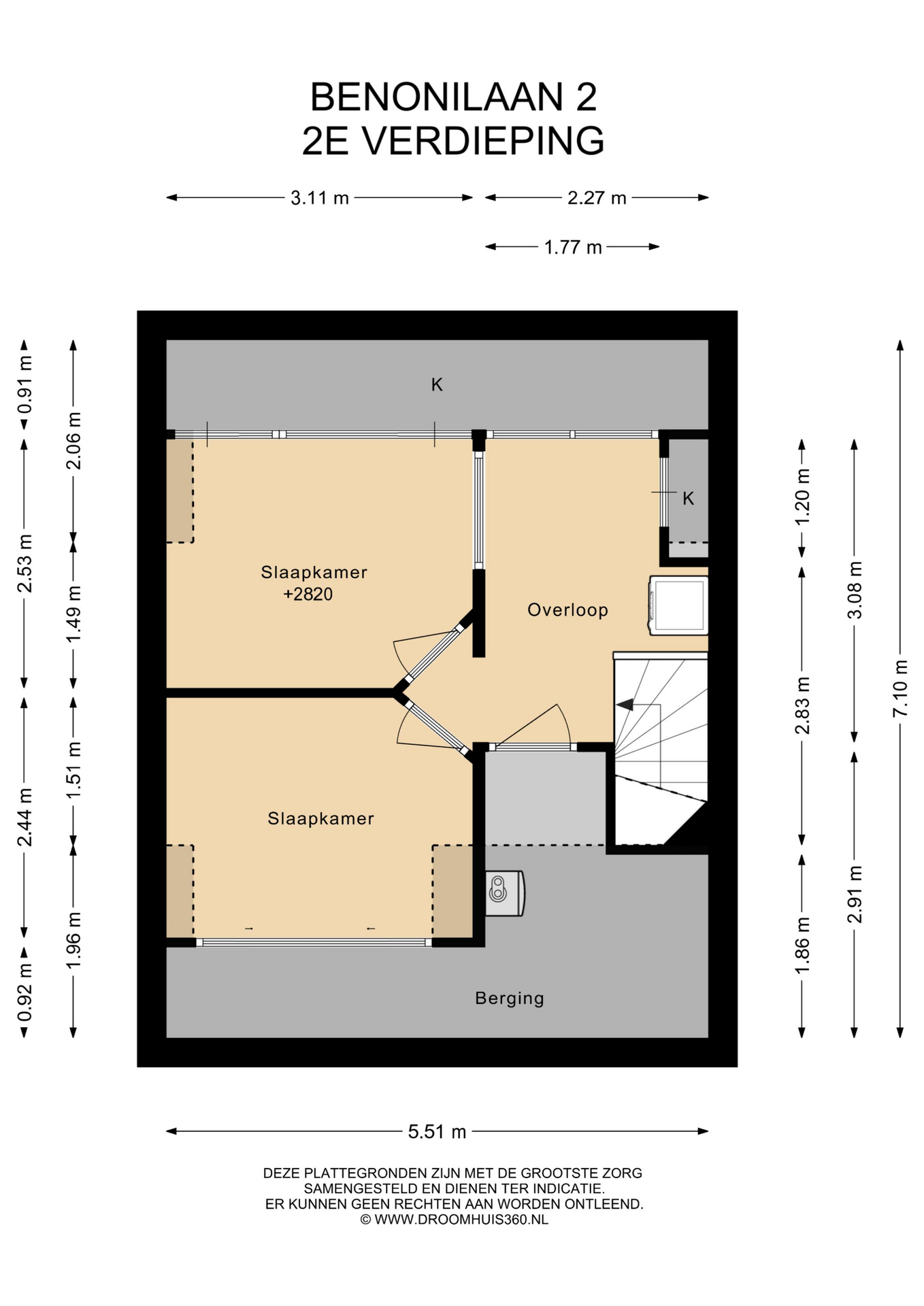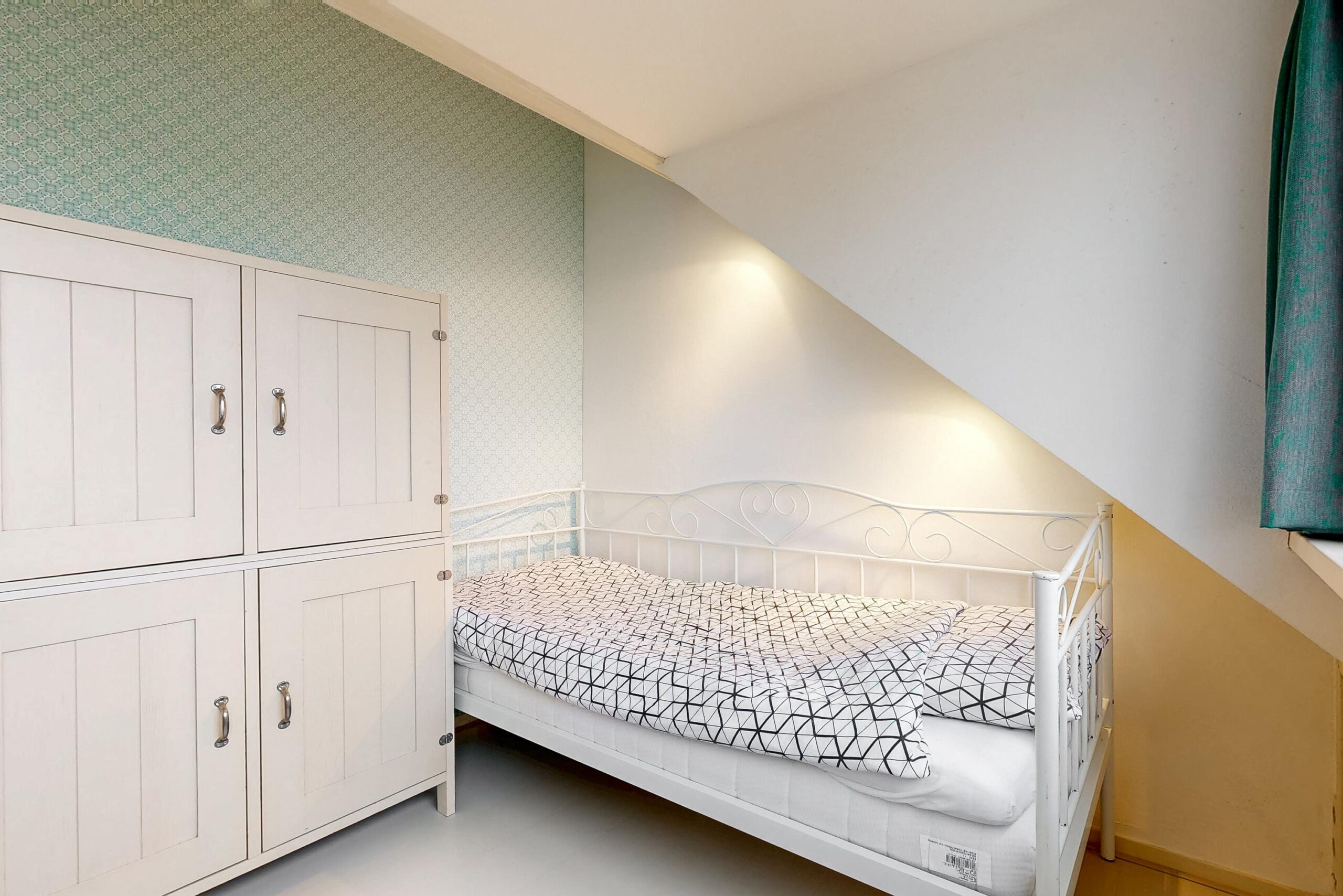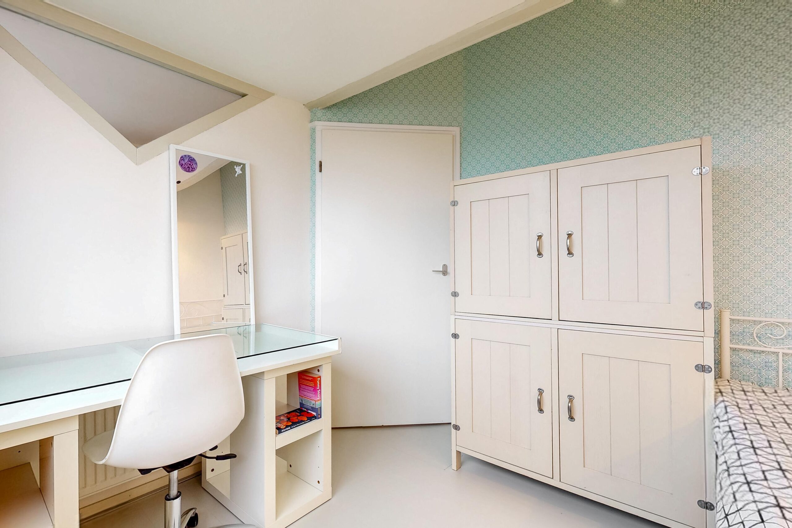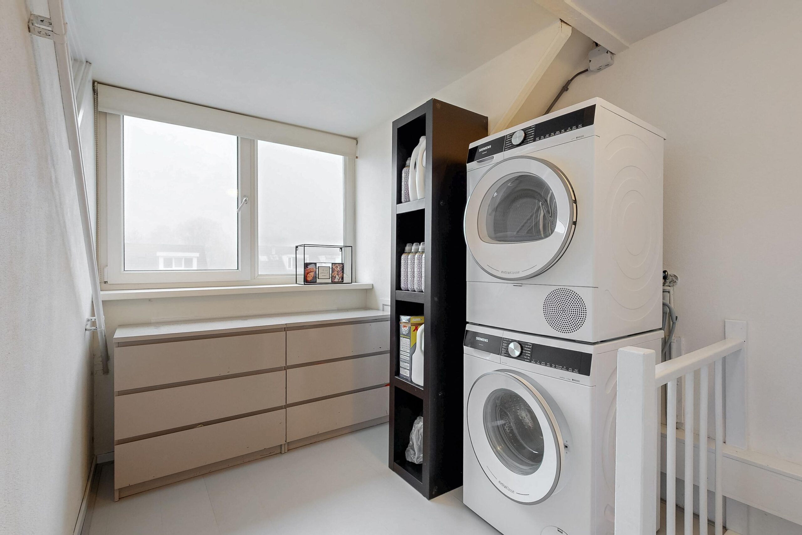 Vaste trap naar tweede verdieping met overloop voorzien van wasmachine-/drogeraansluiting, c.v.-/bergruimte en 3e en 4e slaapkamer, beide met kunststof dakkapel.