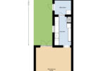 Indeling: hal met toilet en trapopgang, ruime woonkamer met hoog plafond, dubbele openslaande tuindeuren en pleisterwerk wanden en plafond, uitgebouwde keuken met dubbele rechte unit voorzien van vaatwasser, koelkast, 5-pits fornuis met elektrische oven en rvs afzuigkap, bijkeuken met wasmachineaansluiting en toegang tot de tuin.