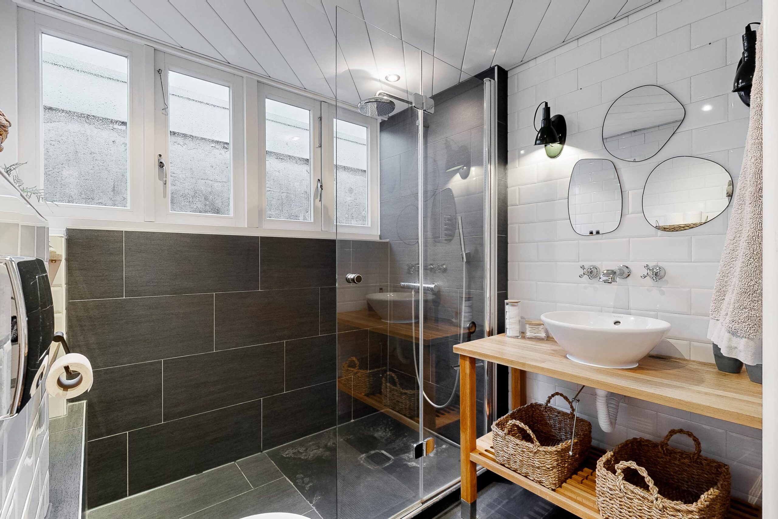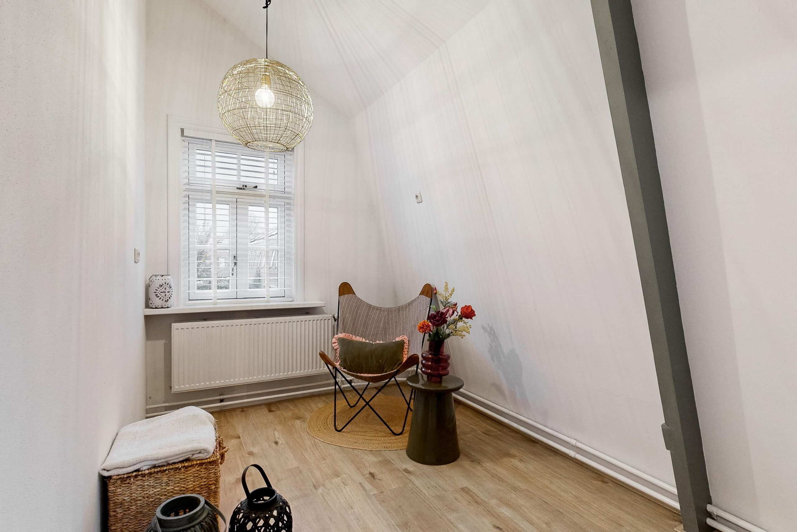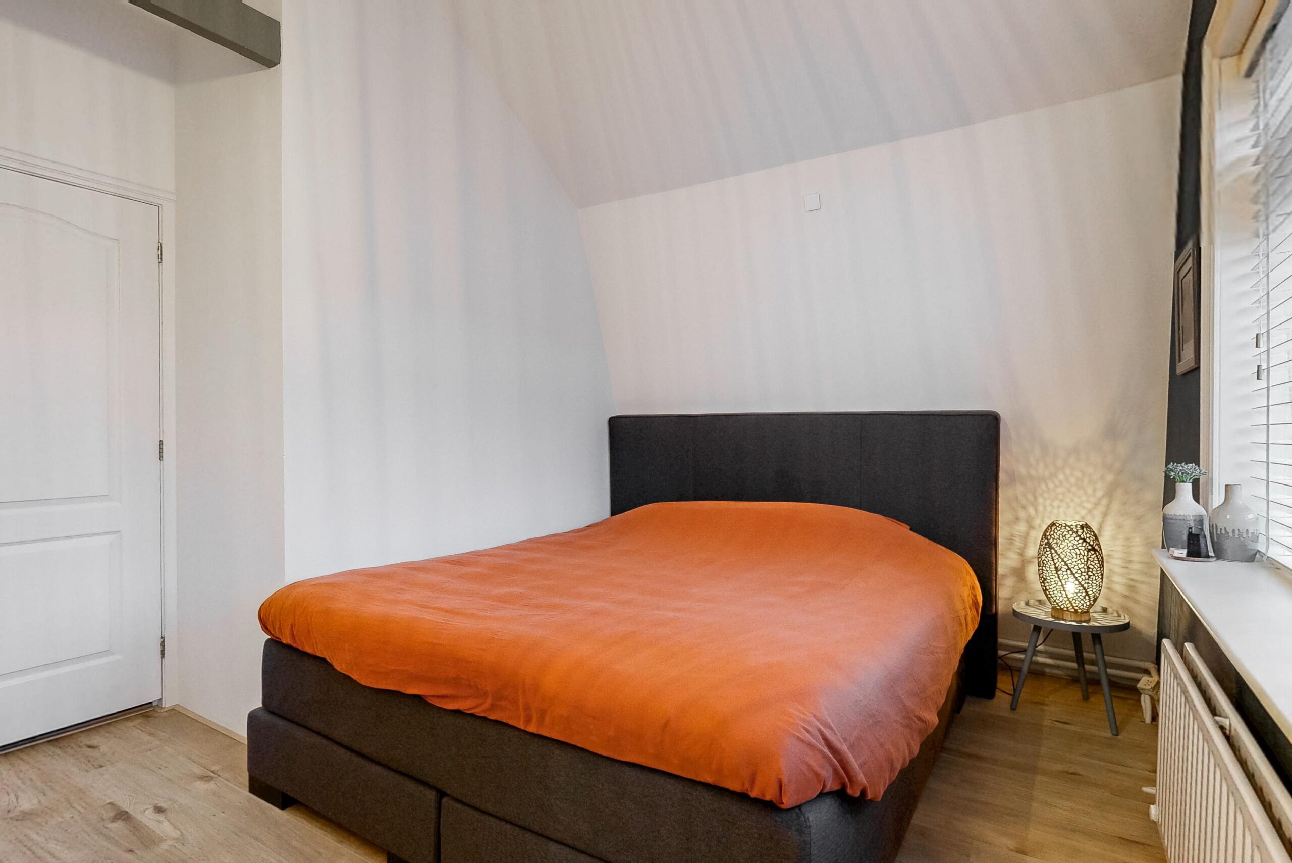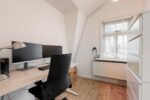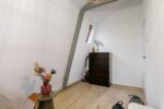 Eerste verdieping: overloop, 3 slaapkamers met hoge plafonds waarvan 2 slaapkamers aan de voorzijde en 1 ruime slaapkamer aan de achterzijde, wit/grijze badkamer met inloopdouche, 2e wandcloset, wastafel op meubel en designradiator.