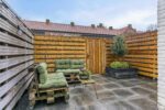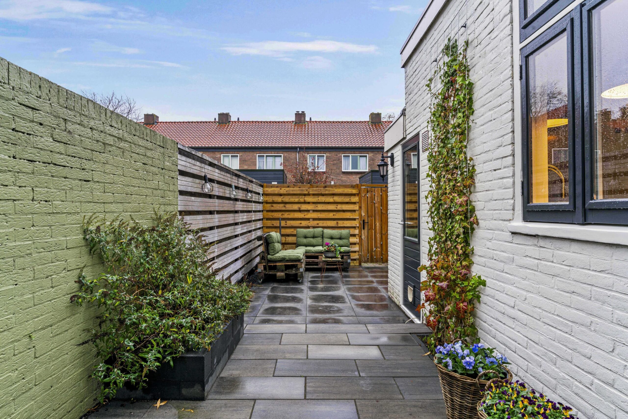 De achtertuin is verzorgd, gelegen op het zuiden en voorzien van een achterom.