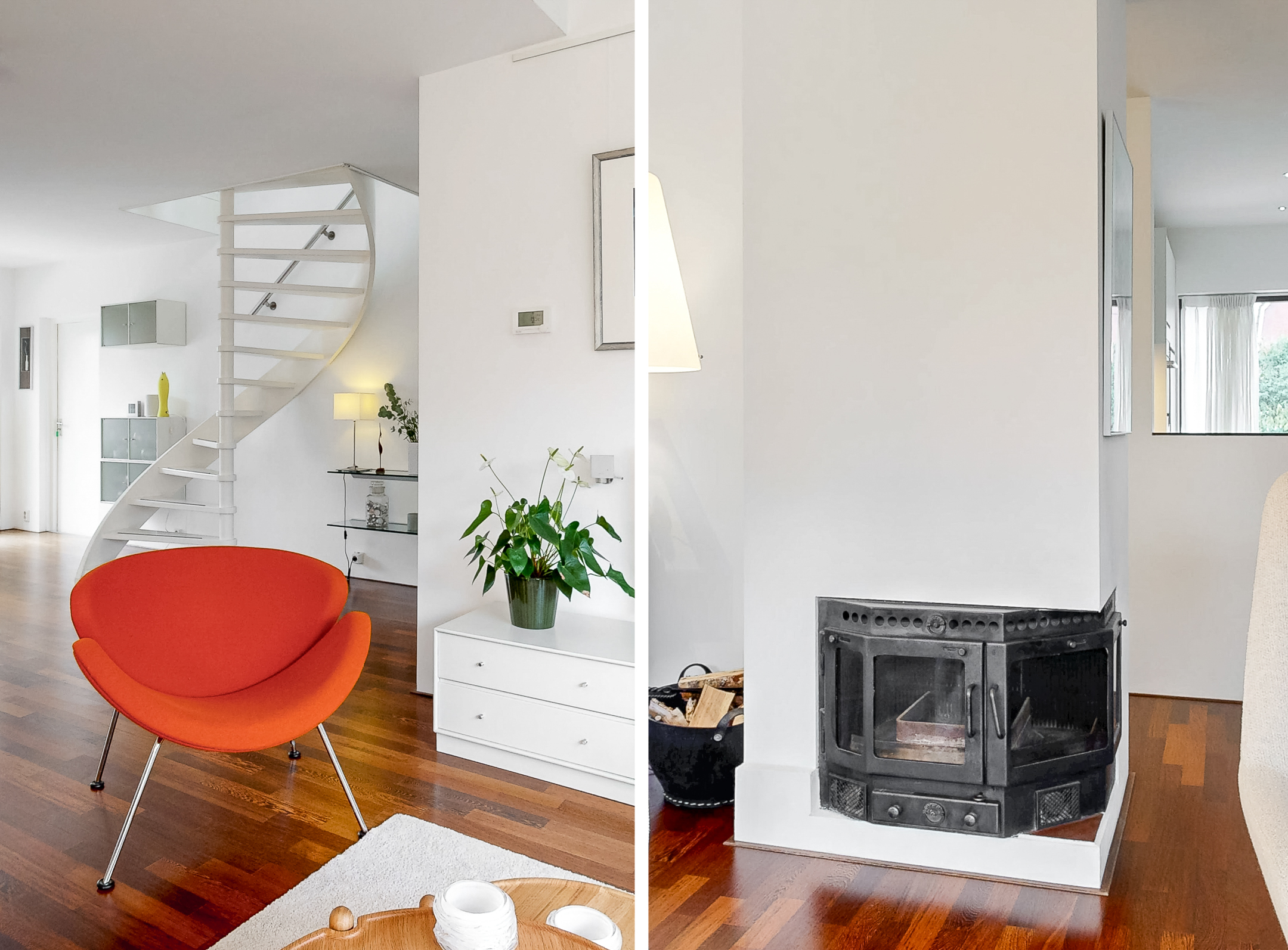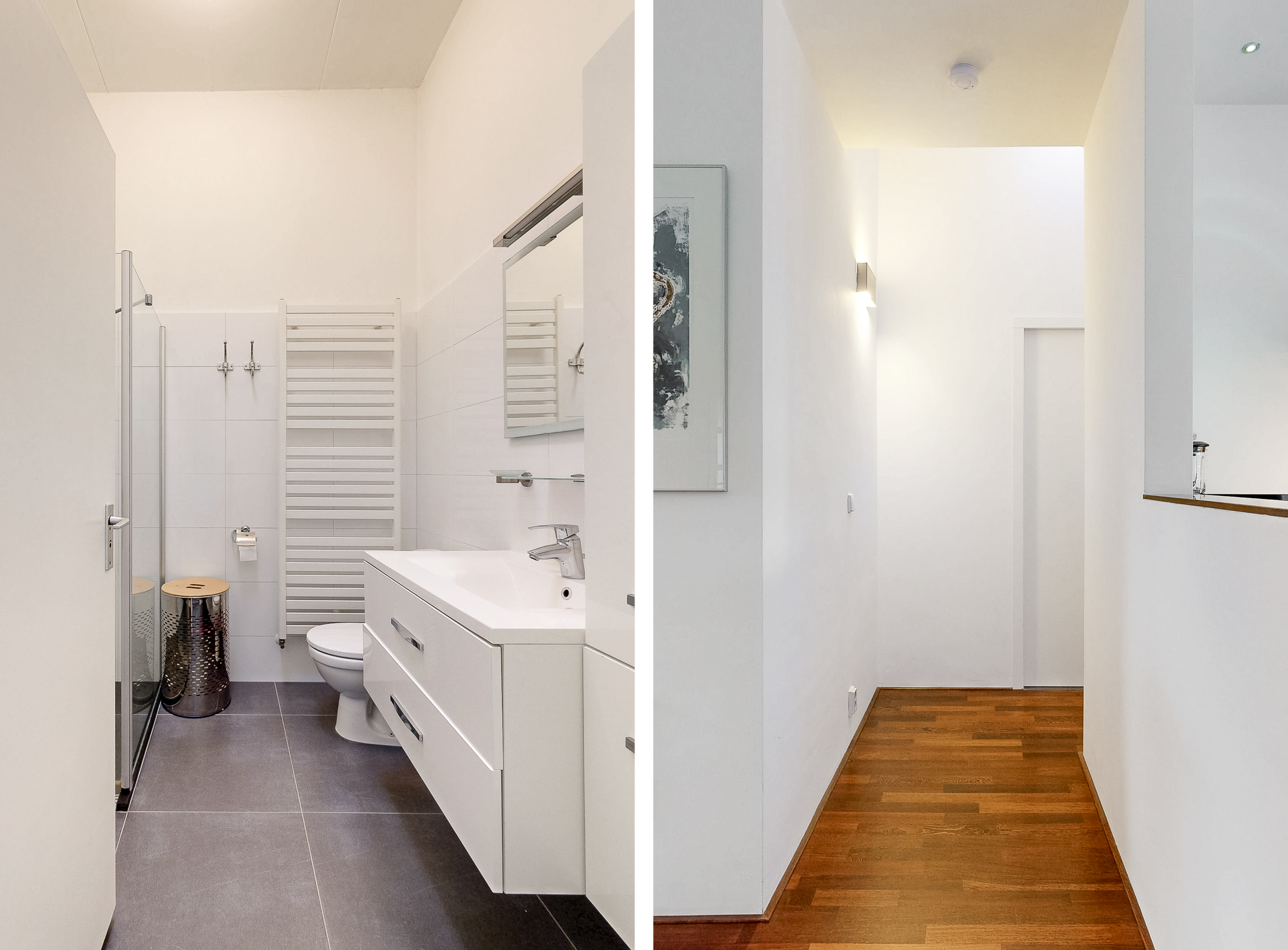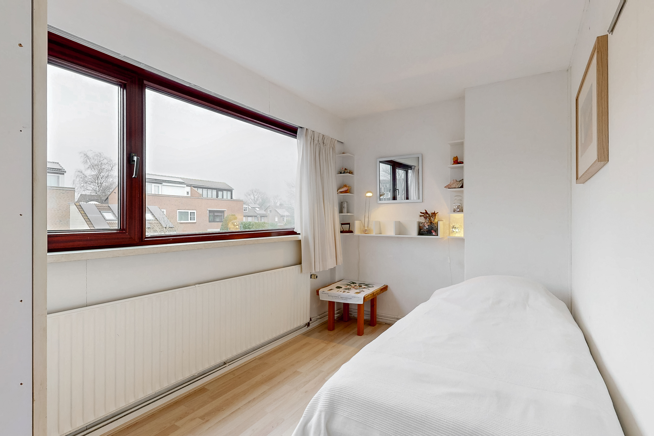 Eerste verdieping: overloop, c.v.-/bergruimte, badkamer met douche, 3e toilet en wastafel, twee slaapkamers (oorspronkelijk 3 en weer eenvoudig 3 van te maken). De speelsheid op de begane grond door de schuine daken en hoogtes willen we niet onbenoemd laten. Daarnaast vermelden we graag nog de kunststof kozijnen op de verdieping, de vloerverwarming op de begane grond, vernieuwde dakgoten en dakpannen. Kruipruimte is geïsoleerd, alsmede dak en muren en glas.