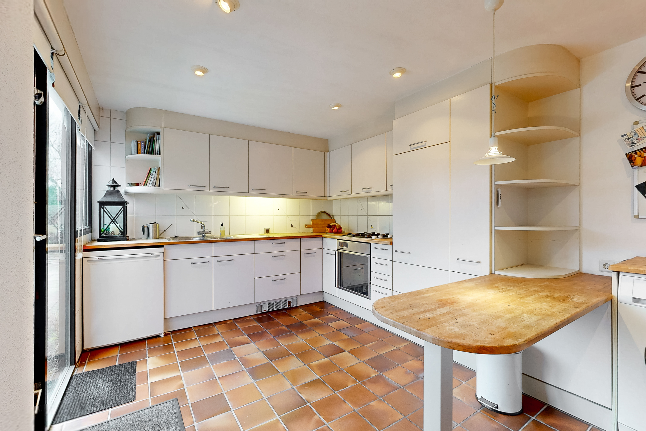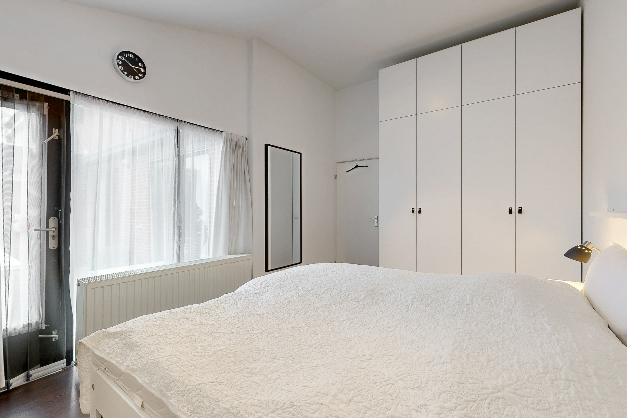 Indeling: entree met toilet, opvallend royale en lichte woonkamer met mooie parketvloer en houtkachel, badkamer met douchecabine, wastafel, 2e toilet en designradiator, fijne slaapkamer met toegang tot achtertuin, keuken met U-vormige keukenunit voorzien van vaatwasser, inductie kookplaat, RVS schouw, oven, magnetron, koelkast/vriezer en composiet blad, de voormalige garage is binnendoor bereikbaar en opgedeeld in bijkeuken en berging.