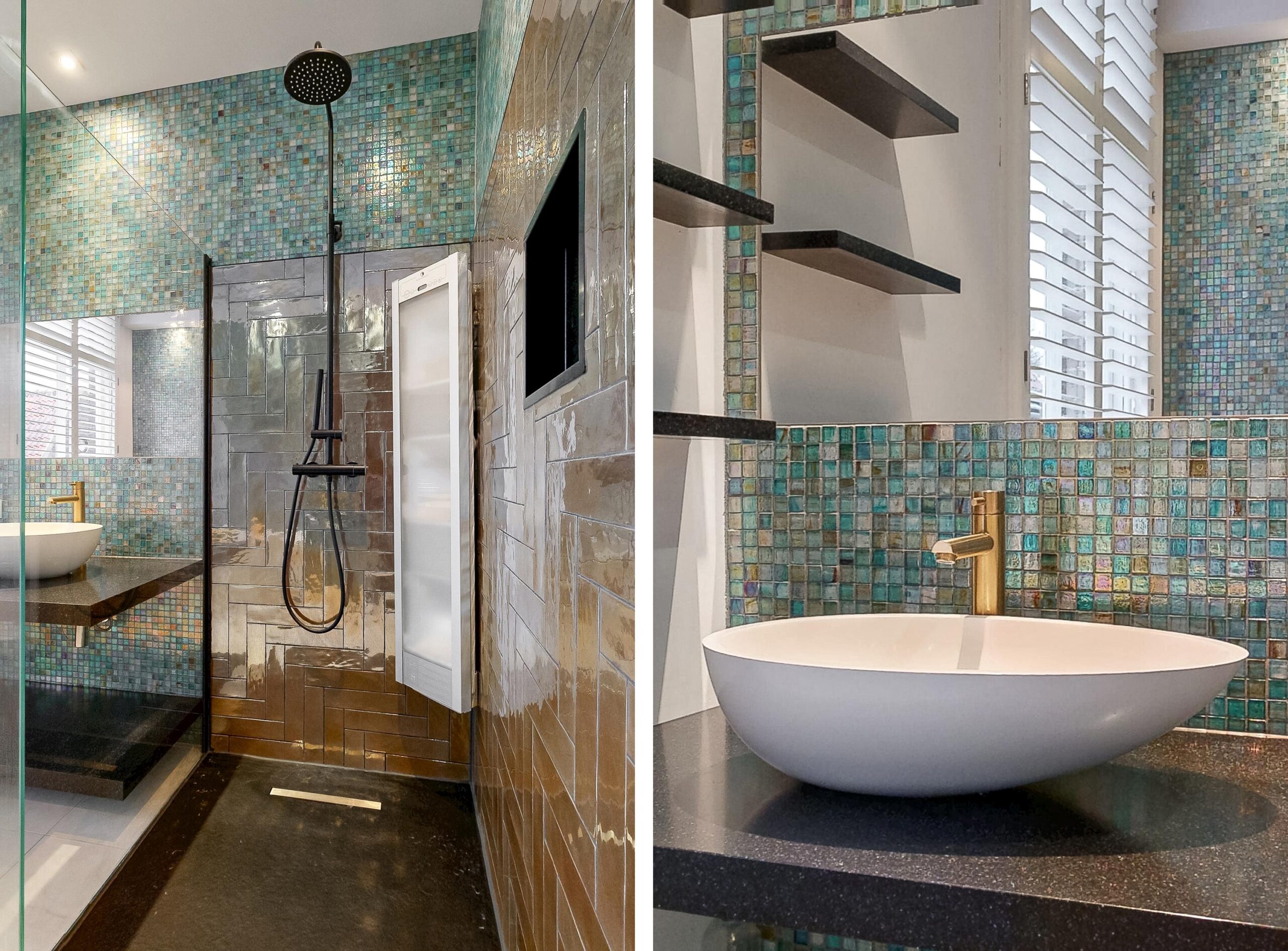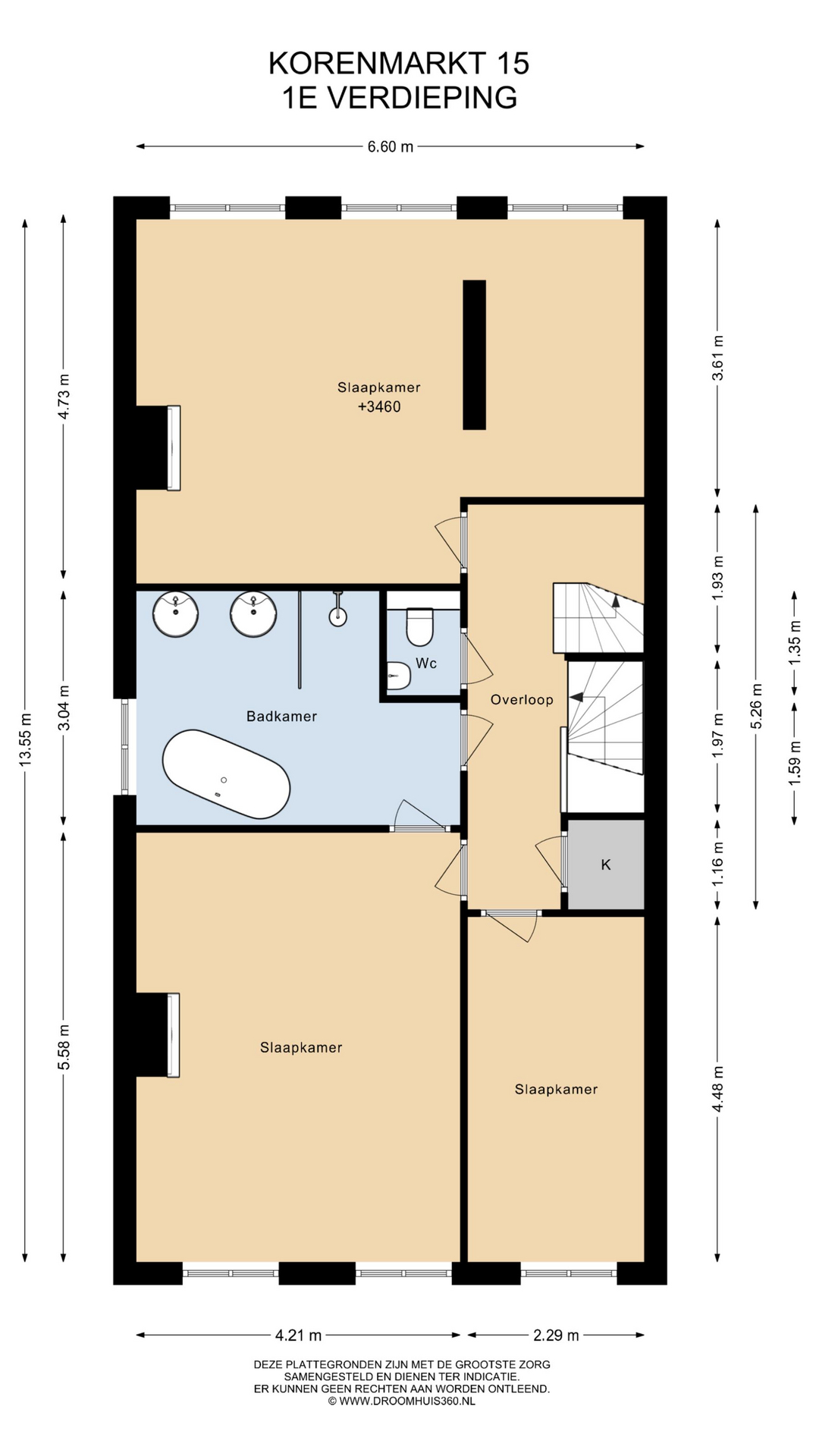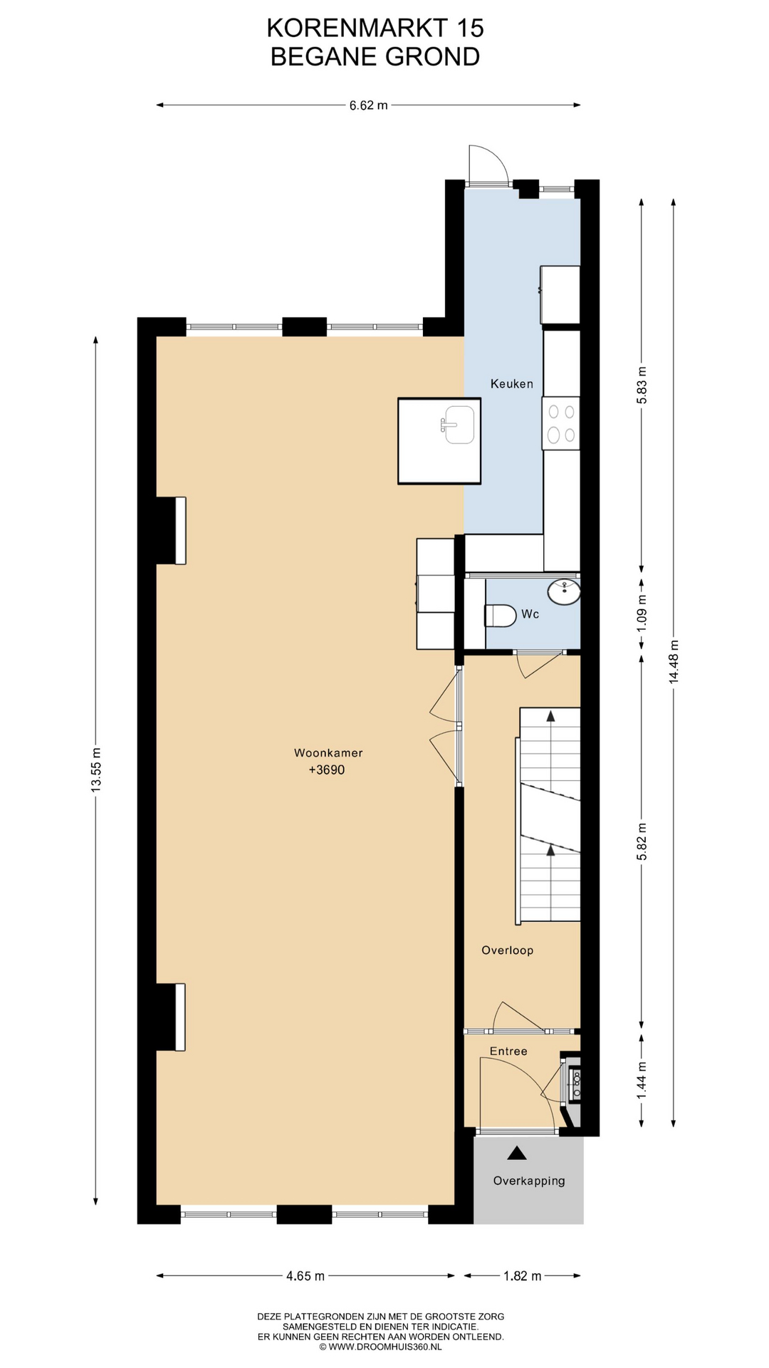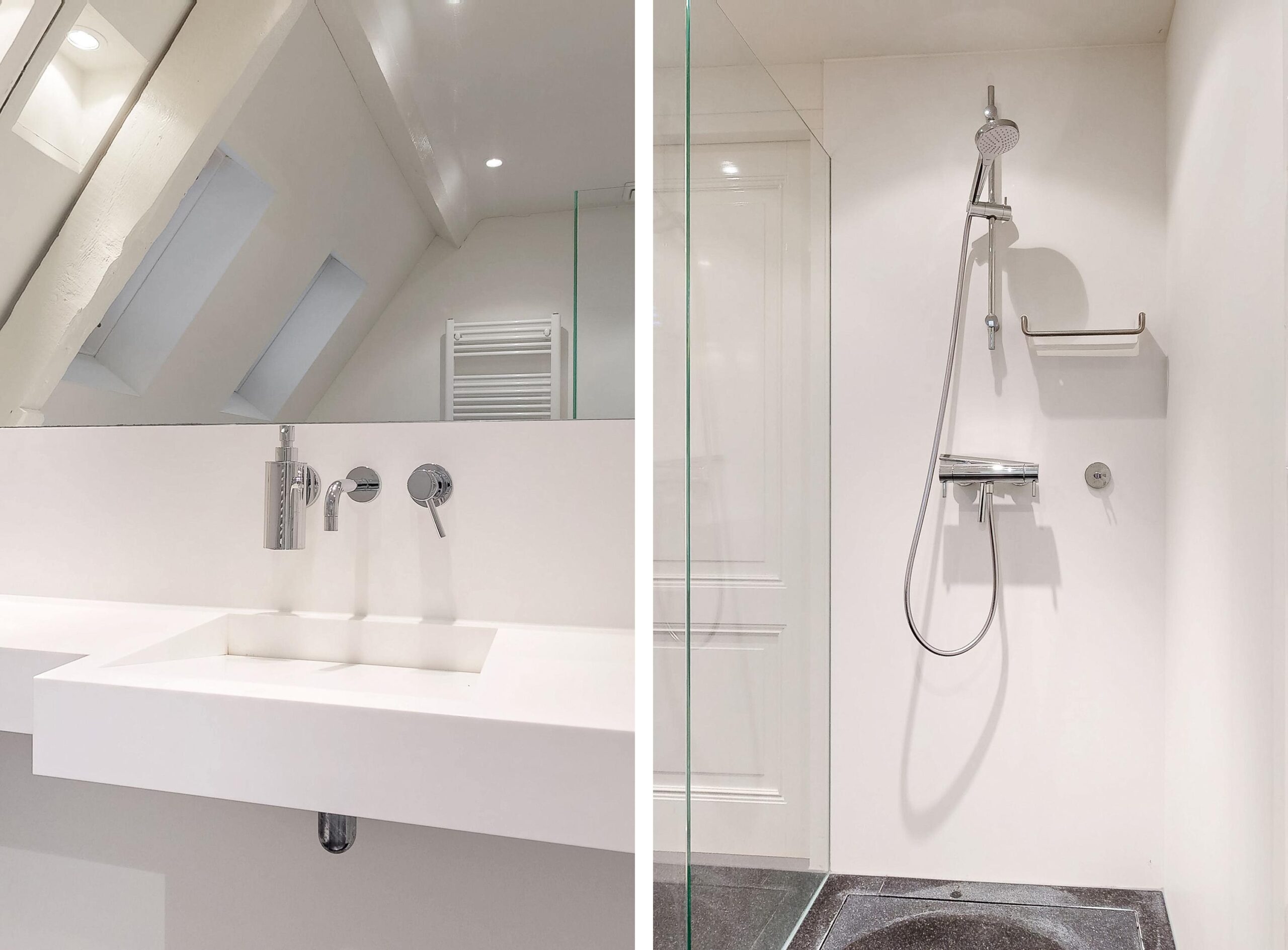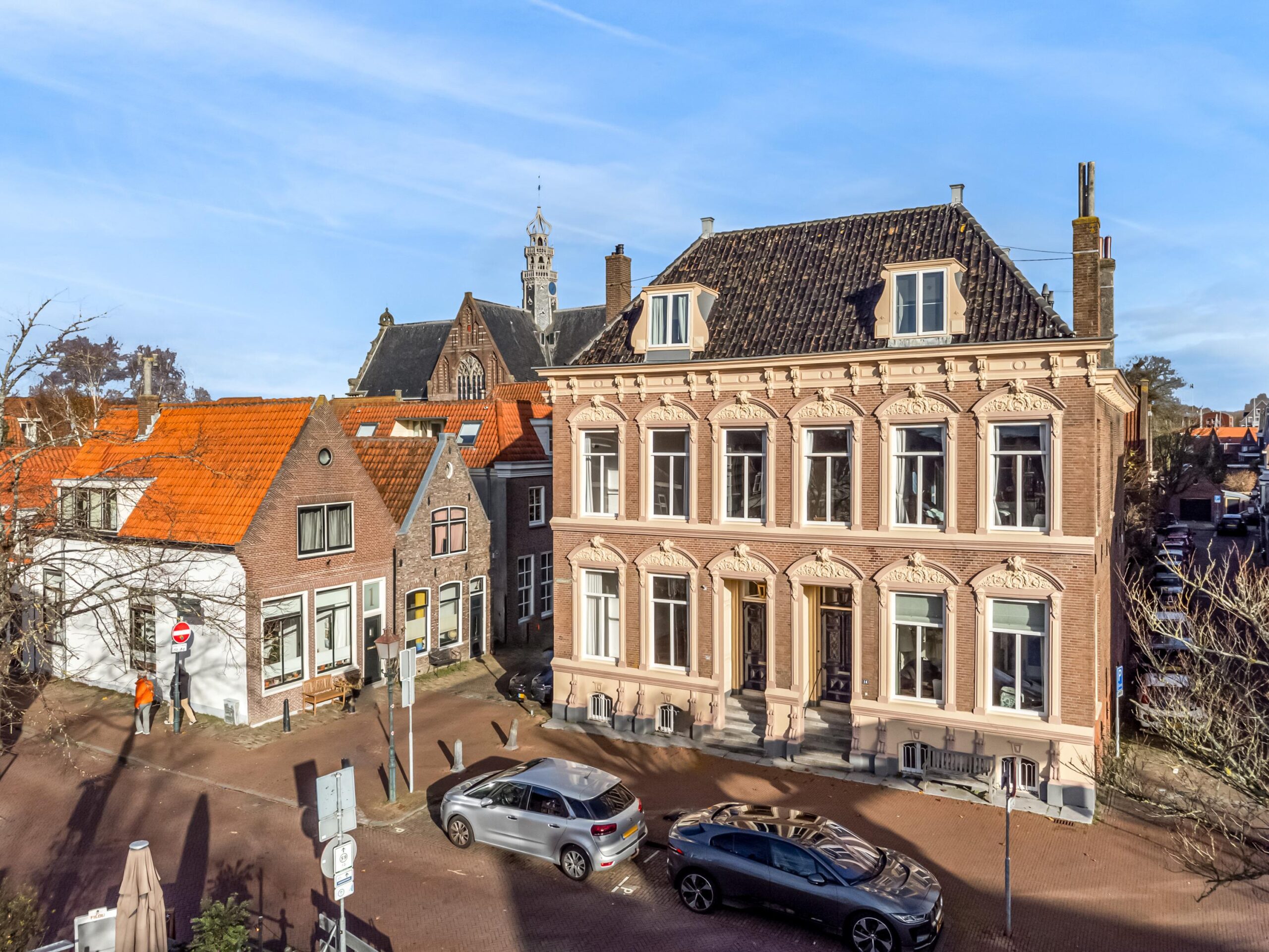 Indeling: beletage met circa 3,70 meter hoge plafonds met ornamenten. Ruime hal met trapopgang, fraai toilet met wandcloset, woonkamer met veel daglichttoetreding en tweemaal gashaard. Pleisterwerkwanden, open keuken met luxe witte hoogglans L-vormige unit en spoeleiland met inbouw wijnklimaatkast, elektrische oven, stoomoven, vaatwasser, 5 pits inductie Boretti fornuis, 90cm brede oven en Boretti koelkast/vriezer.