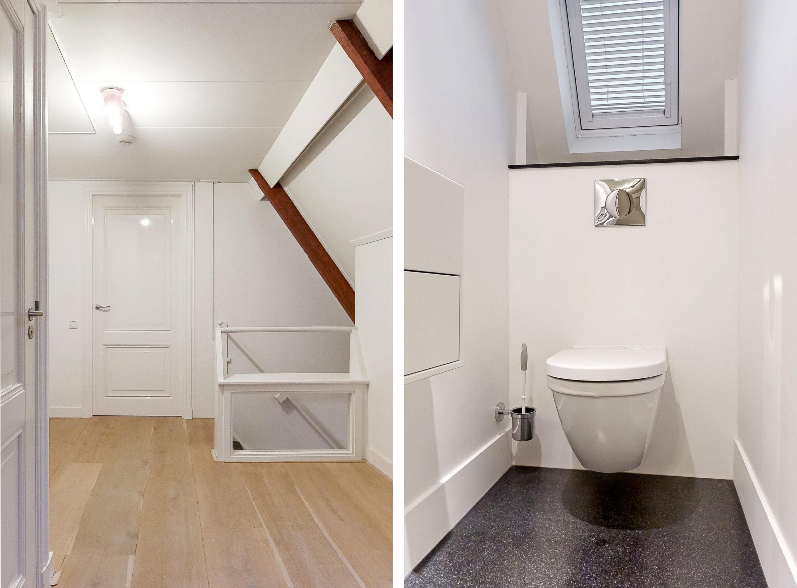 Begane grond, eerste en tweede verdieping eiken topplaag plankenvloer.