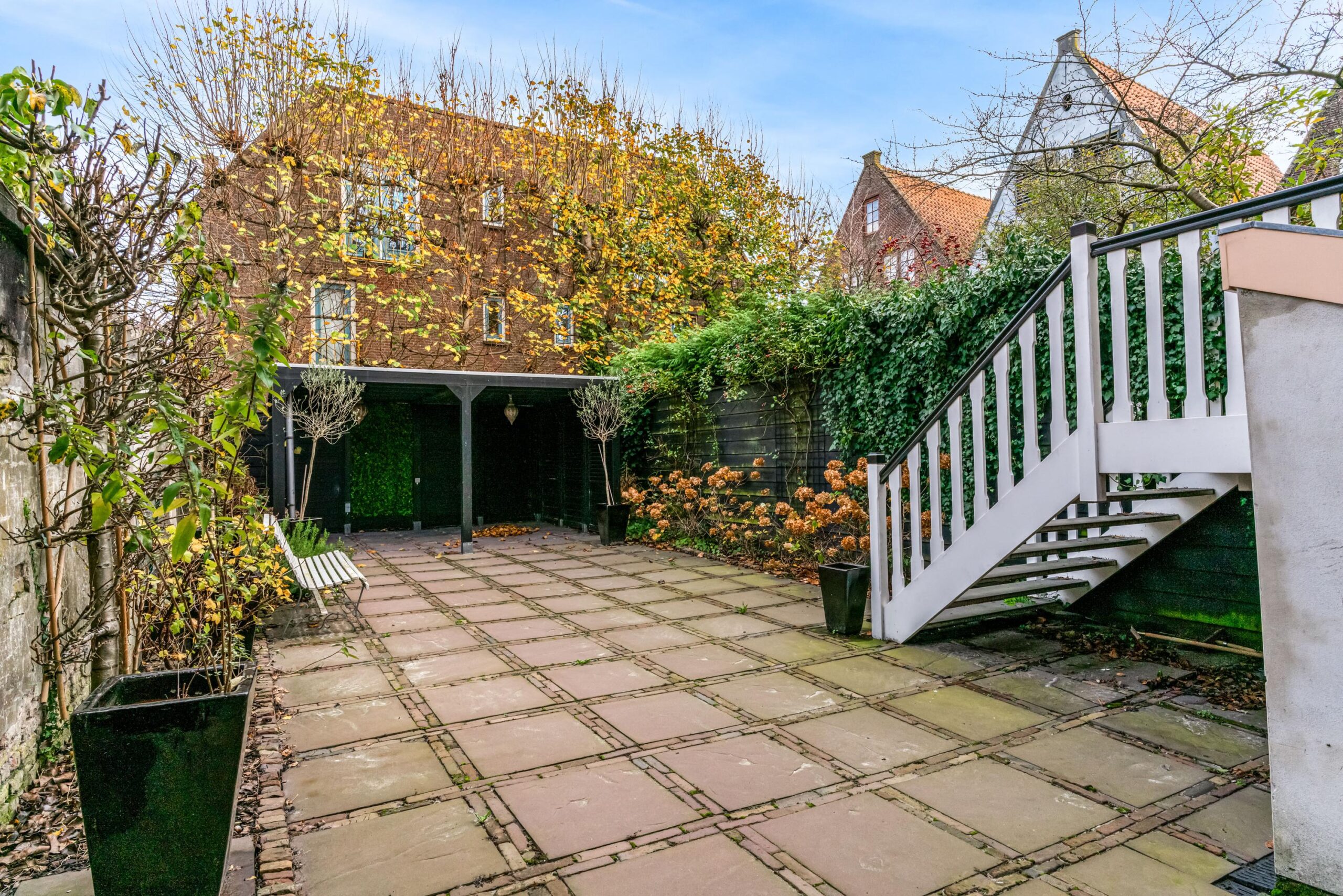 Circa 15 meter diepe achtertuin met achterom, fabelachtig uitzicht over de stadsgracht, dicht bij alle geneugten van de binnenstad.