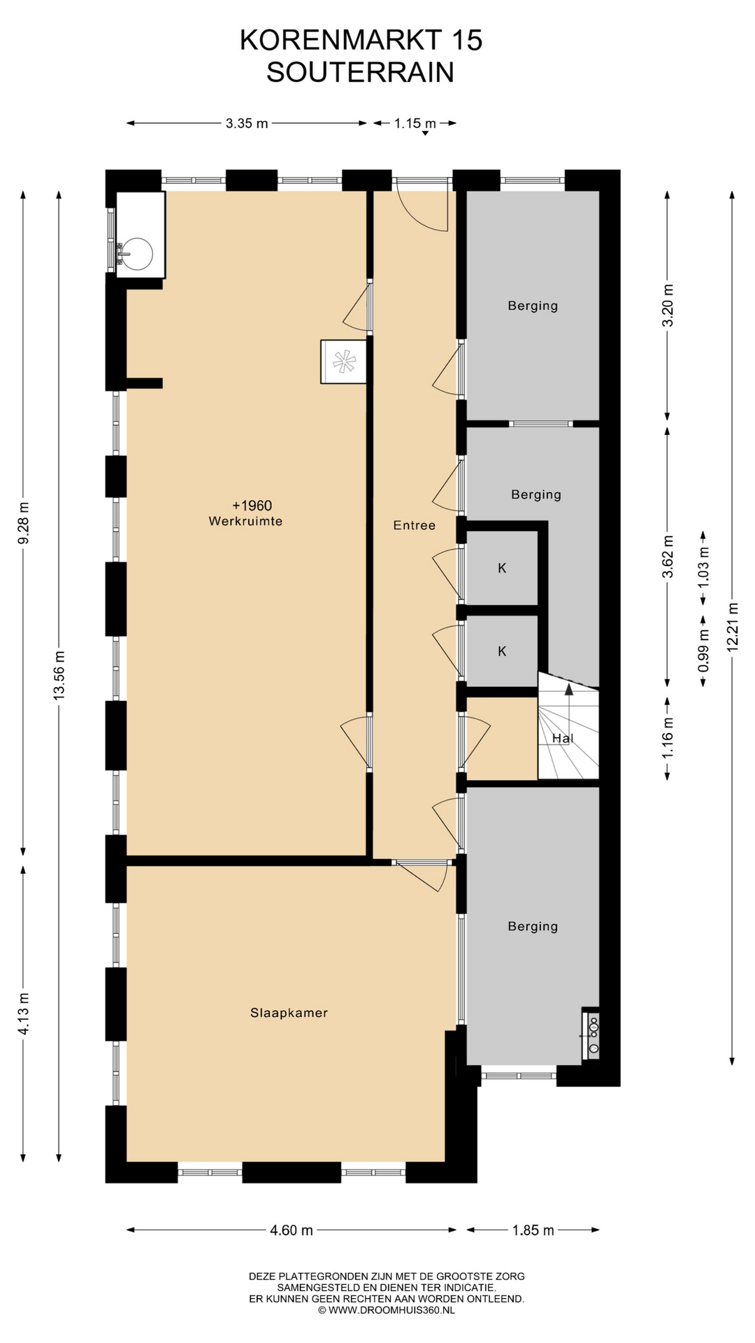 Souterrain: royale werkruimtes, 1 slaapkamer, volop bergruimte en entree naar de tuin.