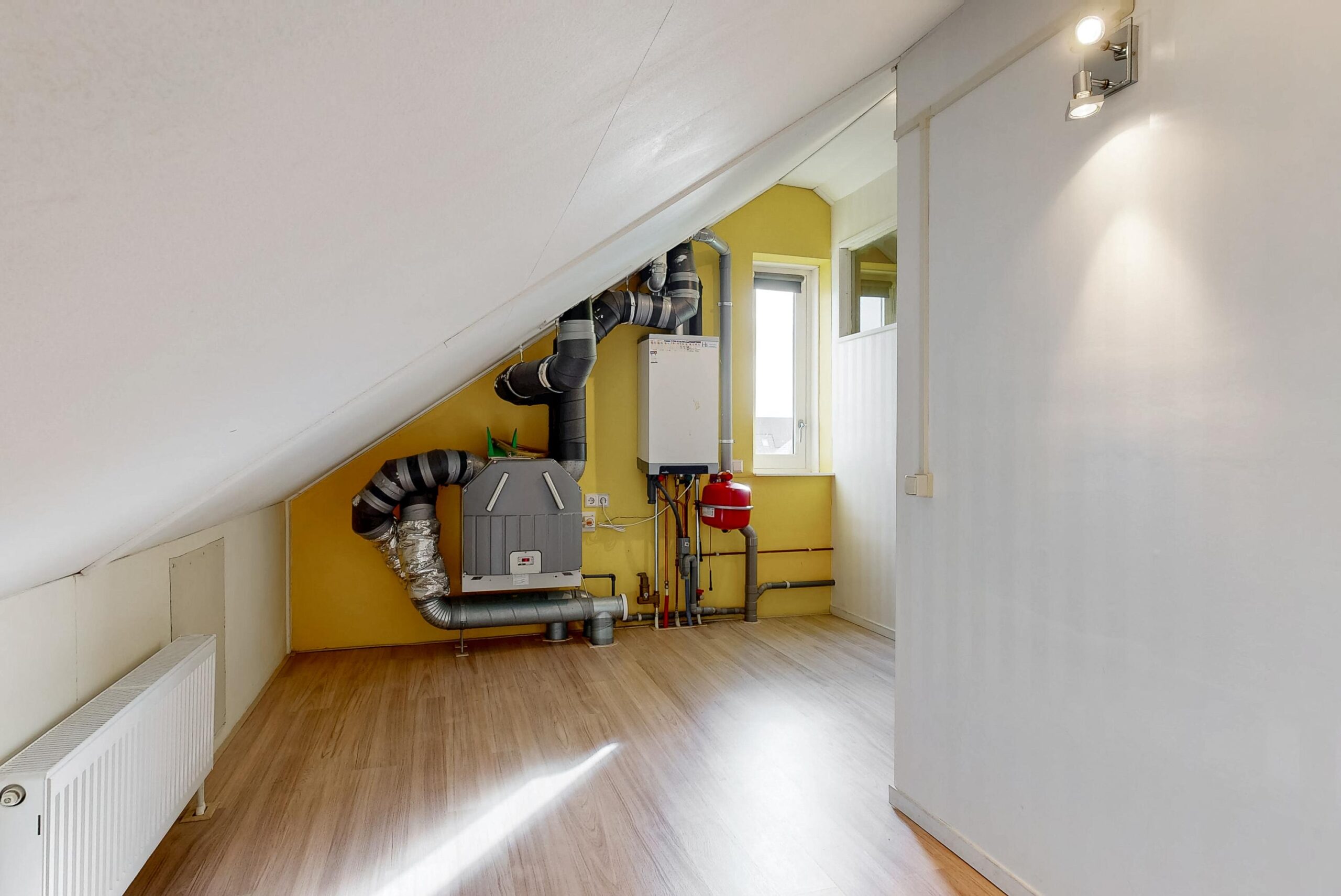 Tweede verdieping: zolderruimte met cv-opstelling en wasmachine/drogeraansluiting en eenvoudige mogelijkheid voor derde slaapkamer. Op loopafstand van scholen, winkelcentrum, sportvoorzieningen en nabij uitvalswegen.