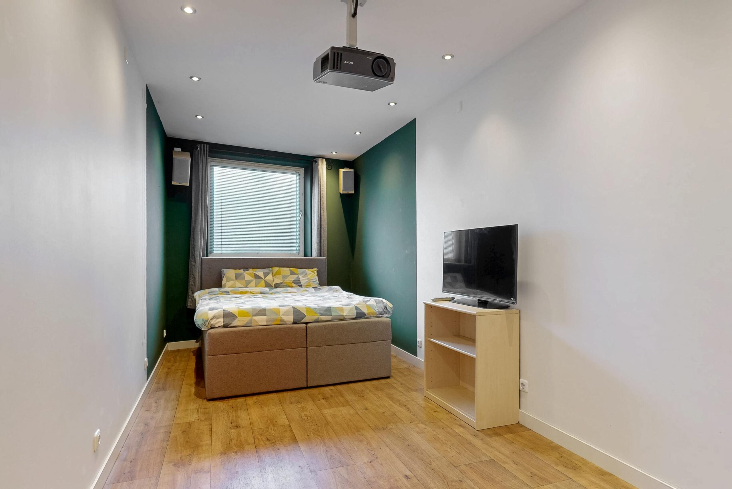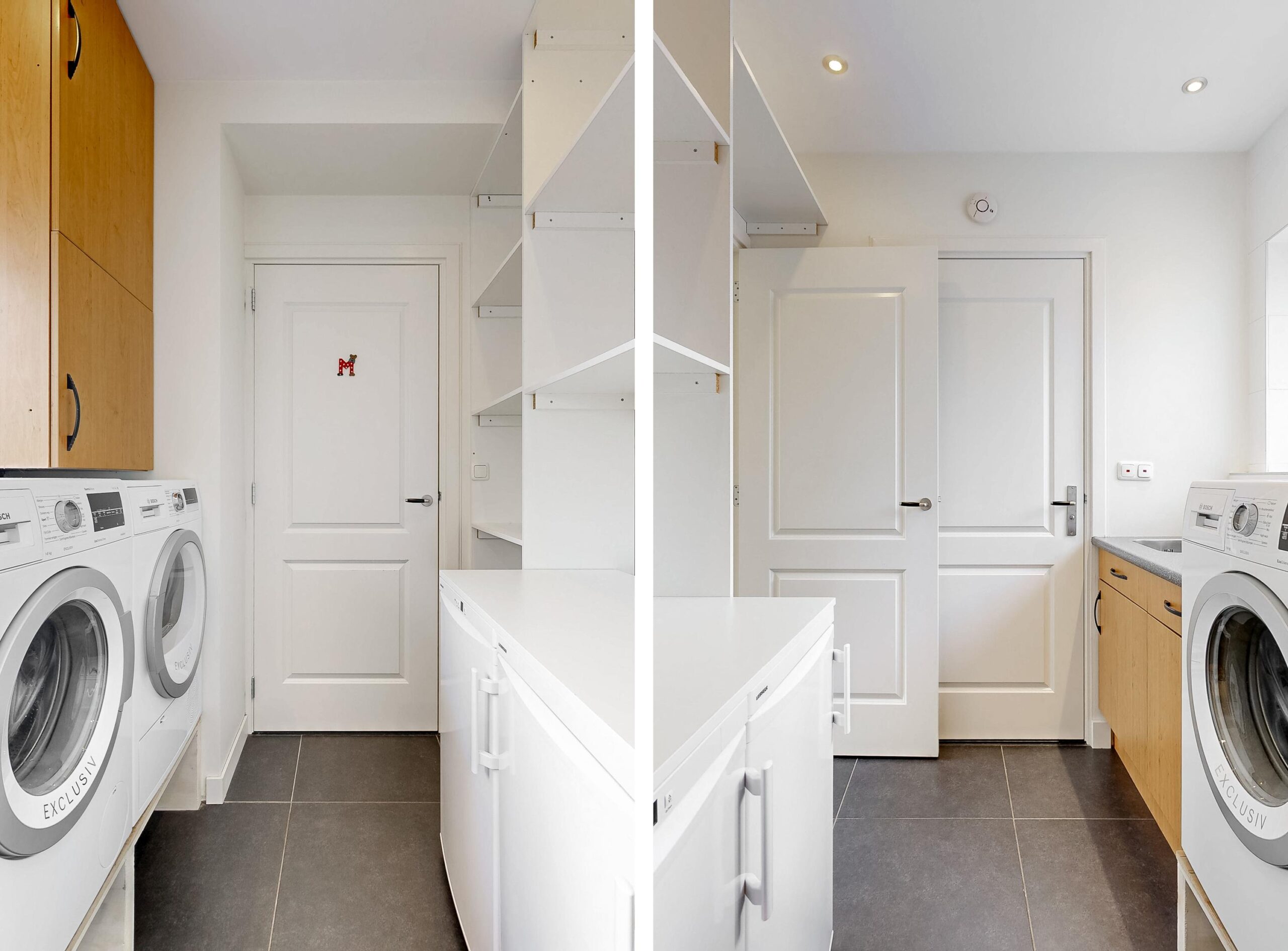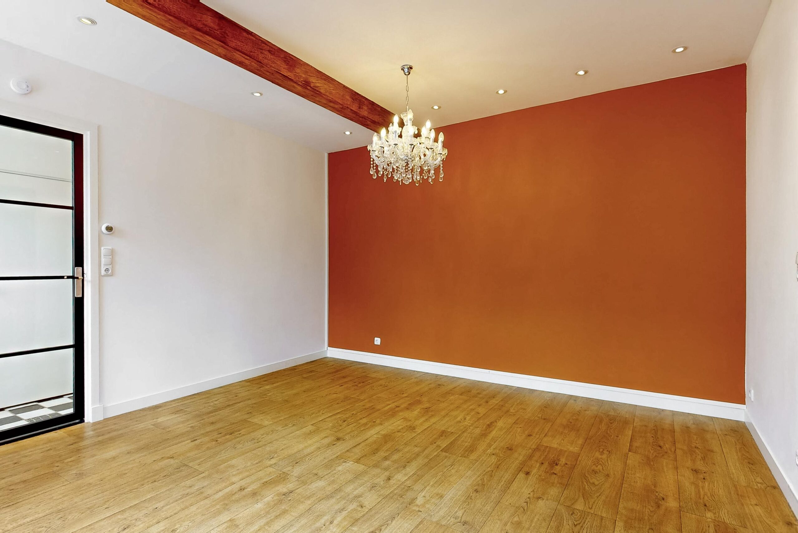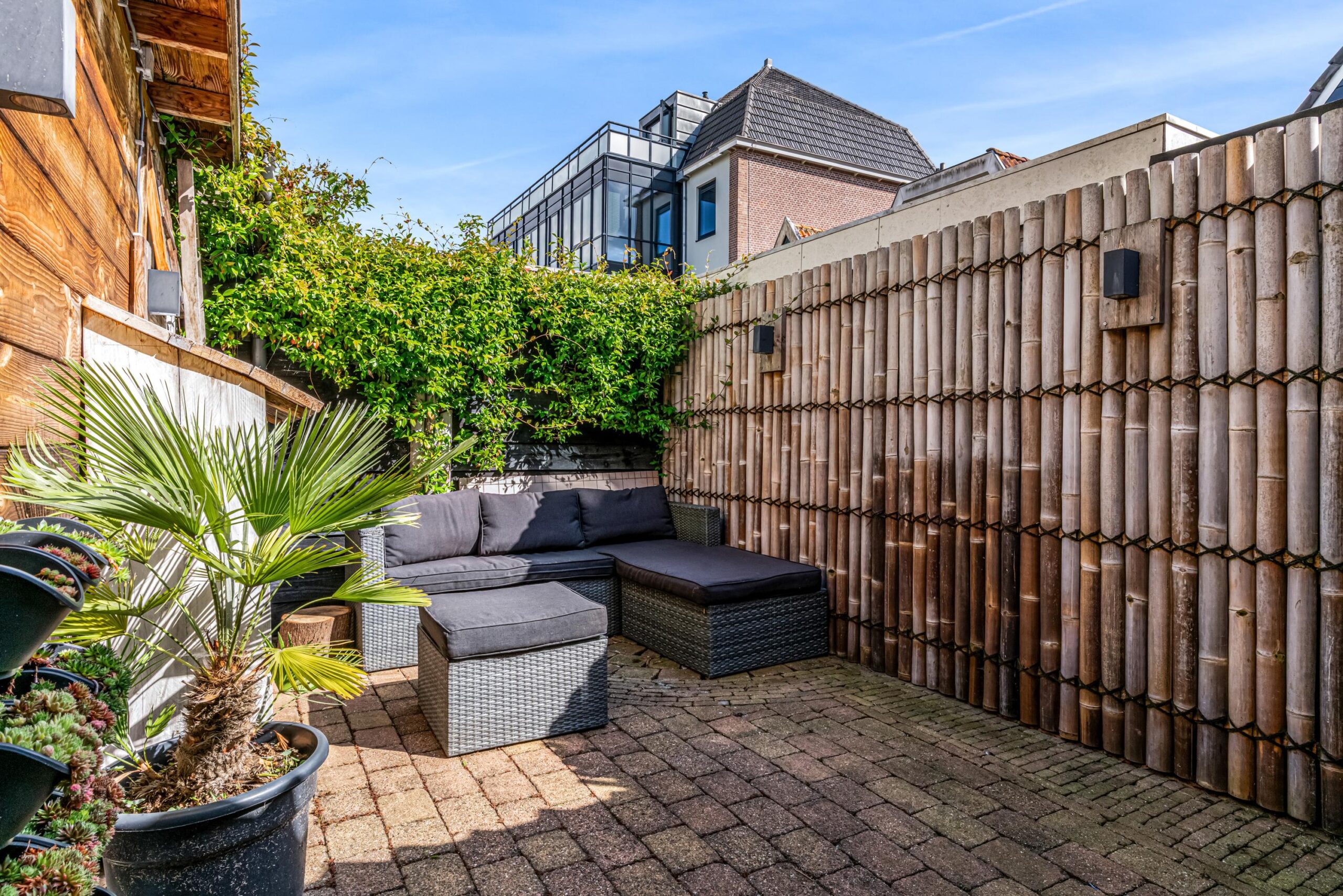 Eerste verdieping: overloop met 2e toilet (2022), open keuken met uitgebreide keukenunit voorzien van een verhoogd granieten aanrechtblad, 5-zones inductiekookplaat, afzuigkap, oven met magnetronfunctie, vaatwasser op hoogte en losse koelkast en vriezer, ruime 2e woonkamer met veel lichtinval, sfeervolle houtkachel, elektrische zonwering aan beide zijden van het pand, gestuukte wanden, airco (2025) en via schuifpui toegang tot fijn dakterras.