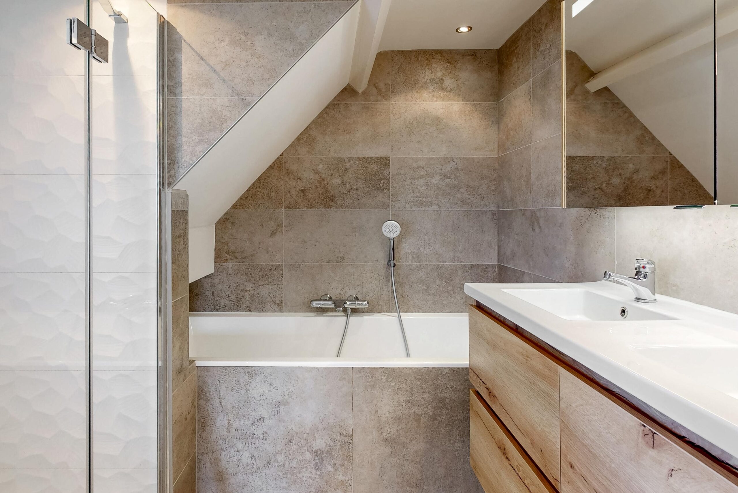 Tweede verdieping: ruime overloop met vaste kast en prettig lichtinval door dakkapel, 3 slaapkamers, eenvoudig 4 slaapkamers te realiseren, moderne badkamer (2021) met 3e toilet, douchecabine, ligbad en dubbele wastafel in meubel. Er zijn op de tweede verdieping 2 dakkappelen en 4 rolluiken geplaatst. Daarnaast is een aircosysteem aangelegd welke u in de hoofslaapkamer kunt bedienen. De tweede verdieping is met uitzondering van één slaapkamer voorzien van een houten grenen vloer. Via de vlizotrap bereikt u de bergvliering.