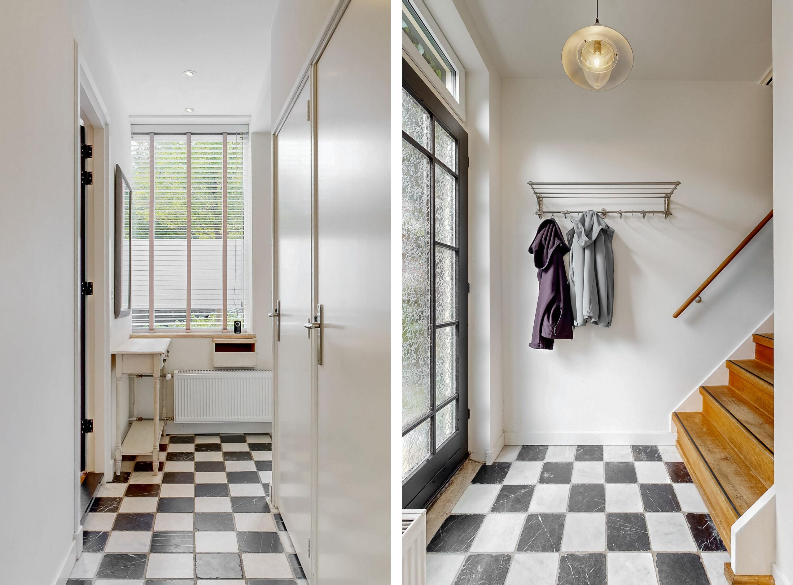 Indeling: ruime hal met vaste kasten, hoog plafond en trapopgang, 1e woonkamer met grote raampartijen en toegang tot de sfeervolle stadstuin, bijkeuken met pantry, cv-opstelling en aansluiting voor de wasmachine en droger. Via de bijkeuken heeft u toegang tot de 1e badkamer met toilet, douchecabine en wastafel in meubel en ruime slaapkamer. De begane grond is met uitzondering van de hal voorzien van vloerverwarming. De 1e woonkamer is voorzien van een eigen entree en mede hierdoor erg geschikt als werk-/winkelruimte aan huis.