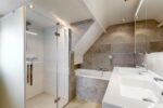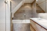 Tweede verdieping: ruime overloop met vaste kast en prettig lichtinval door dakkapel, 3 slaapkamers, eenvoudig 4 slaapkamers te realiseren, moderne badkamer (2021) met 3e toilet, douchecabine, ligbad en dubbele wastafel in meubel. Er zijn op de tweede verdieping 2 dakkappelen en 4 rolluiken geplaatst. Daarnaast is een aircosysteem aangelegd welke u in de hoofslaapkamer kunt bedienen. De tweede verdieping is met uitzondering van één slaapkamer voorzien van een houten grenen vloer. Via de vlizotrap bereikt u de bergvliering.