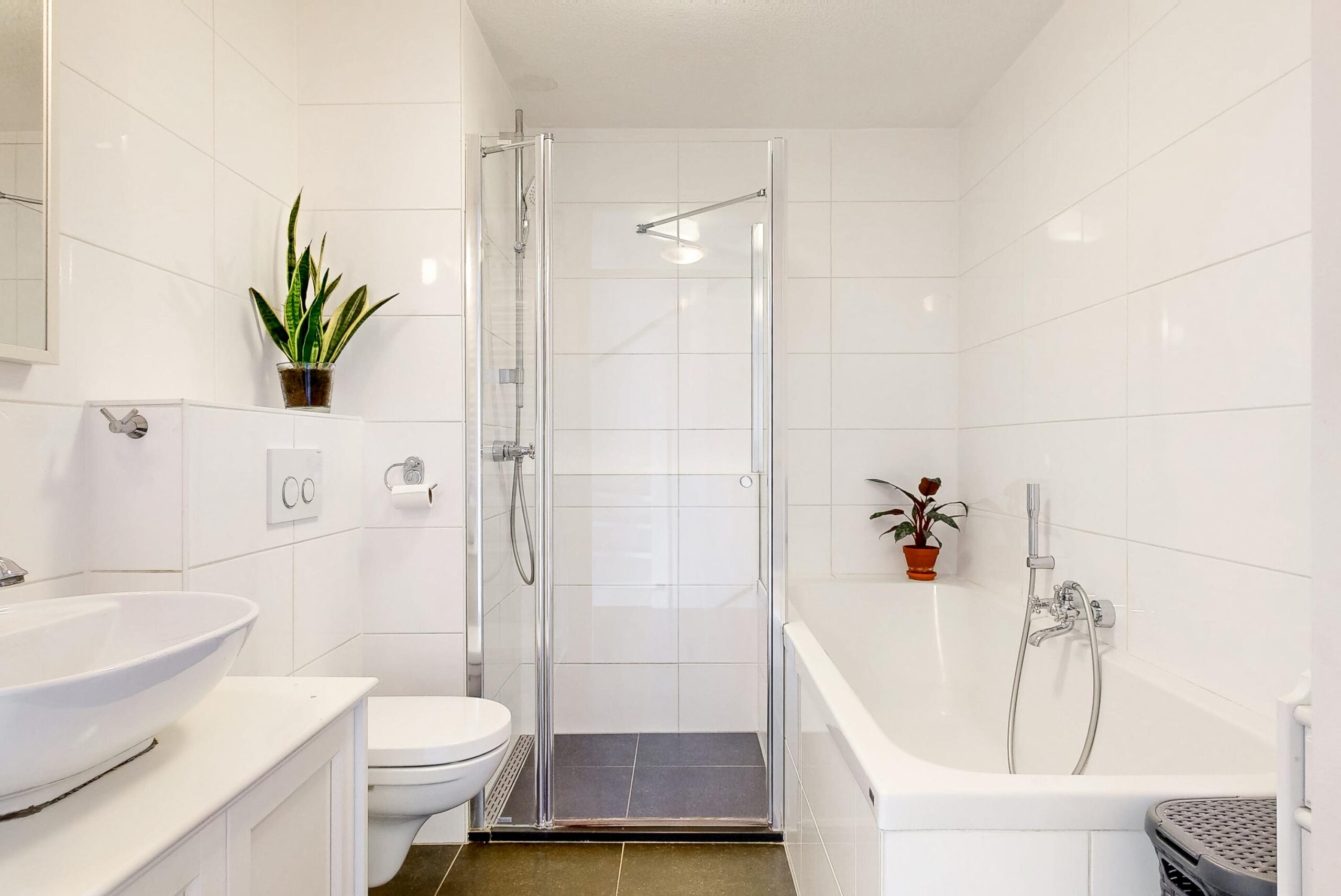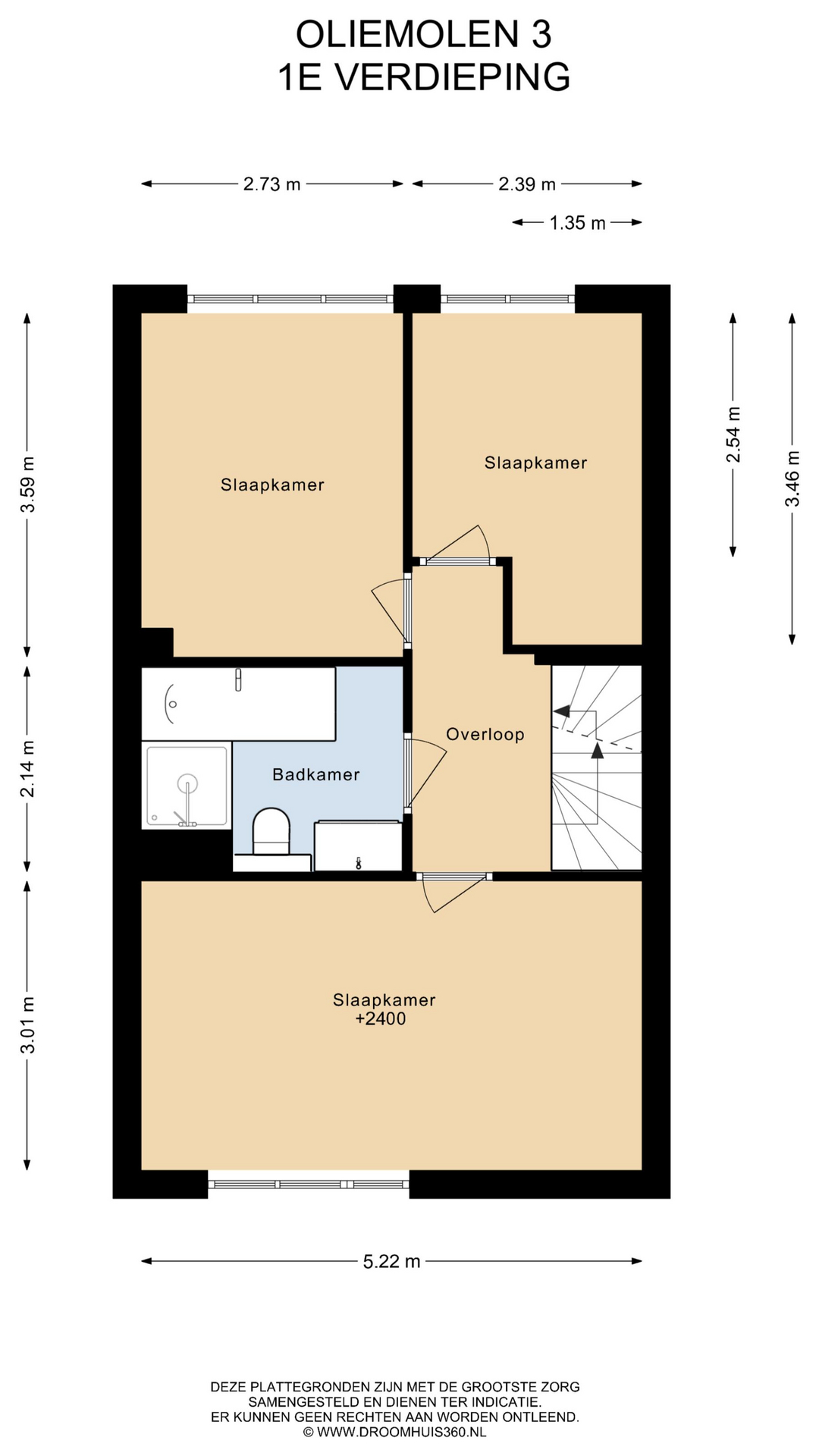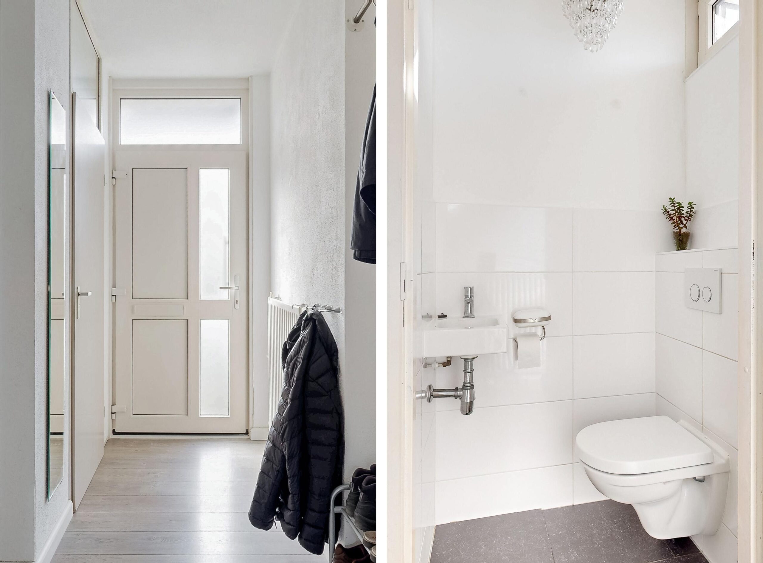 Eerste verdieping: overloop, 3 slaapkamers waarvan 1 royale slaapkamer met vaste inloopkast, witte badkamer met ligbad, douchecabine, wastafel op meubel en 2e toilet.