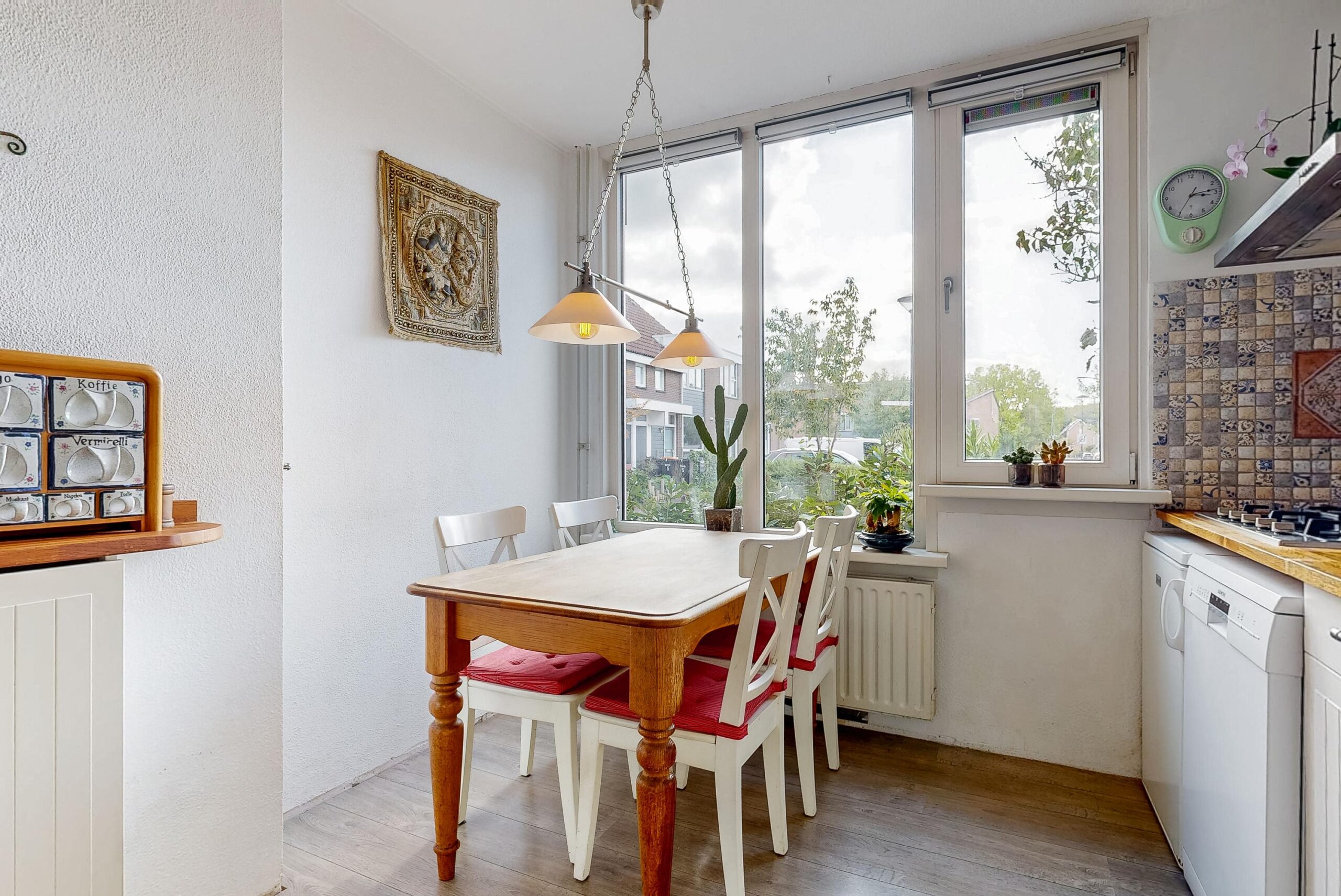 Goed onderhouden hoekwoning met verrassend ruime, binnendoor bereikbare multifunctionele garage van circa 32 m2 met hoog plafond, eigen parkeerplek voor de deur, 8 zonnepanelen en kunststof kozijnen.