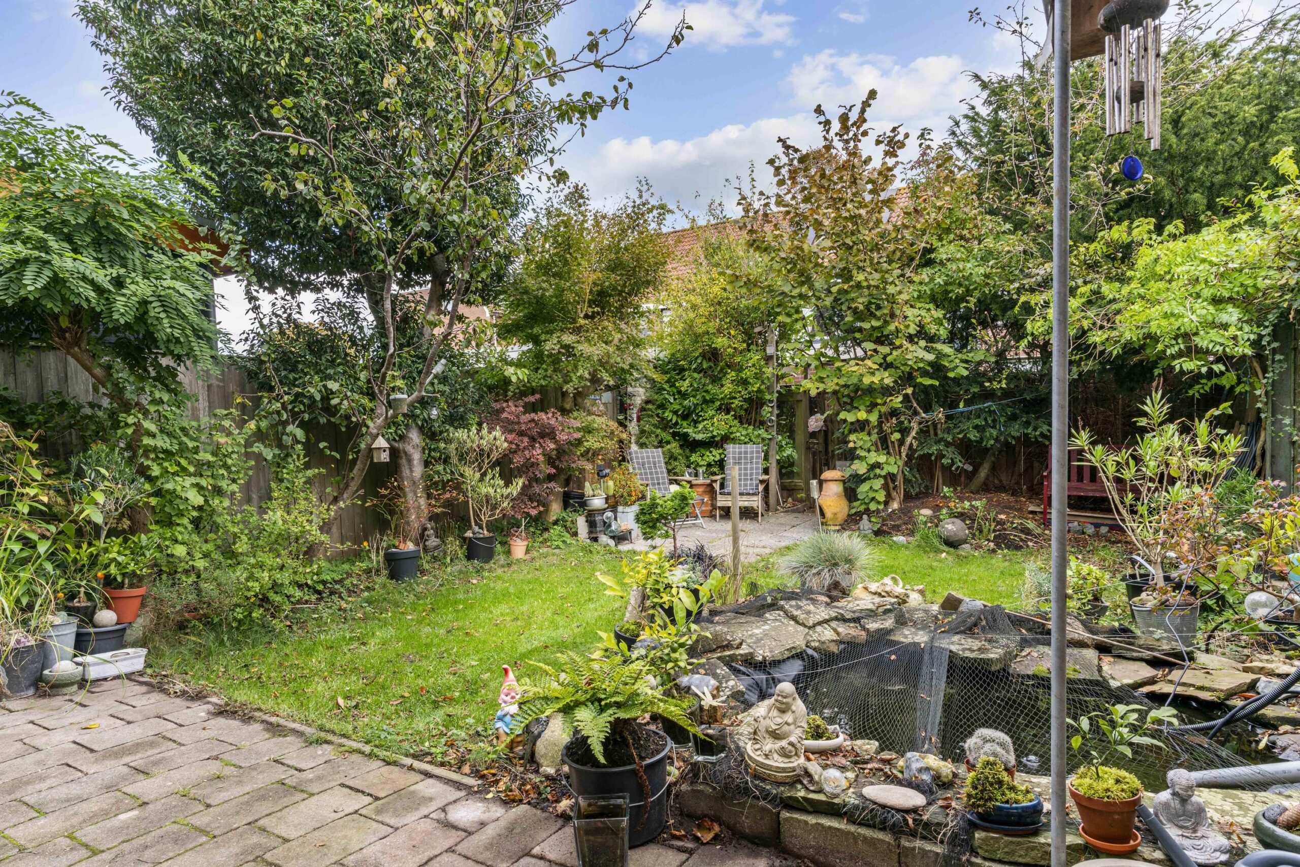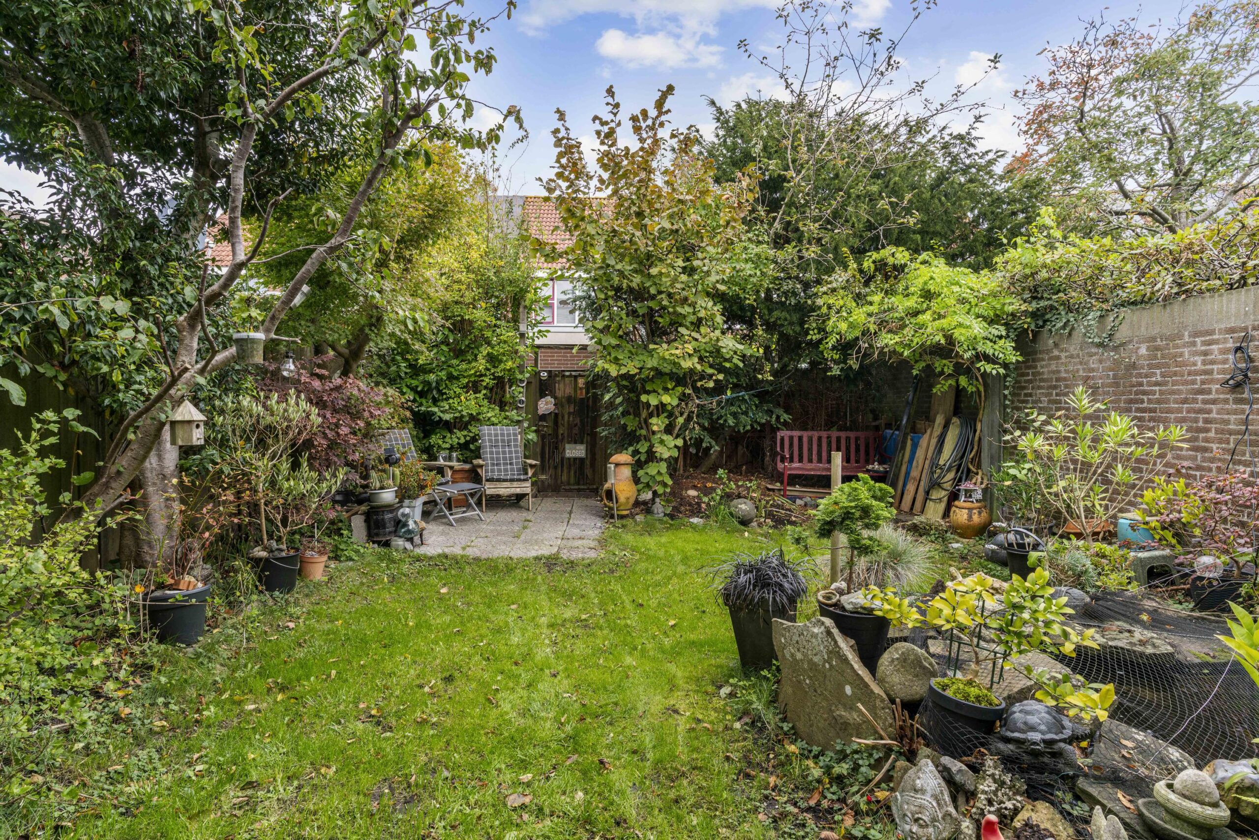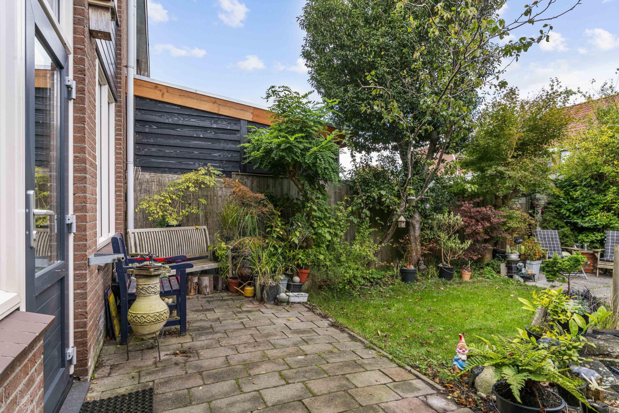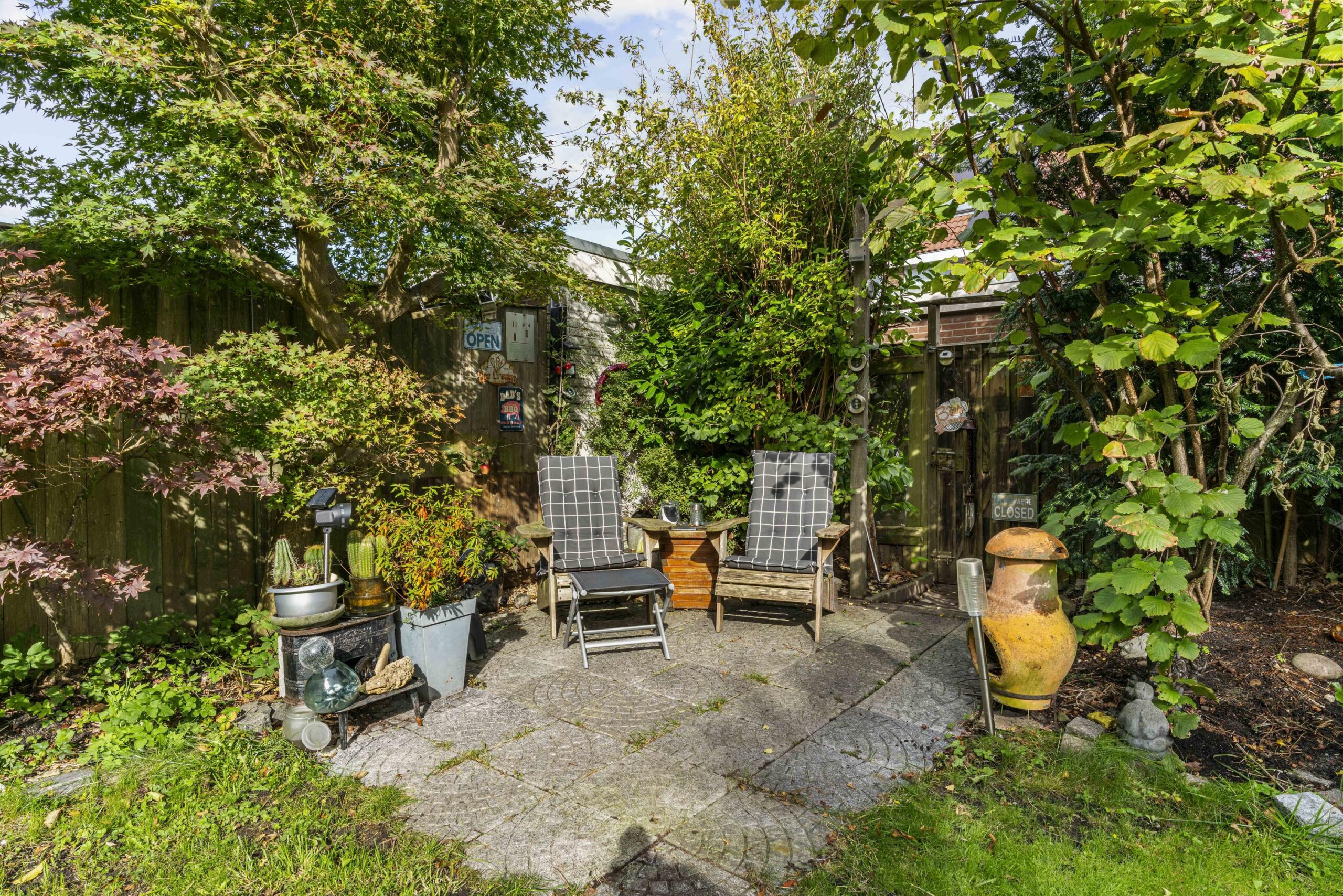 De achtertuin is gelegen op het noordoosten en voorzien van een achterom en vijver.