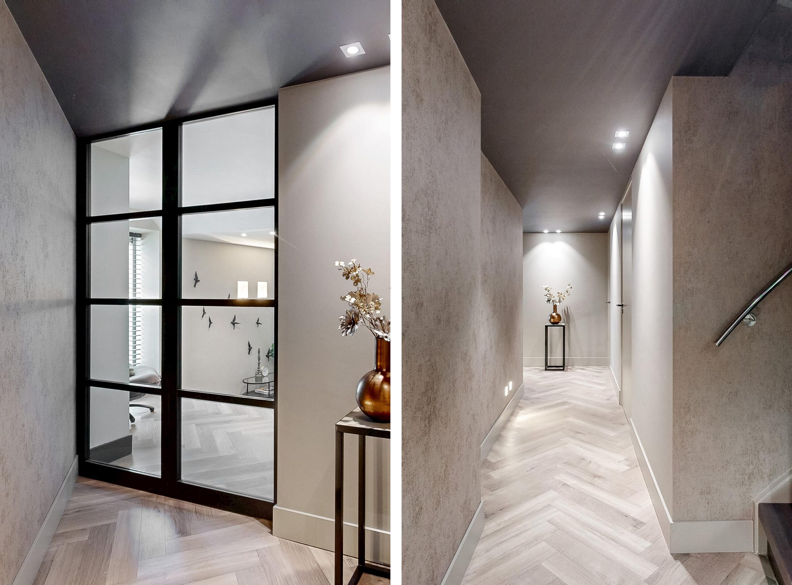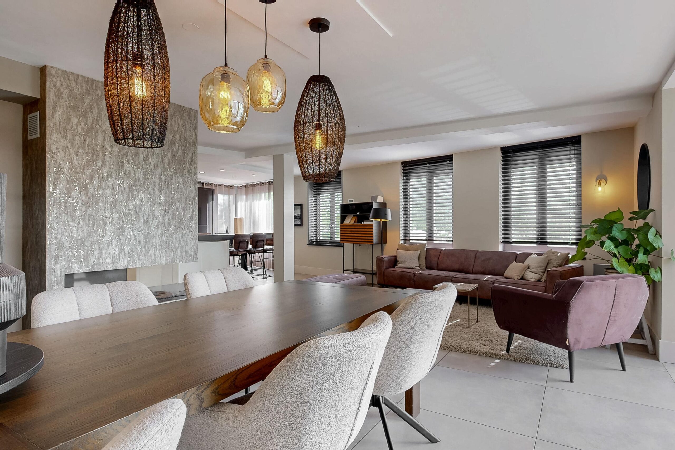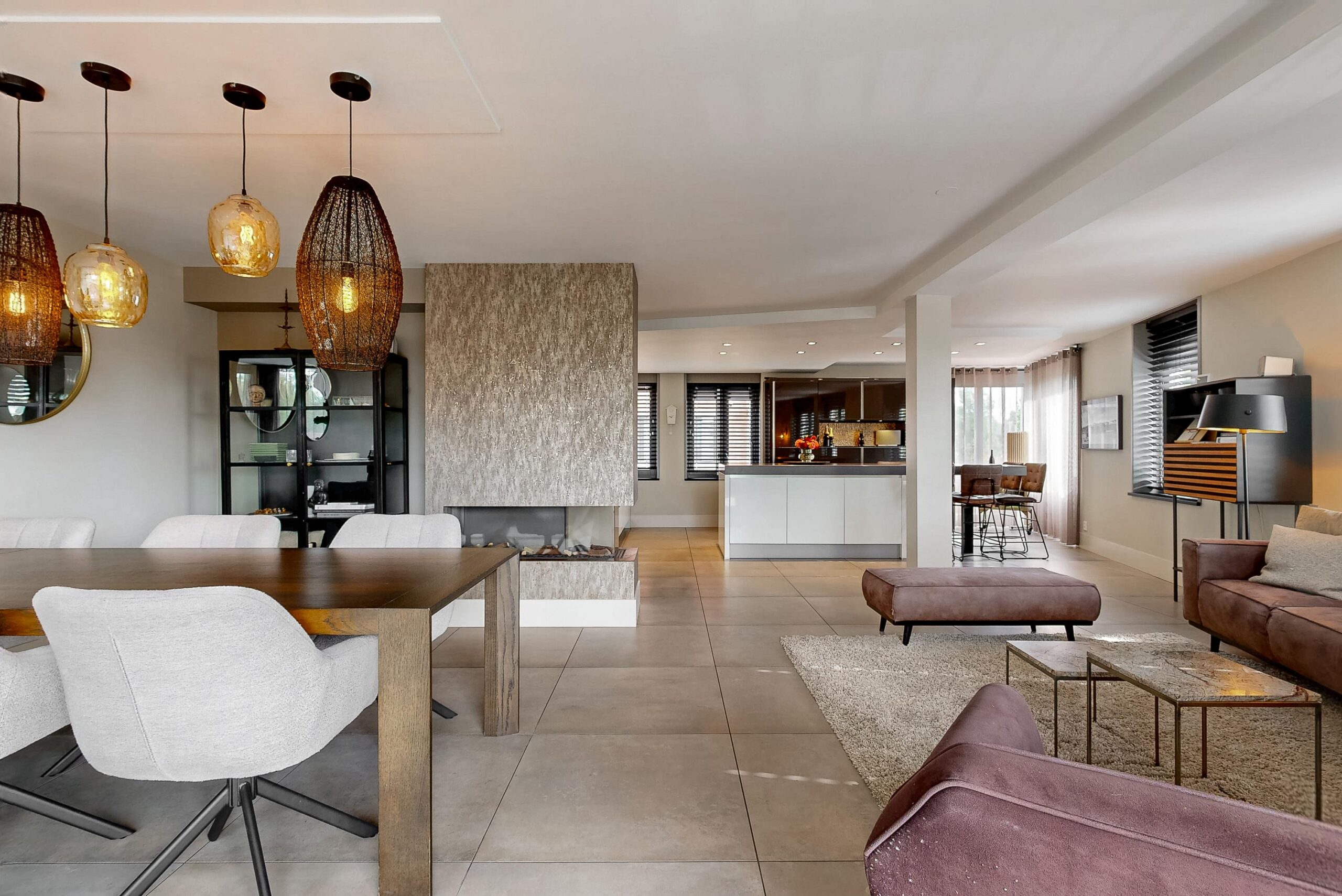 De woning is luxe afgewerkt met pleisterwerk wanden en plafonds, beschikt over 3 maal een gas open haard en grotendeels vloerverwarming.
