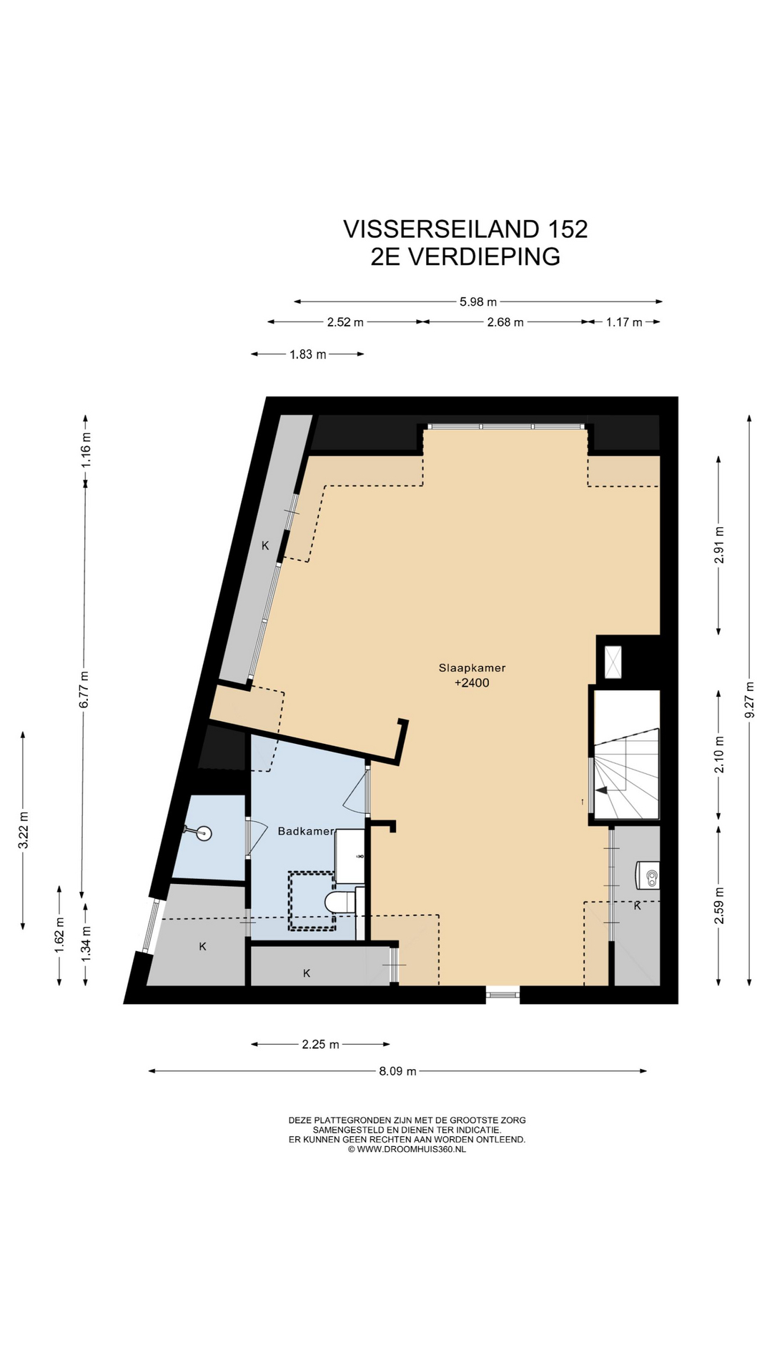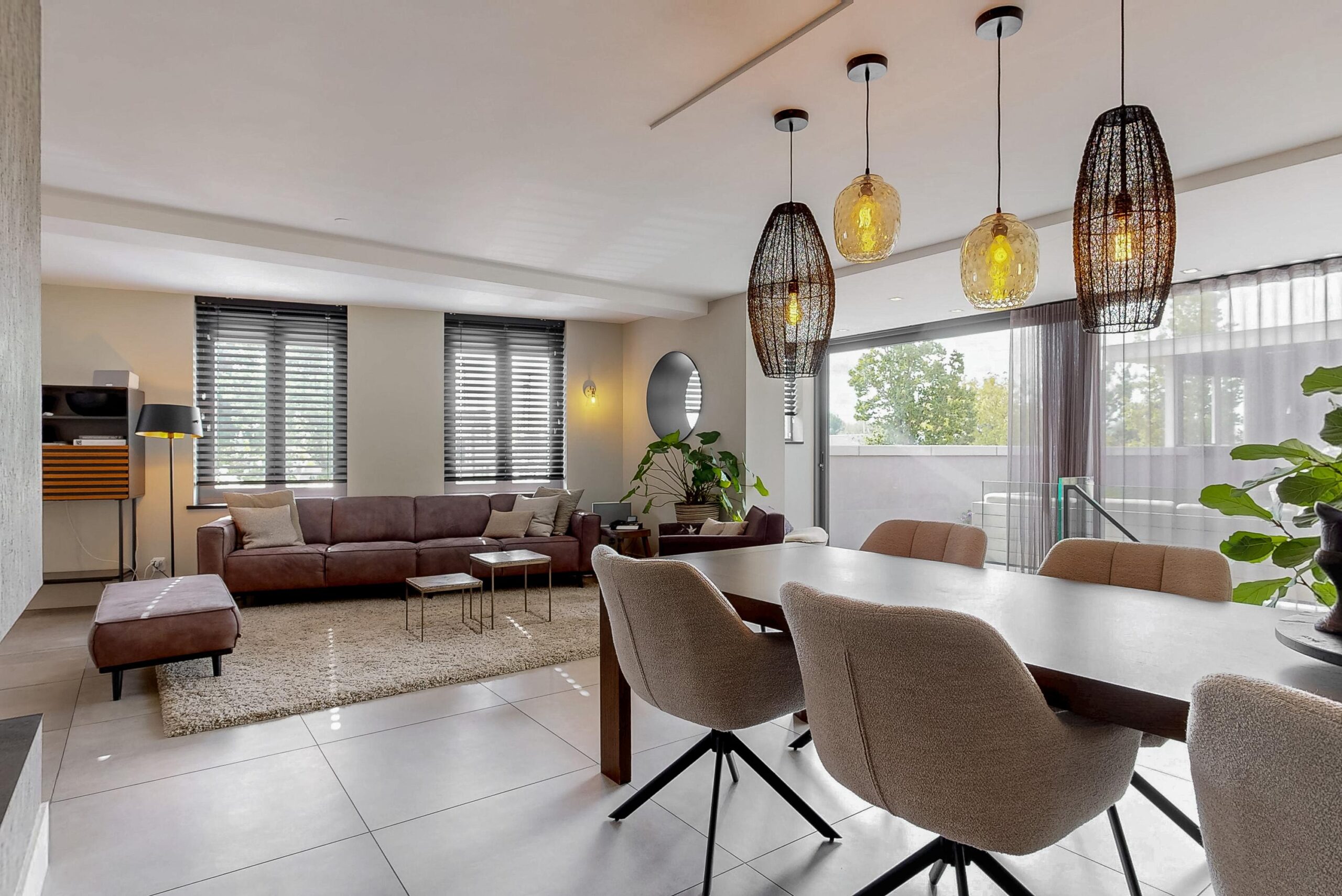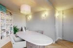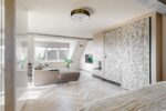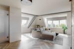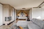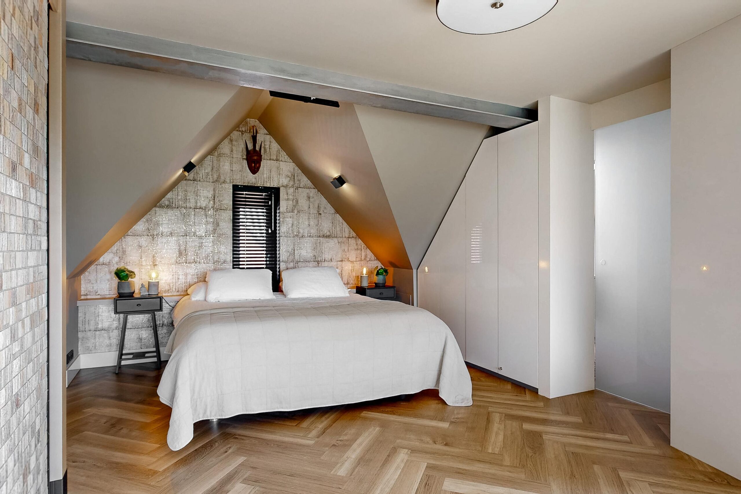 Tweede verdieping: open woon-/slaapkamer met airco, luxe 3e badkamer met stoomdouchecabine, wastafelmeubel en 3e toilet.