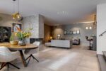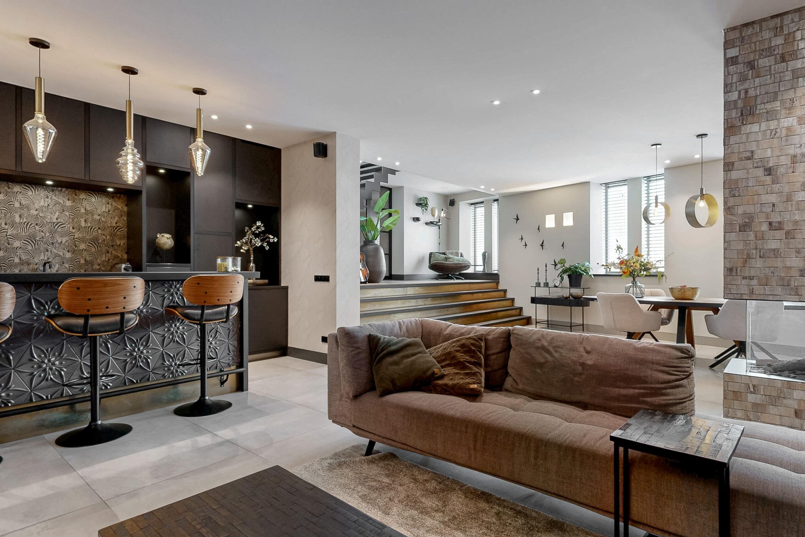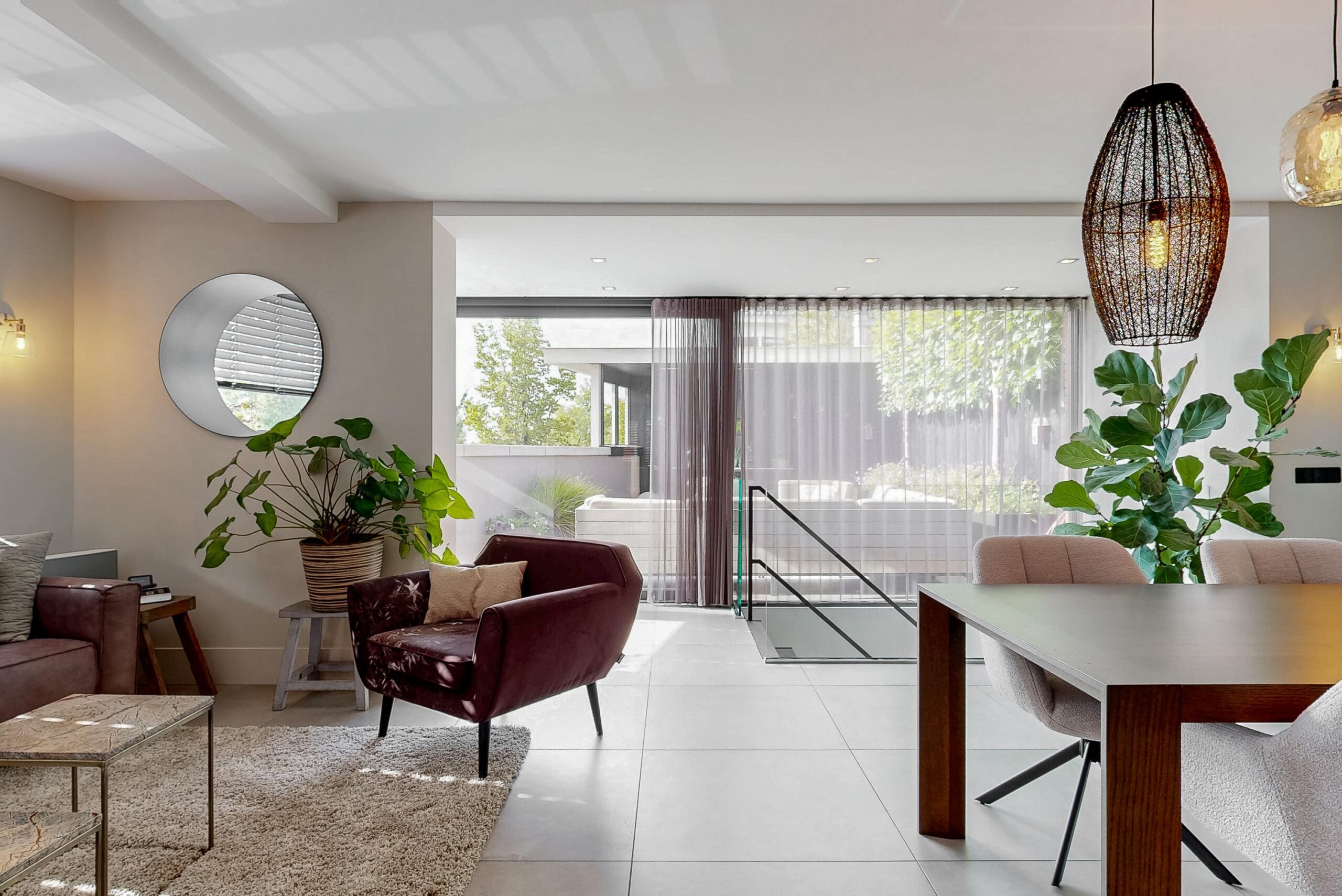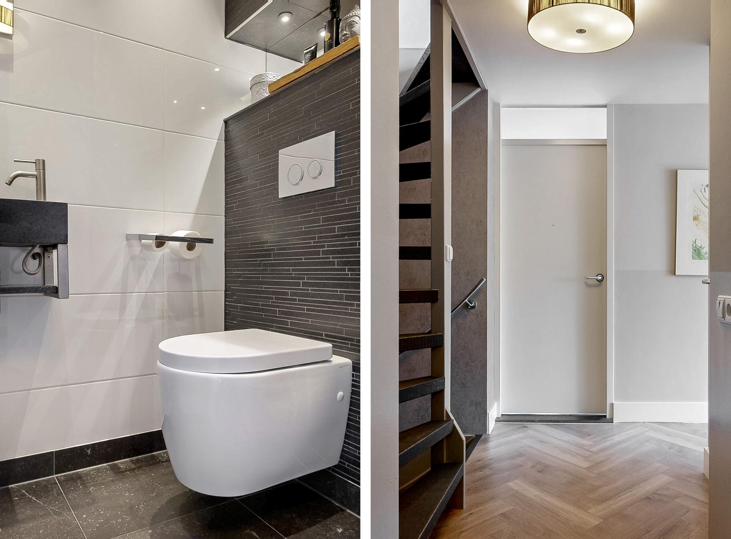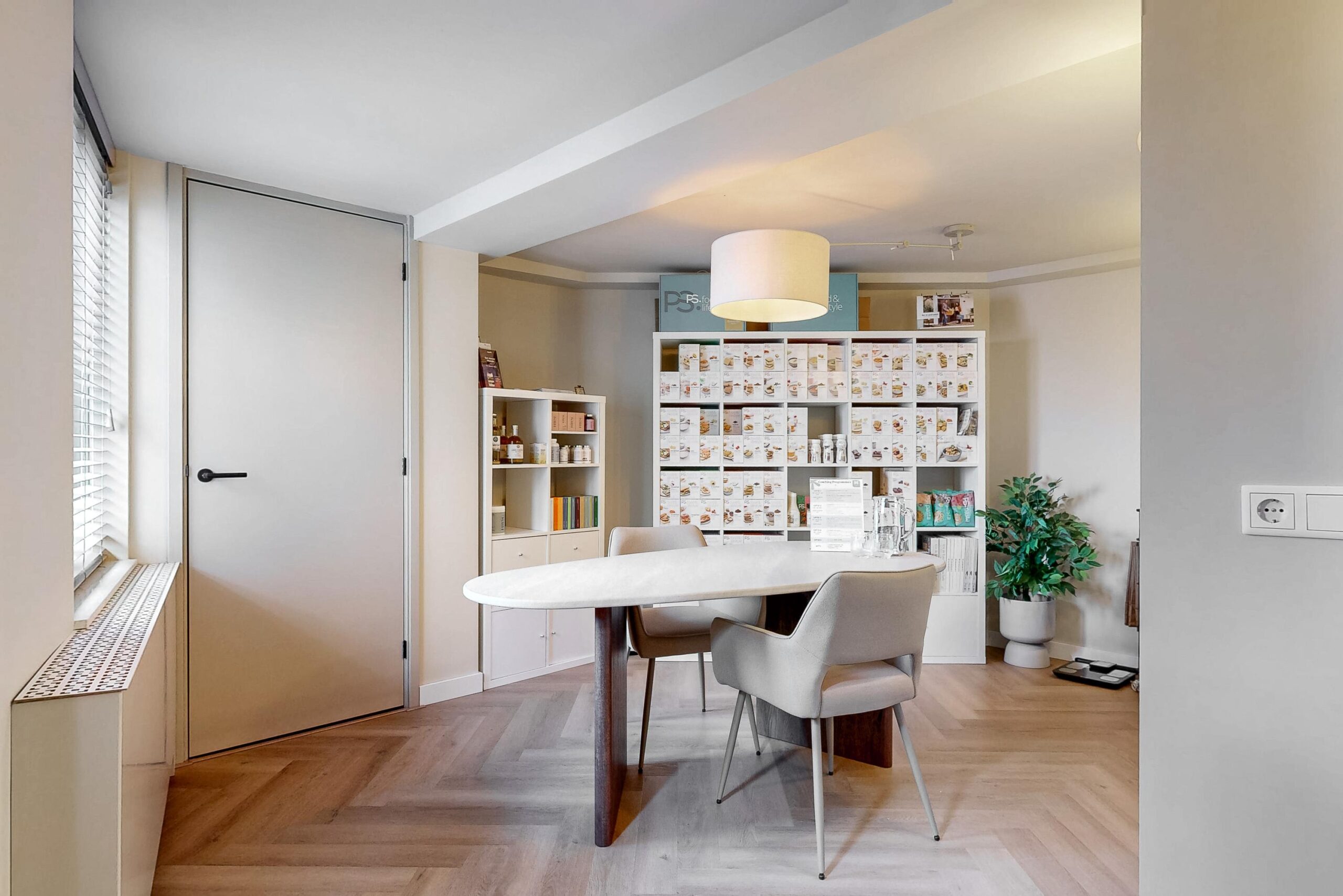 Vanuit de woonkamer is de trap naar het souterrain met de verrassende tweede woonkamer en tweede keuken met vaatwasser, koelkast en Quooker, gang, wandcloset en douche, praktijkruimte en ruime garage.