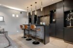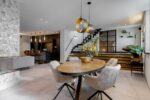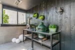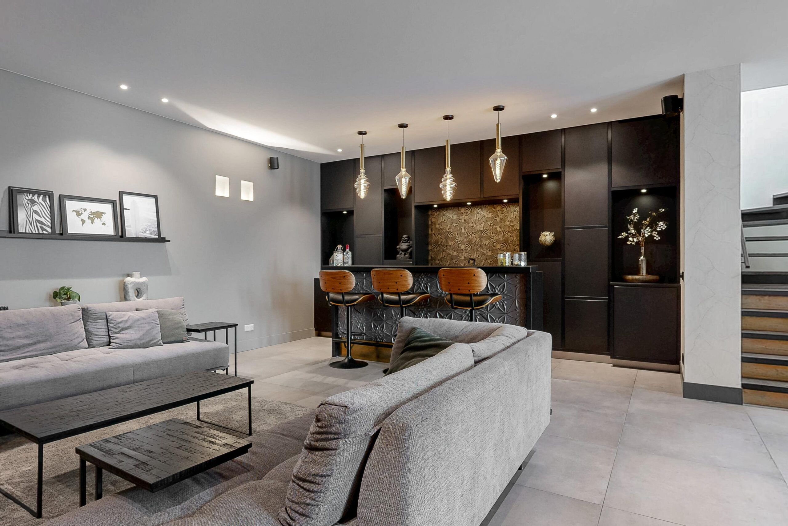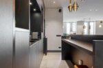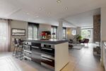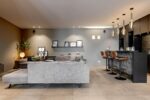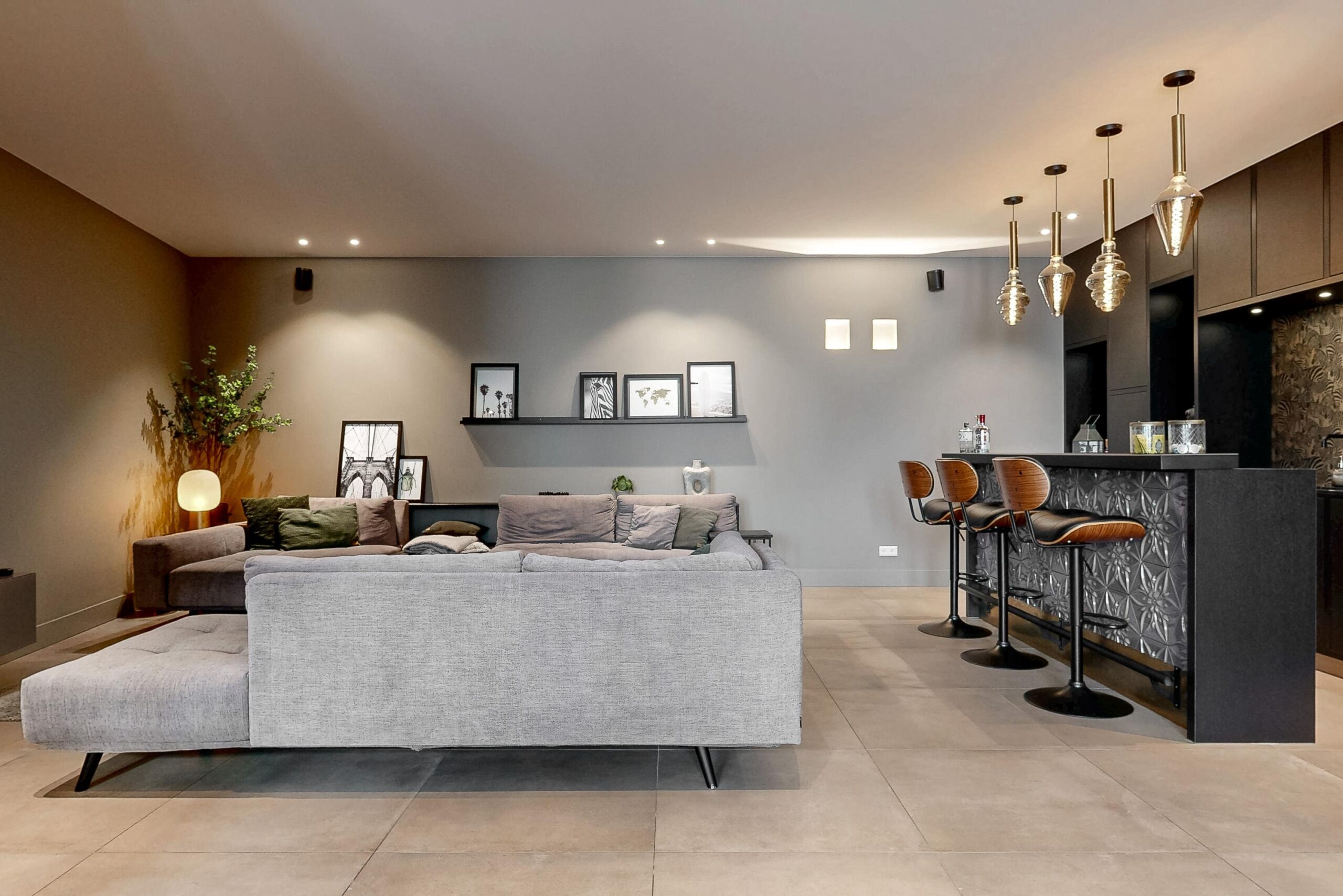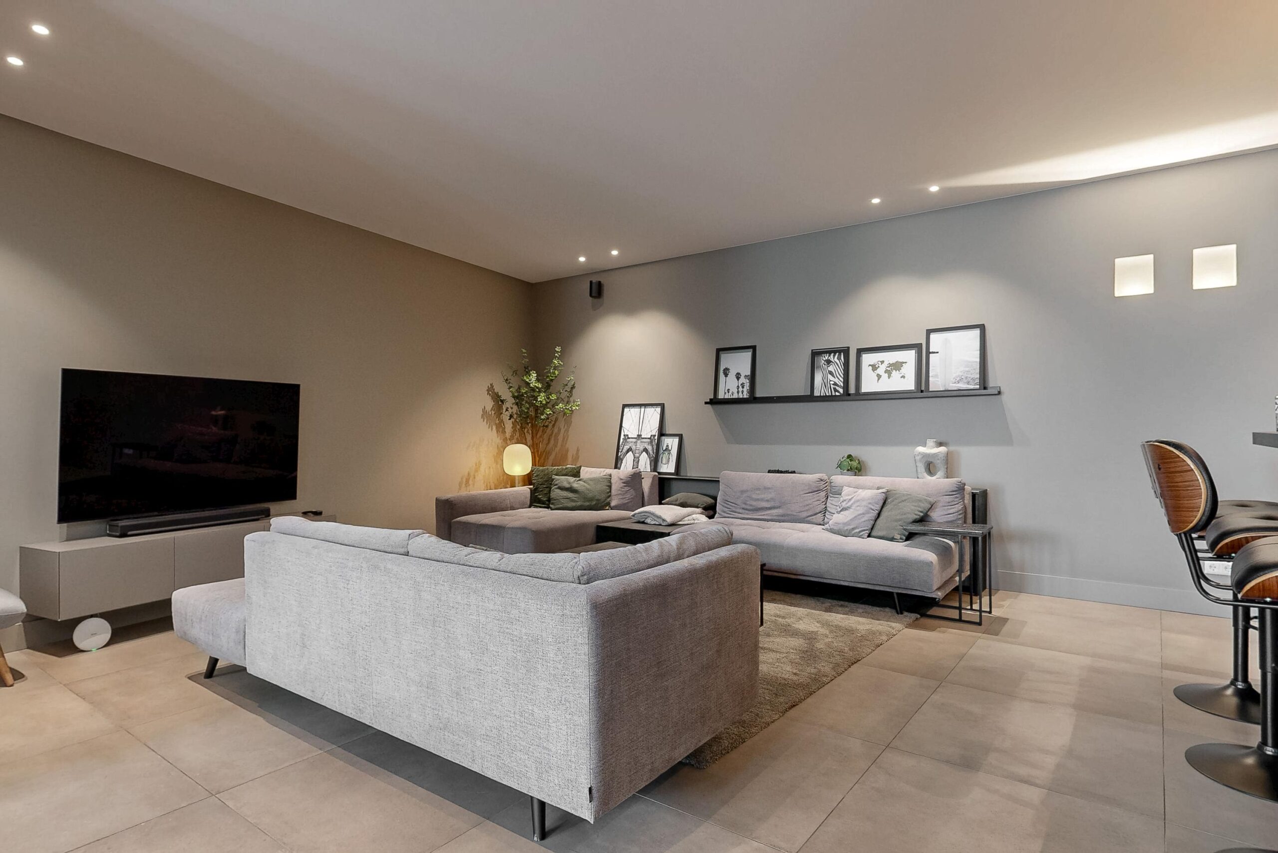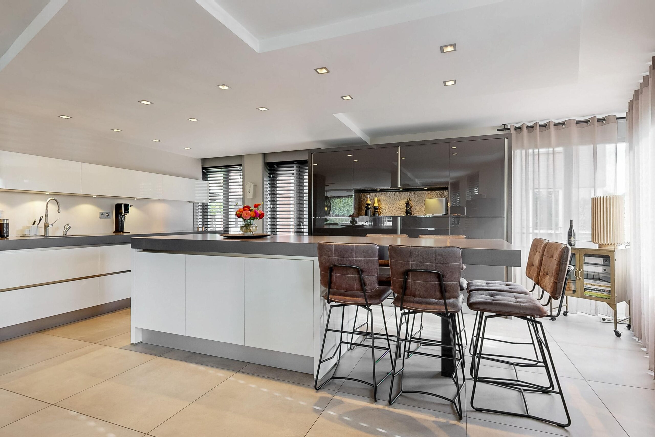 Vanuit de woonkamer is de trap naar het souterrain met de verrassende tweede woonkamer en tweede keuken met vaatwasser, koelkast en Quooker, gang, wandcloset en douche, praktijkruimte en ruime garage.