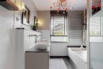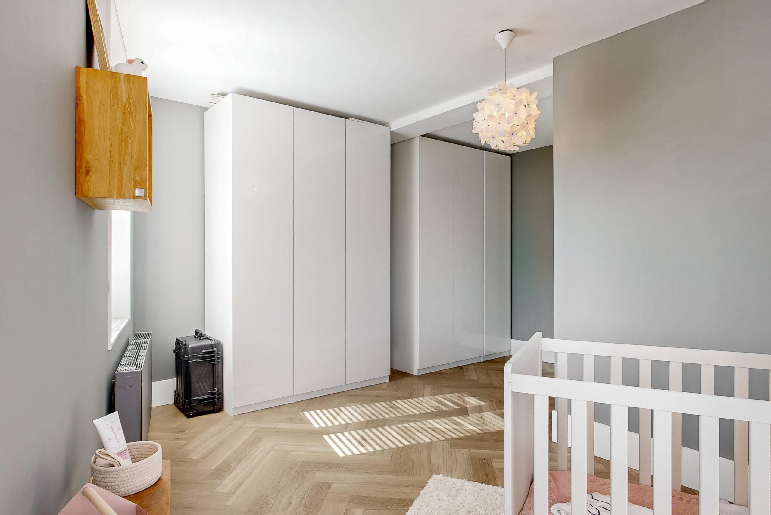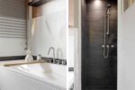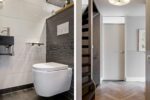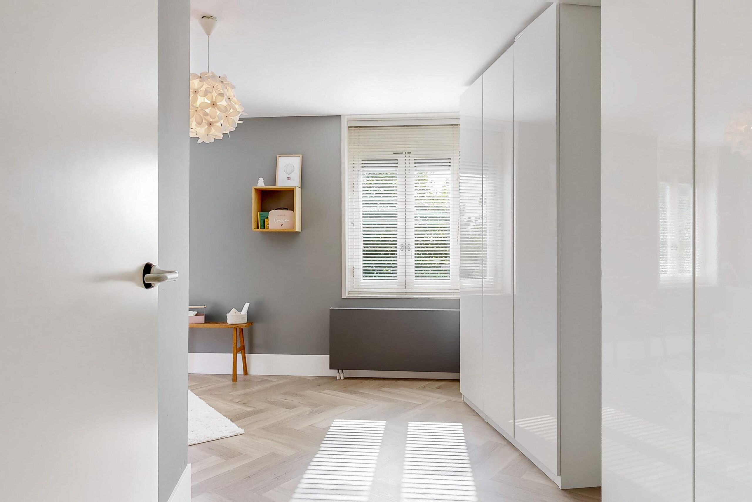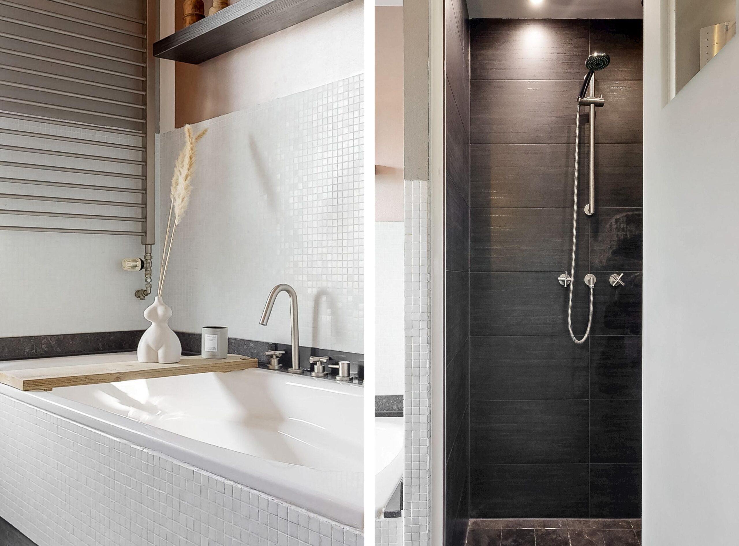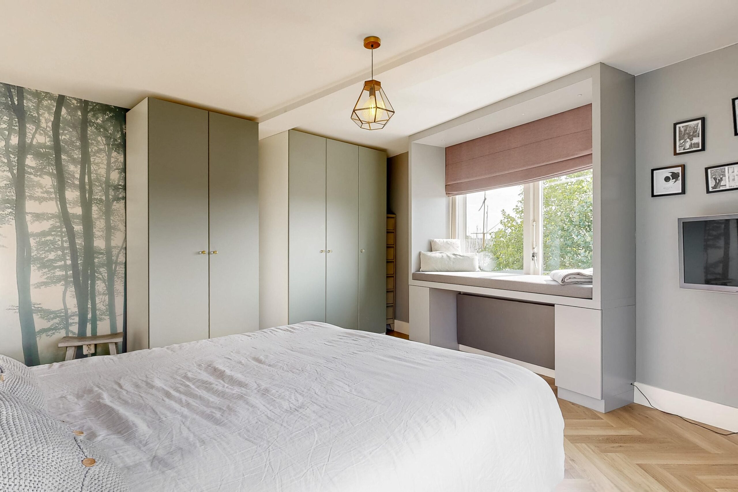 Eerste verdieping: drie slaapkamers en 2e badkamer met ligbad, inloopdouche, wastafelmeubel, designradiator en separaat 2e toilet.