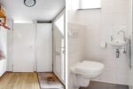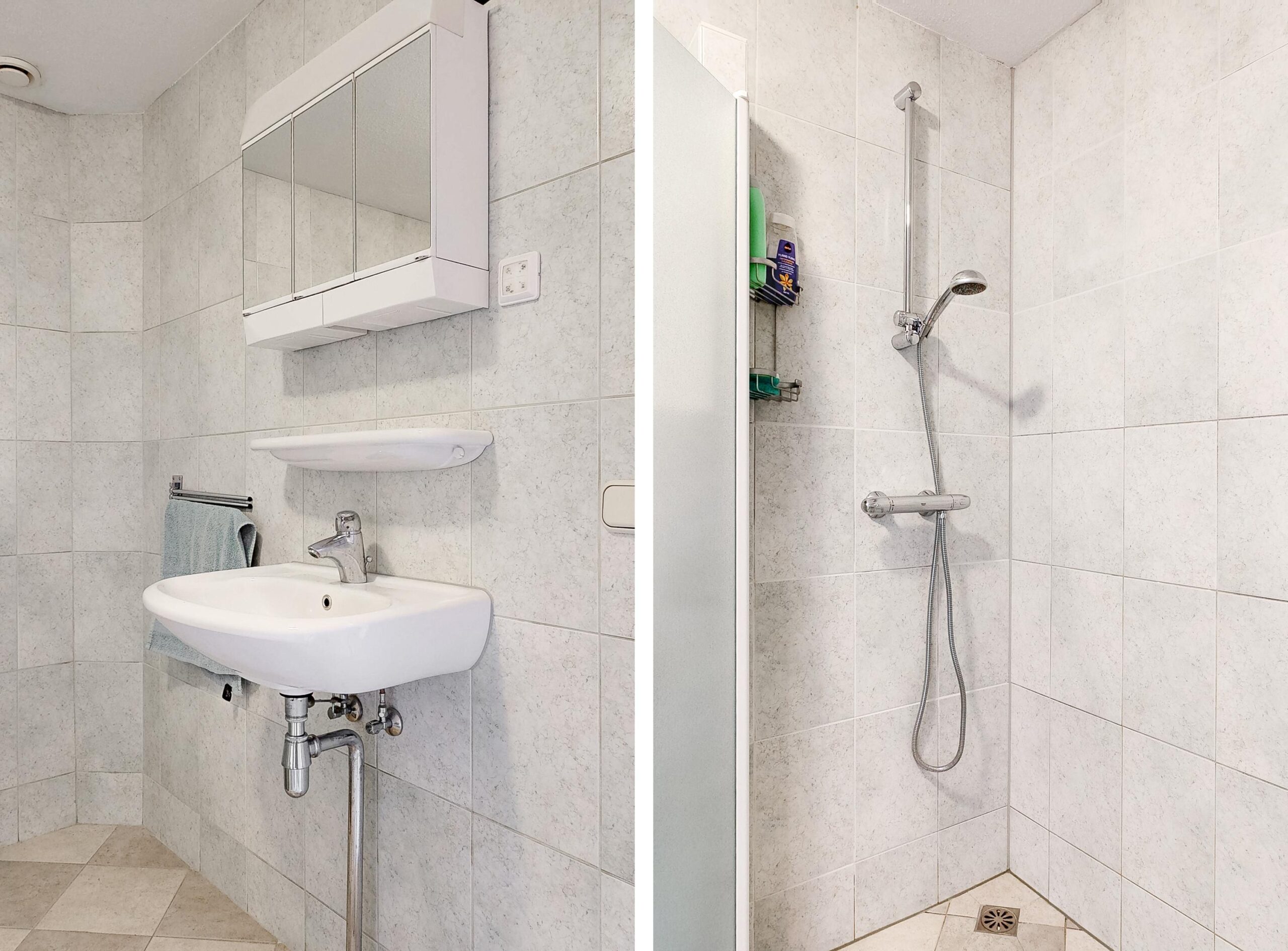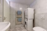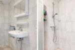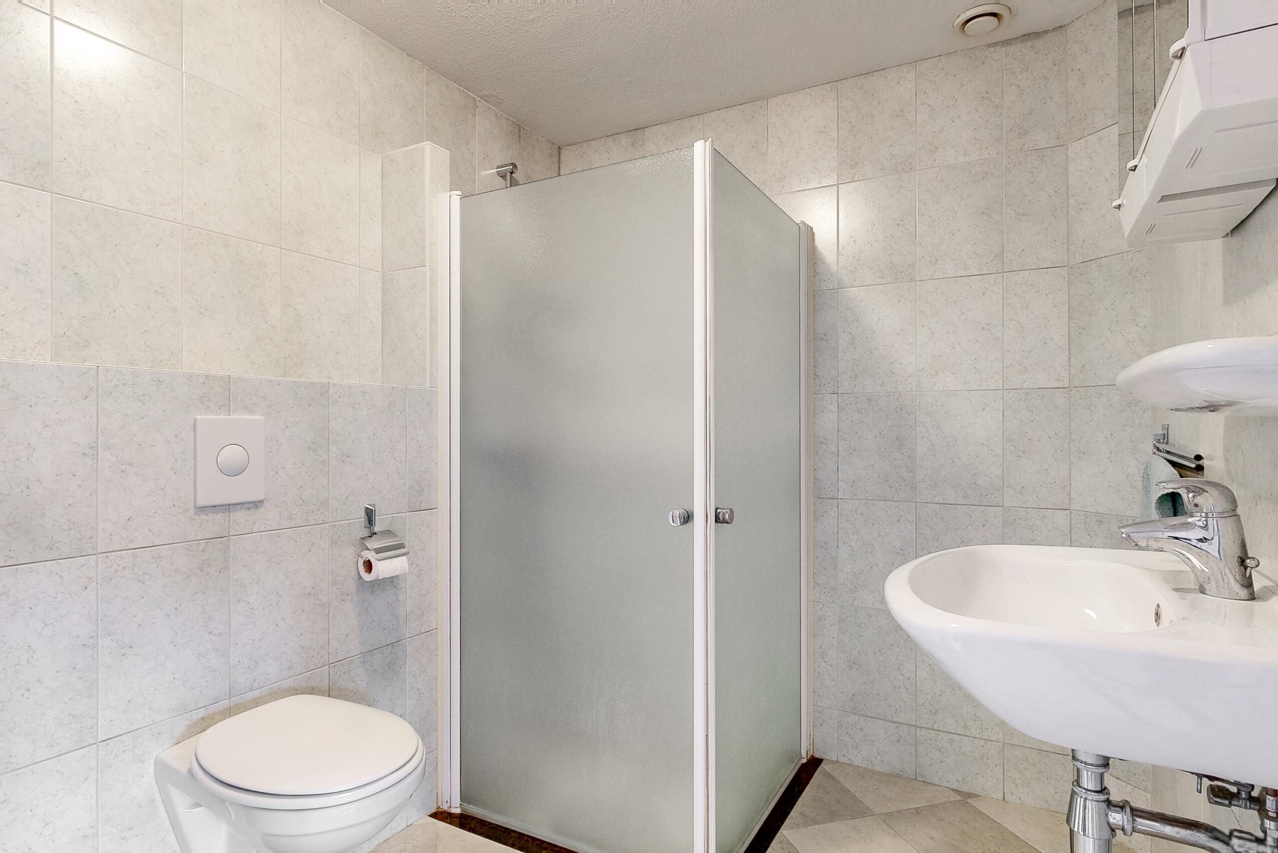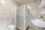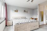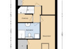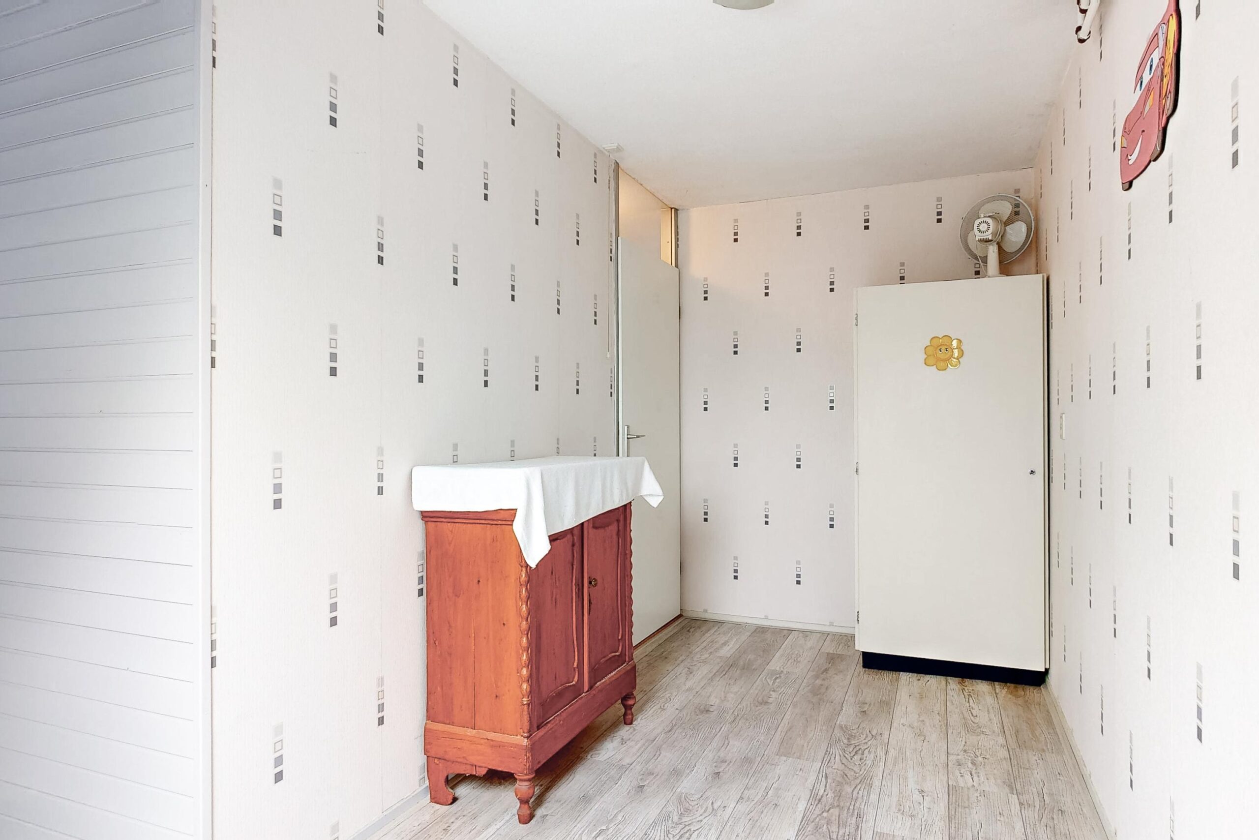 Eerste verdieping: overloop, royale slaapkamer aan de achterzijde met vaste kastenwand en frans balkon, 2e slaapkamer aan de voorzijde met dakraam en toegang tot berging, badkamer met douchecabine, 2e toilet, wastafel en aansluiting voor de wasmachine en droger.