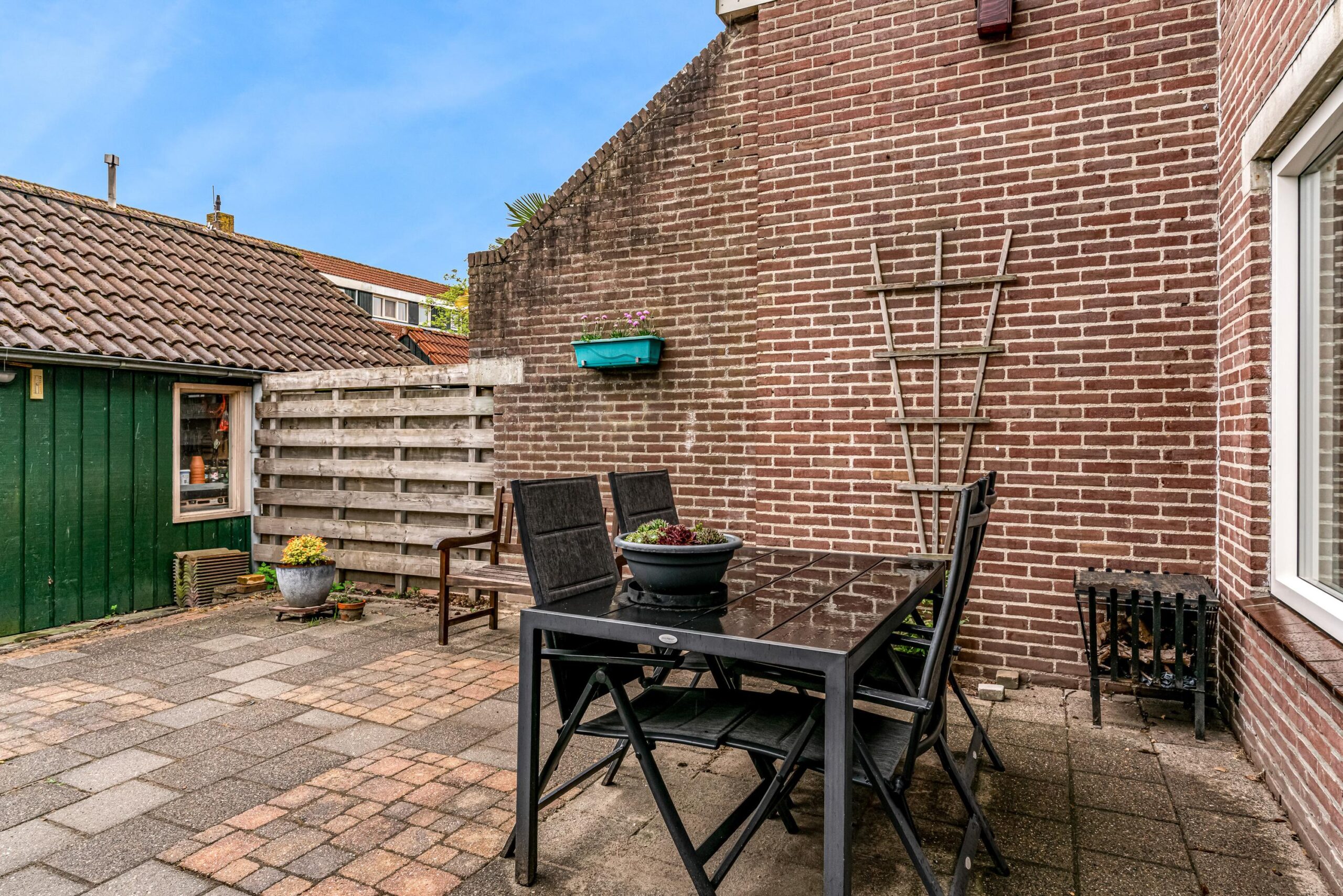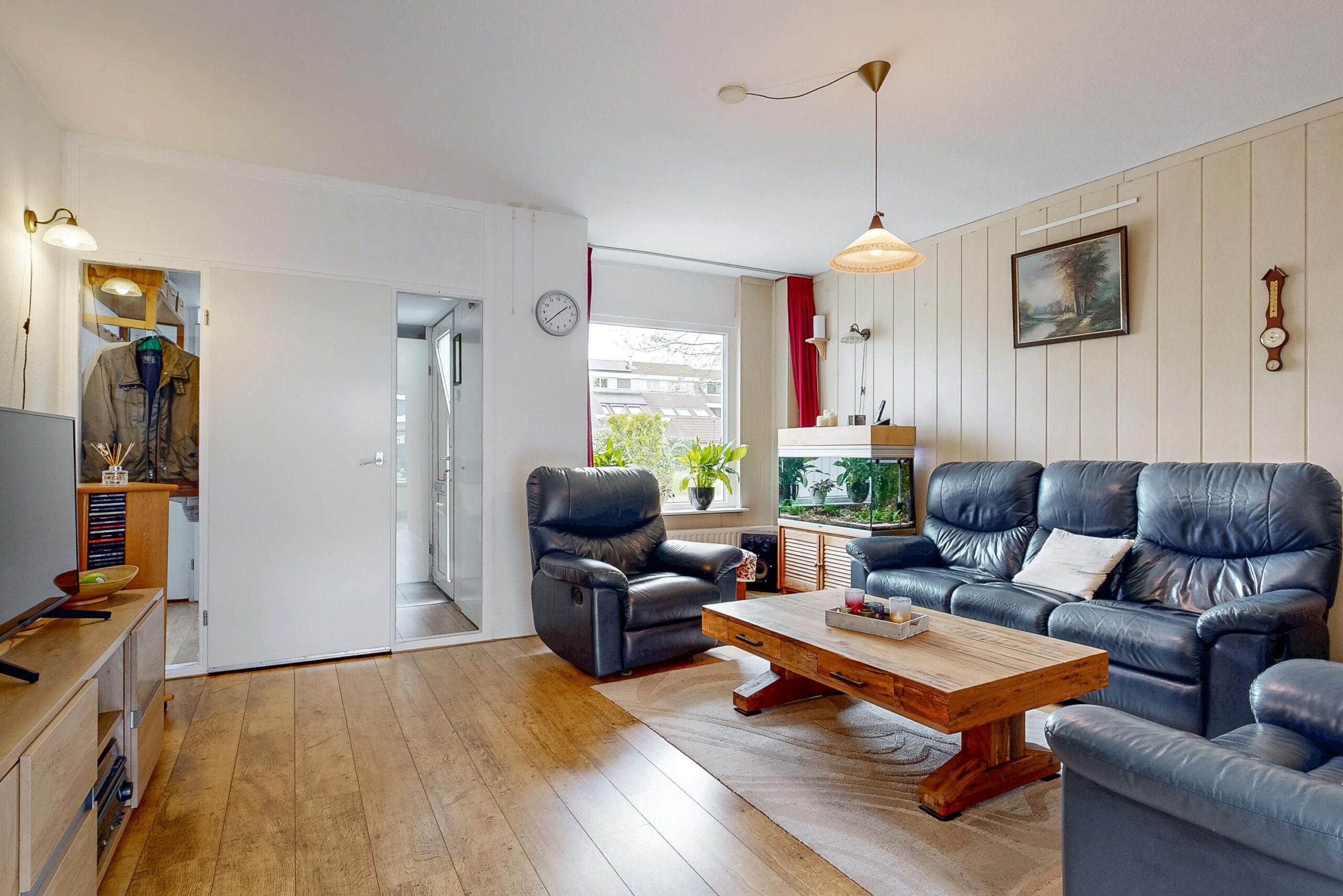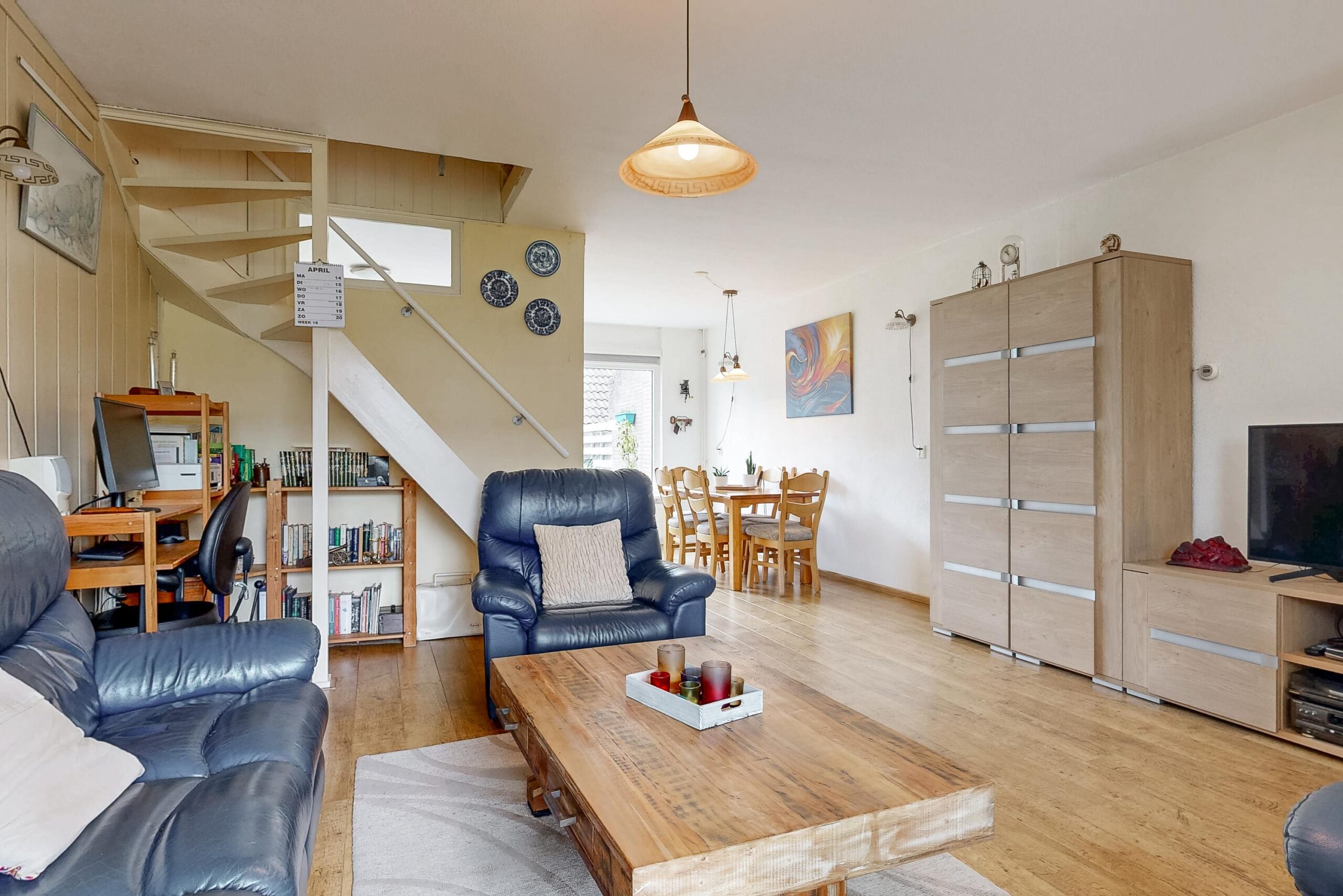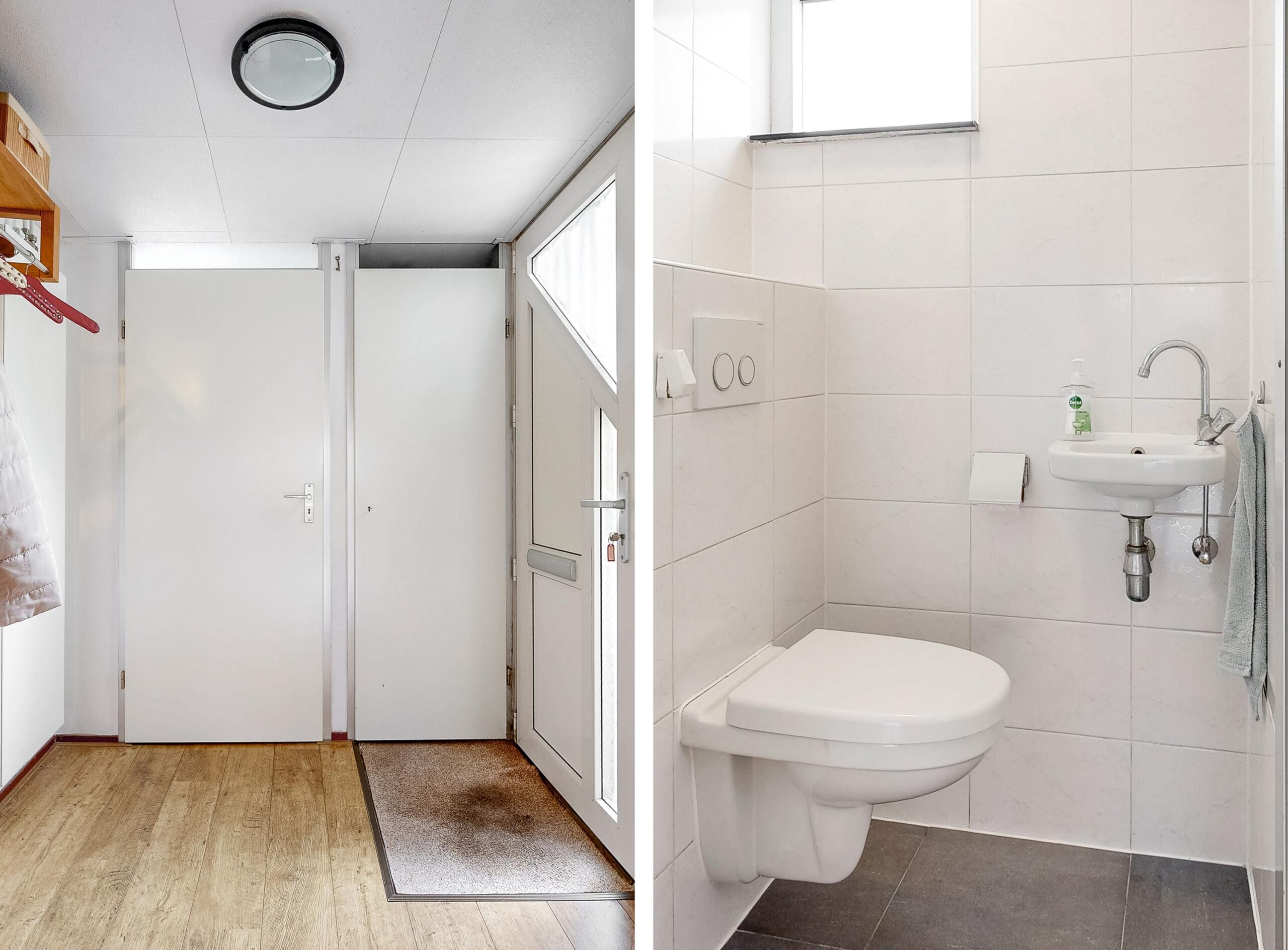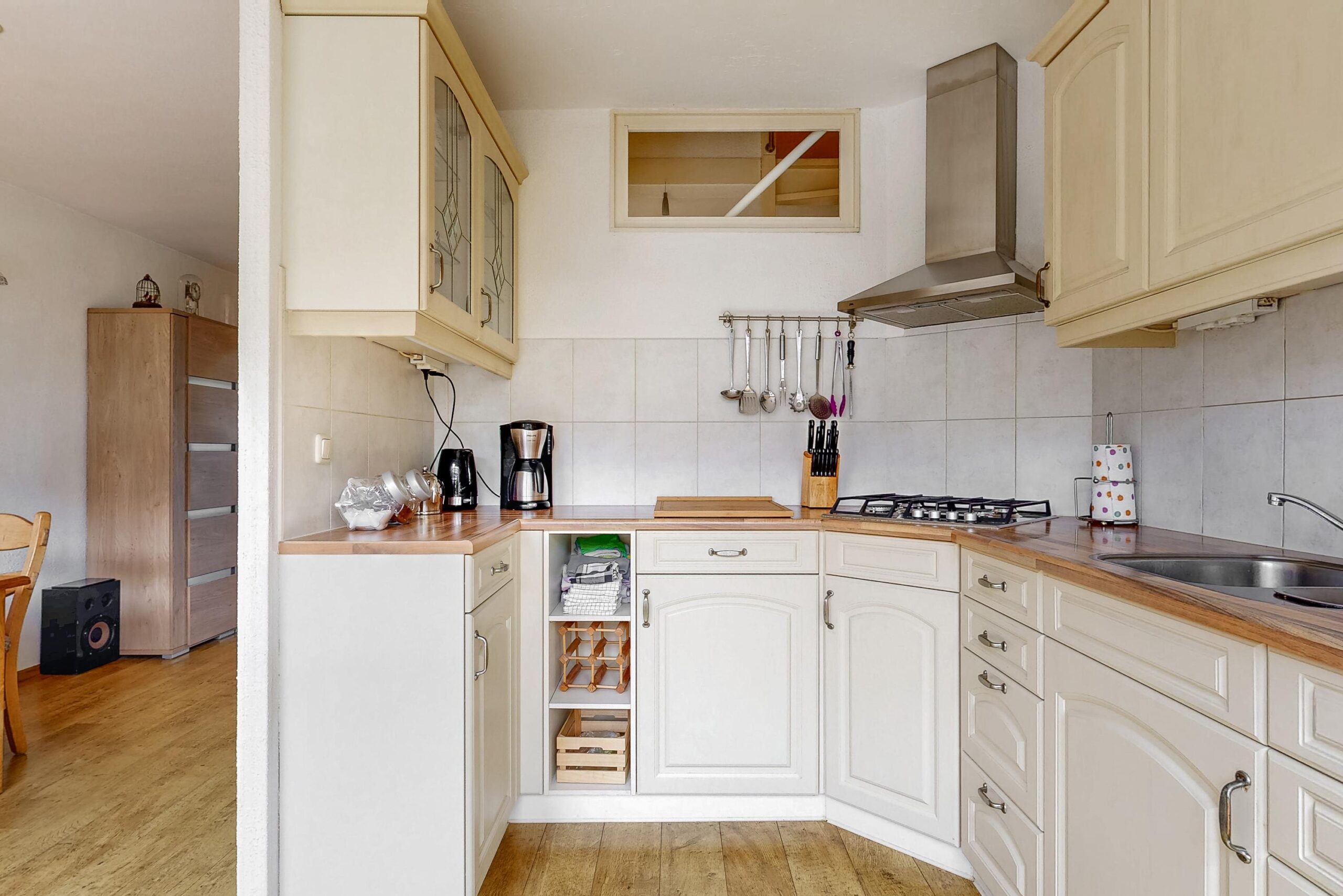 Indeling: zijentree, hal met toilet en vaste kast, straatgerichte woonkamer voorzien van een laminaatvloer, open trapopgang, half open keuken met U-vormige unit voorzien van inbouwapparatuur en toegang tot de tuin.