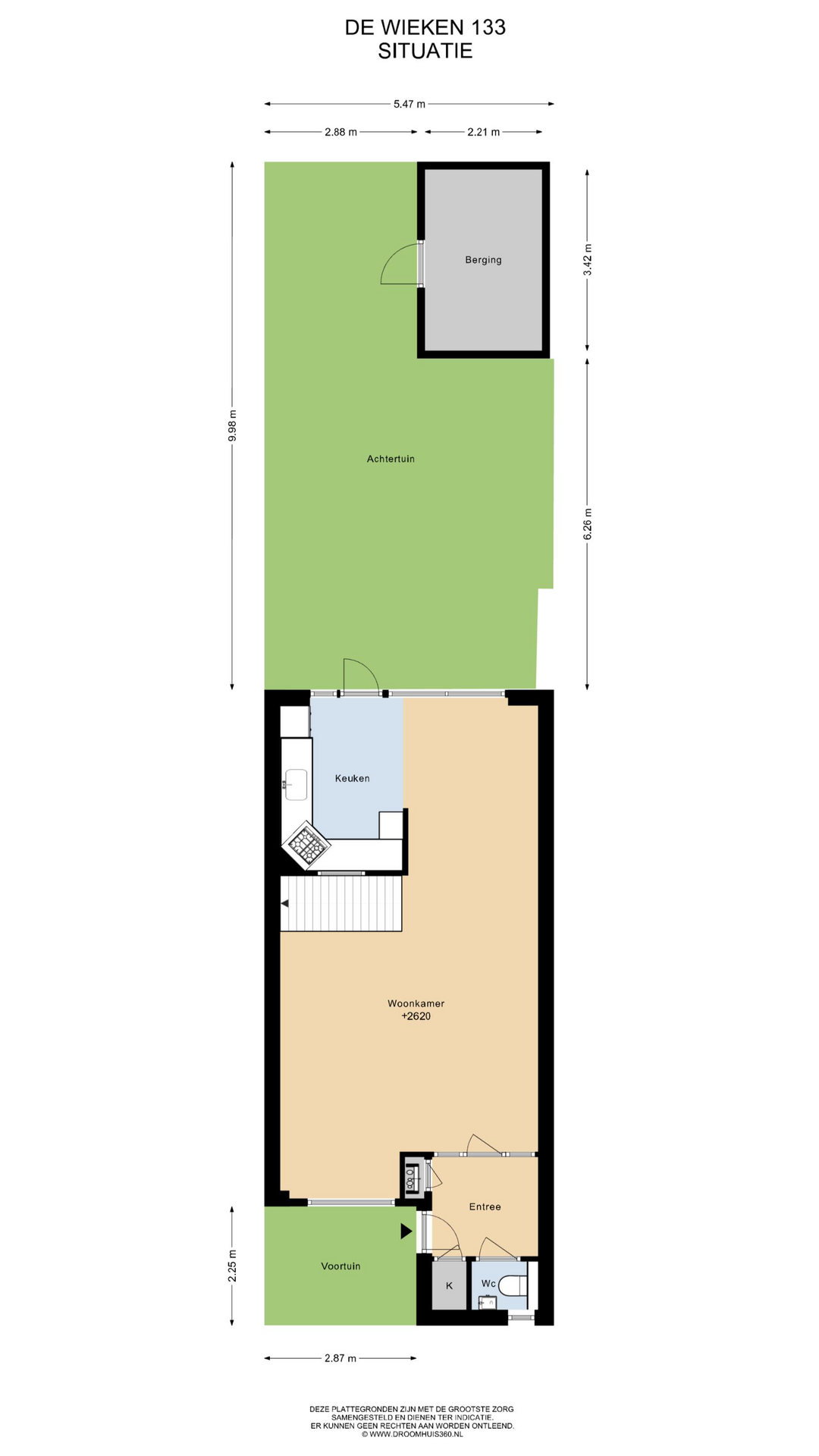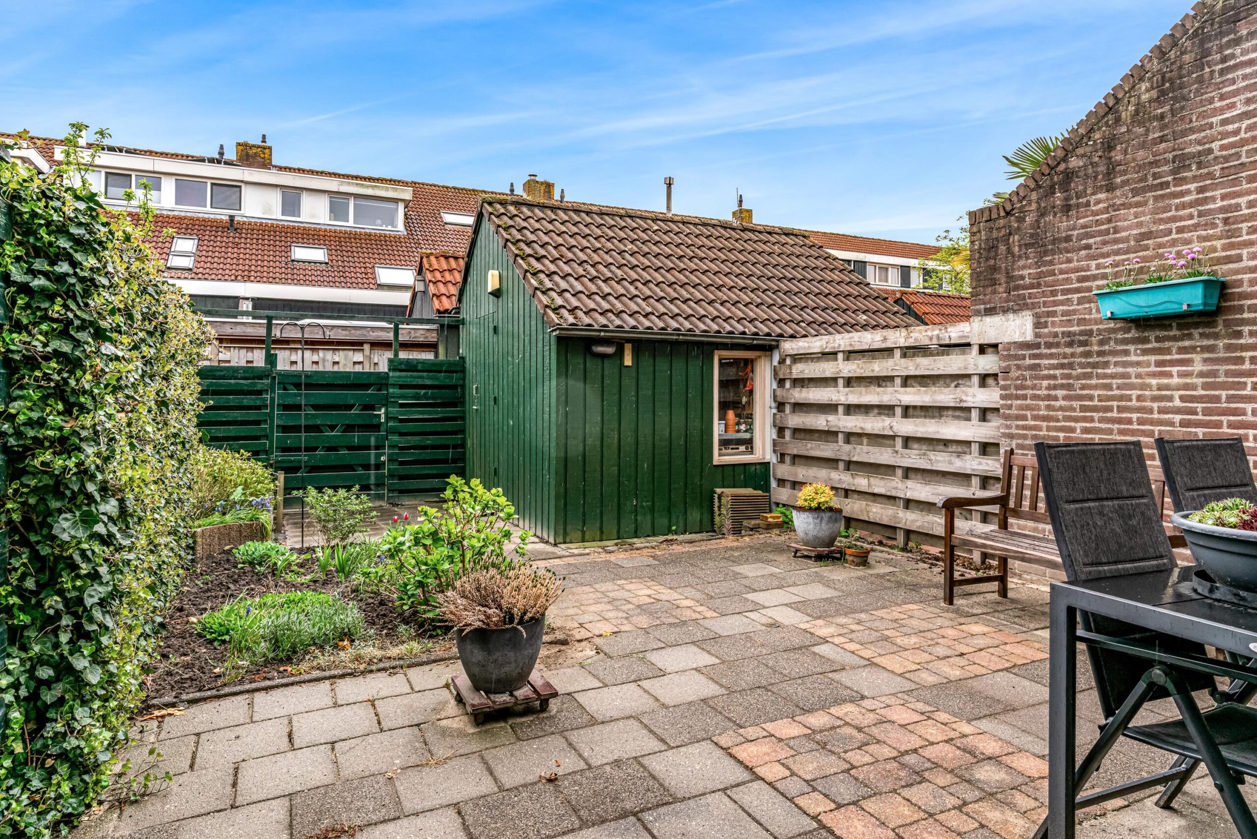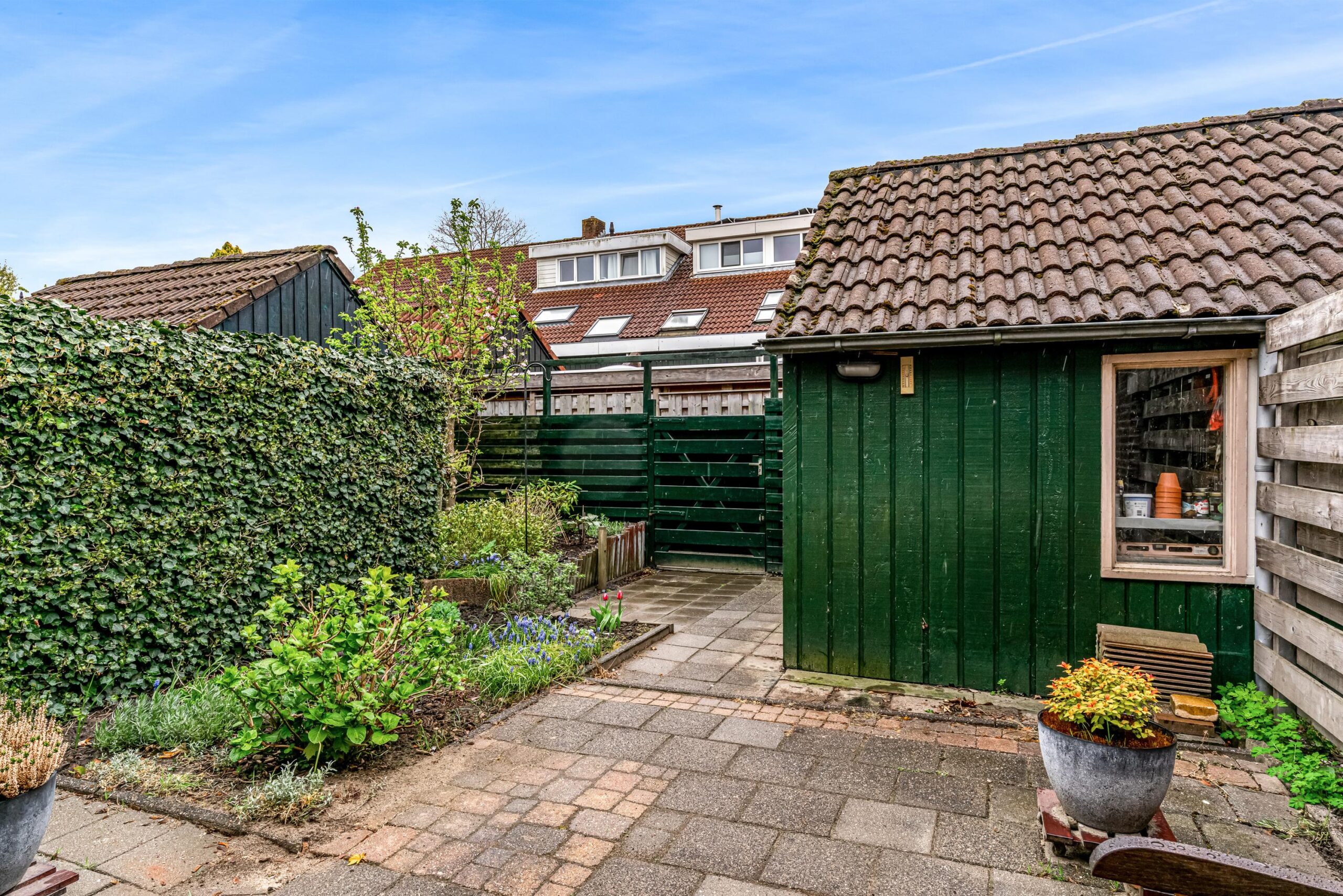 De achtertuin is gelegen op het zuiden en voorzien van een houten berging en achterom.