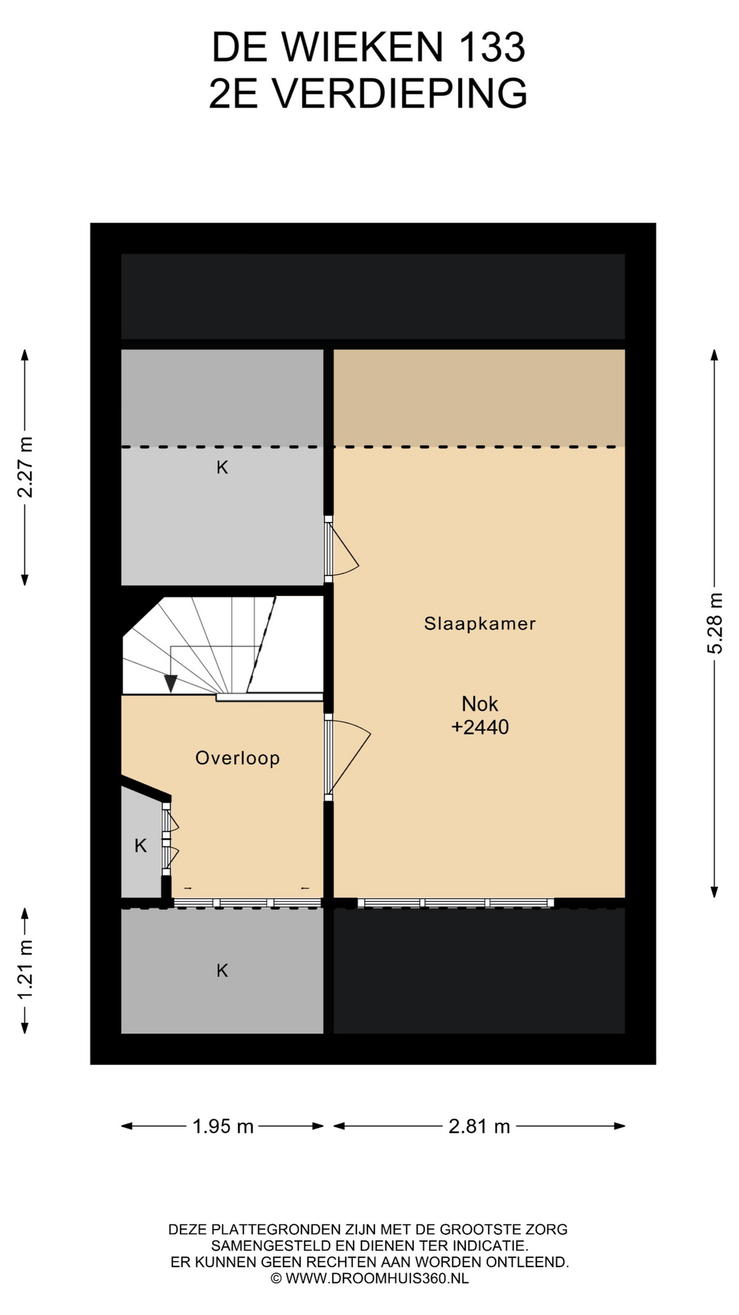 Tweede verdieping: overloop met cv-kast en toegang tot de vliering, ruime 3e slaapkamer.