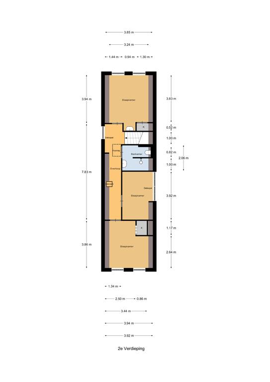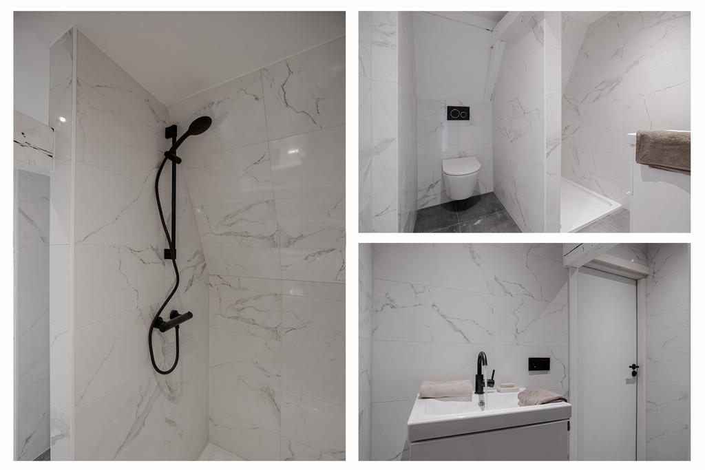 Tweede verdieping: overloop, 2e badkamer met douche, wastafelmeubel en 3e wandcloset, 3e slaapkamer aan de voorzijde, 4e slaapkamer met dakkapel in het midden en 5e slaapkamer met wastafel aan de achterzijde. Via luik heeft u toegang tot de bergzolder.