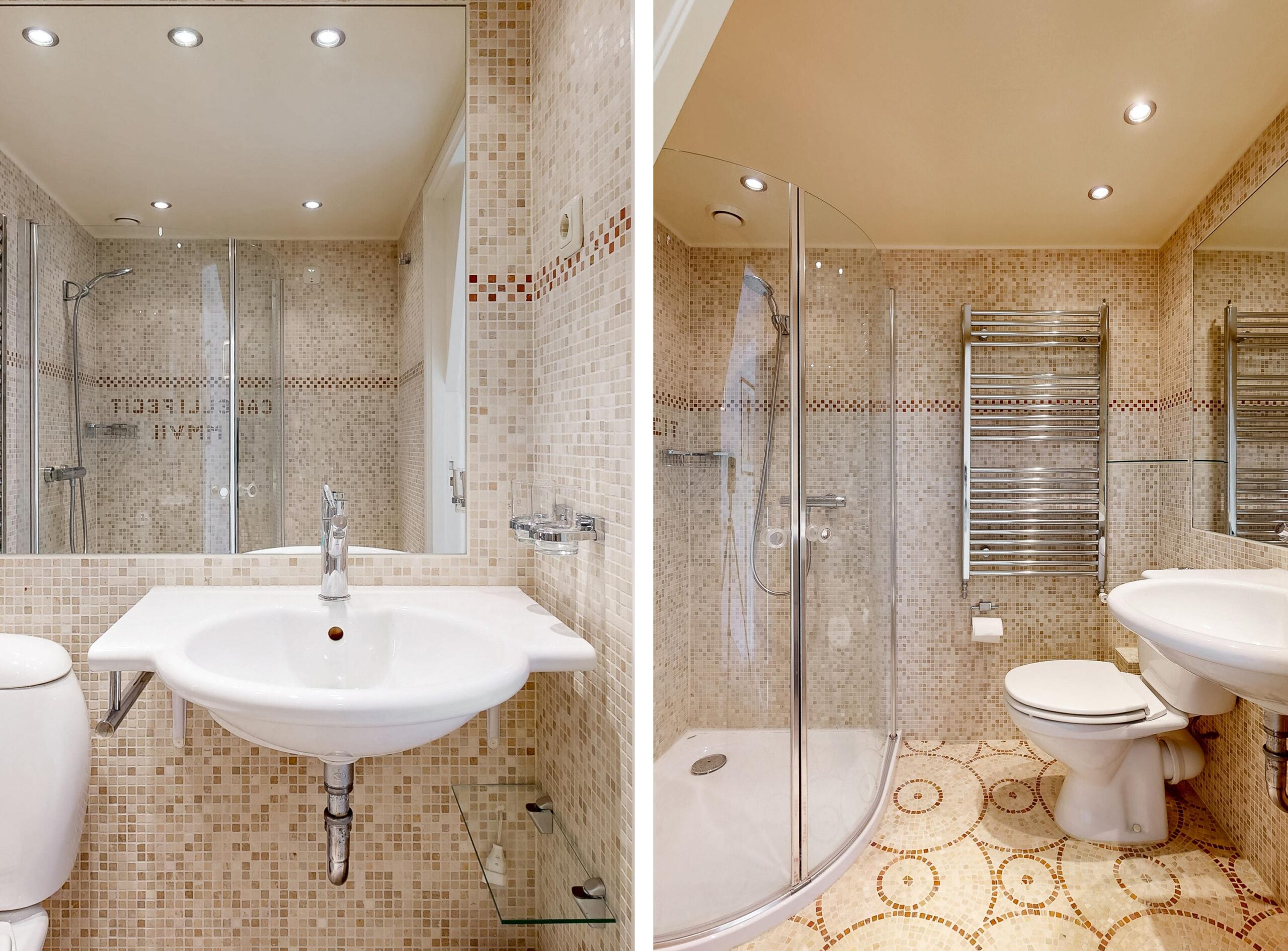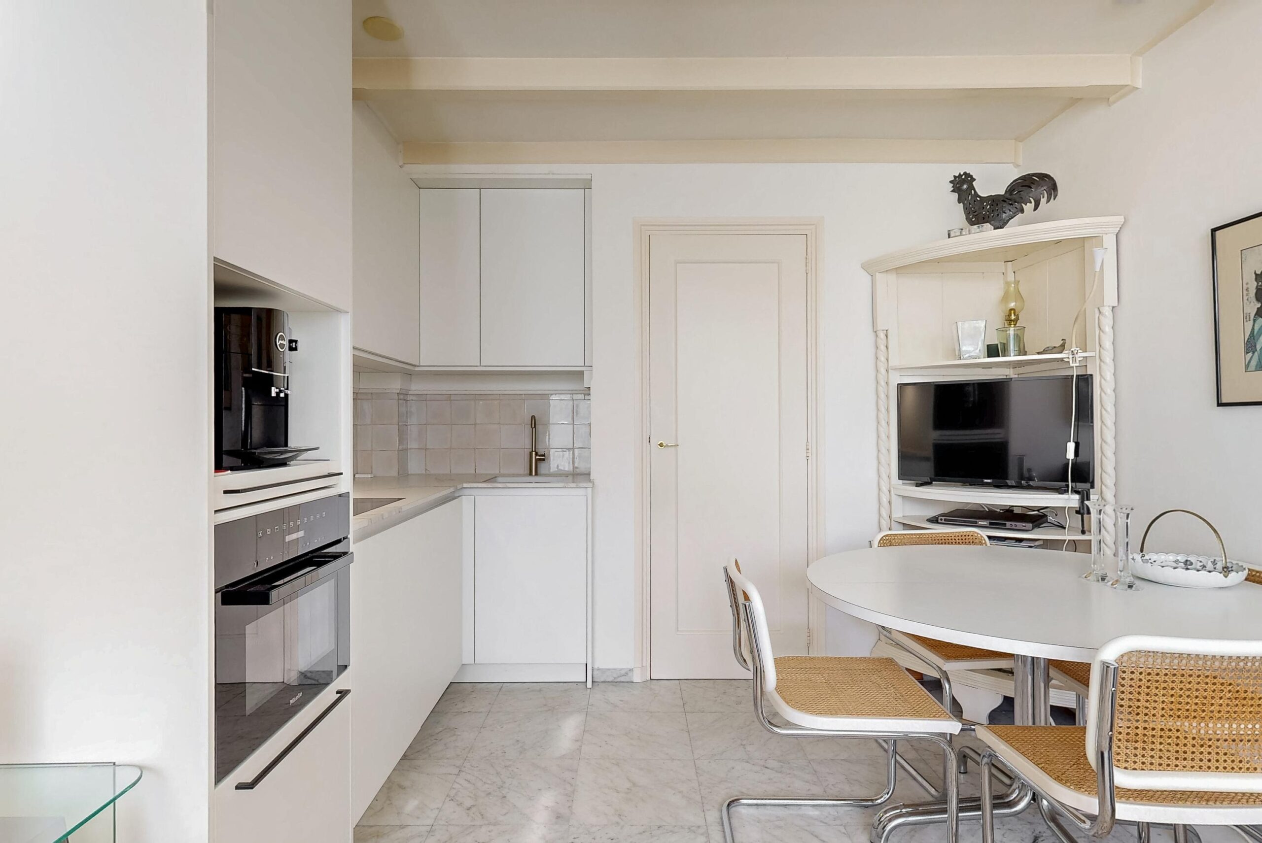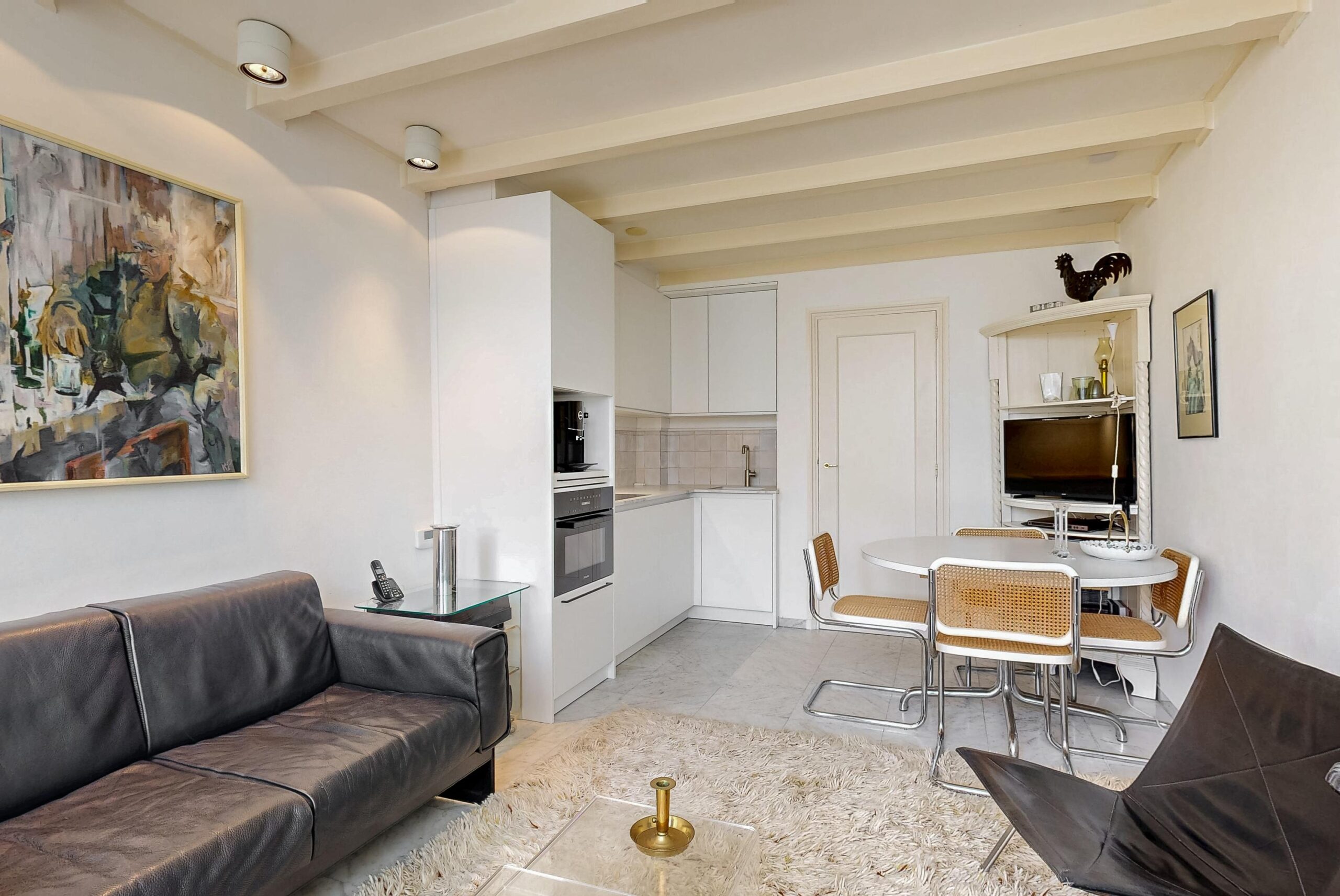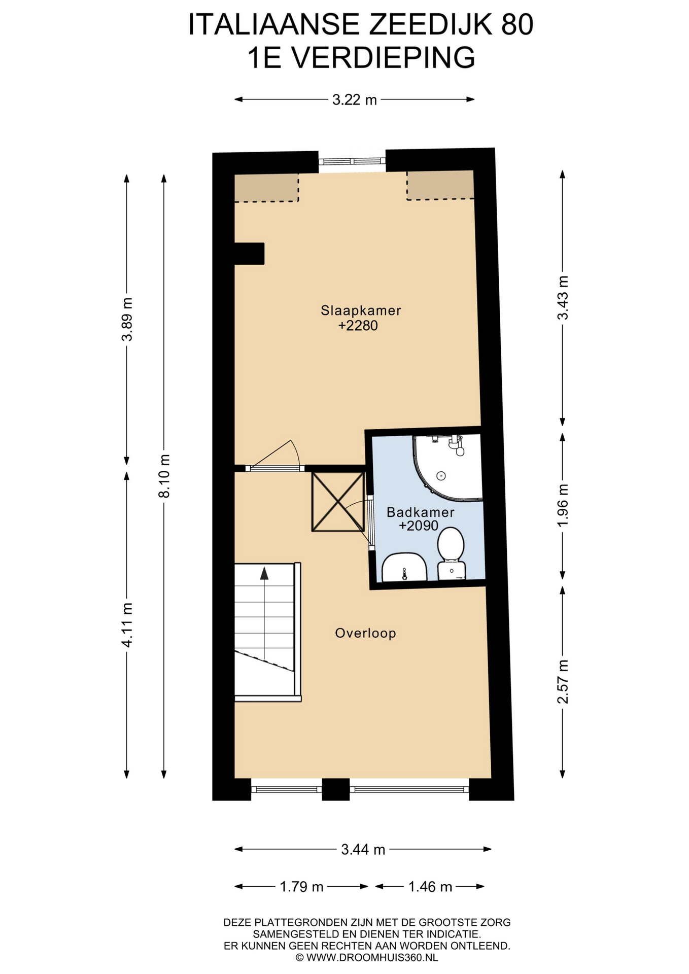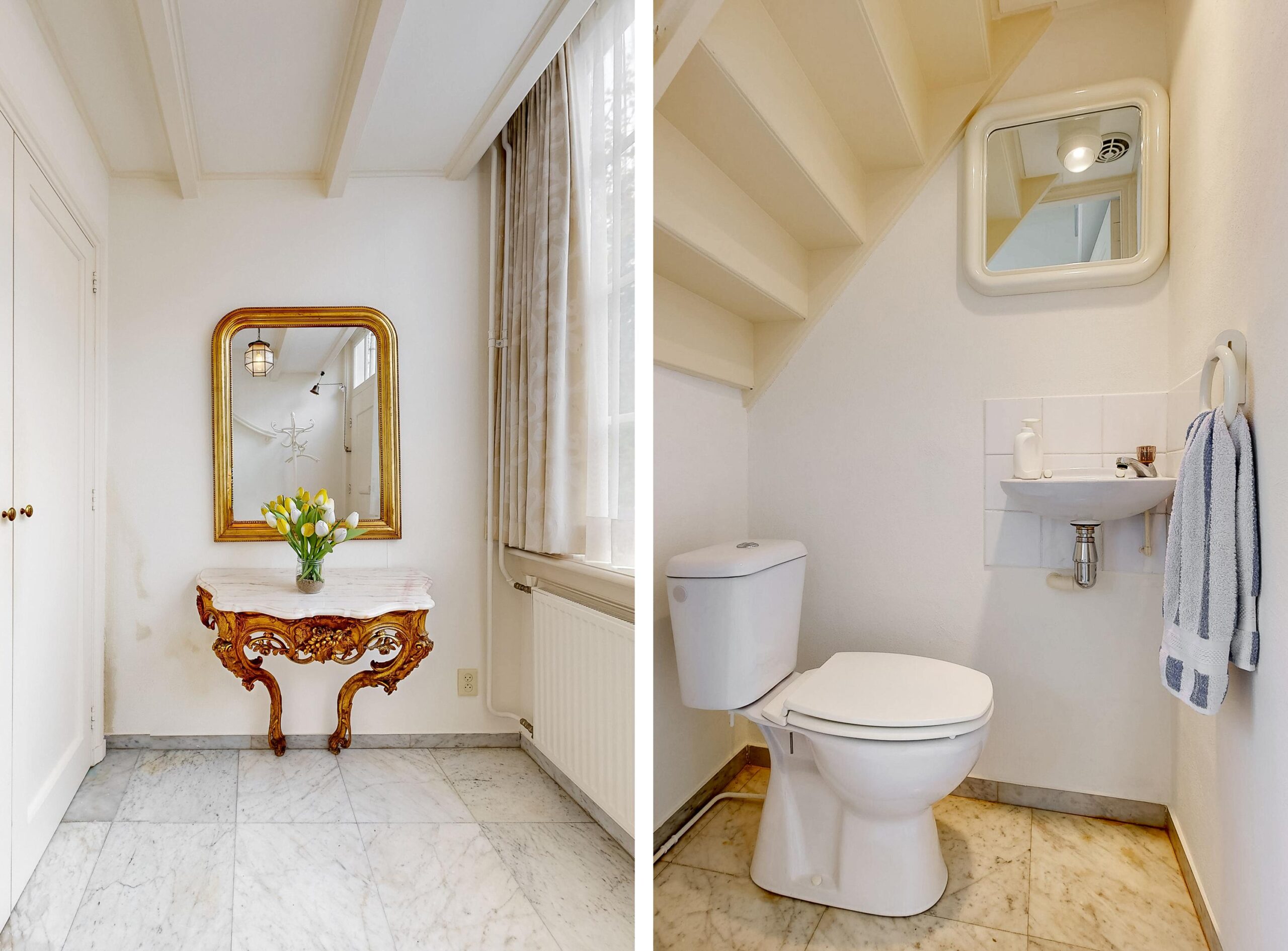 Eerste verdieping: zeer ruime overloop (voorheen was hier de 2e slaapkamer en deze is eenvoudig weer te creëren), volledig betegelde badkamer voorzien van 2e toilet, wastafel en douchecabine. Aan de achterzijde van de woning is de grote slaapkamer gelegen met trap naar 2e verdieping.