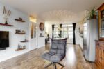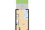 Indeling: hal met bergkast, woonkamer aan de voorzijde, gesloten trapopgang met toilet, vergrote open keuken met rechte unit voorzien van inbouwapparatuur, dubbele openslaande tuindeuren naar de veranda en achtertuin welke is gelegen op het zonnige zuidoosten en voorzien van meerdere zitjes, een achterom en overkapping met sedumdak voor de stalling van fietsen.
