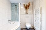 Eerste verdieping: overloop, drie slaapkamers en een complete badkamer met tweepersoons ligbad met douche, 2e toilet en designradiator.