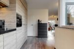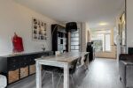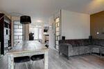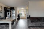 Indeling: entree, woonkamer met fraaie PVC vloer voorzien van vloerverwarming, hoge deuren, en pleisterwerk wanden, open keuken met luxe L-vormige eikenlook unit (2020) voorzien van inbouw koelkast/vriezer, combimagnetron, inductie kookplaat, RVS afzuigkap, vaatwasser en granieten aanrecht, trapportaal met toiletruimte voorzien van wandcloset.