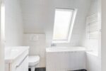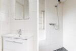 Eerste verdieping: overloop, 3 ruime slaapkamers en wit/grijze badkamer met inloopdouche, zitbad, 2e wandcloset en wastafelmeubel.