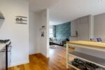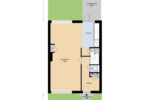 Indeling: entree met toilet en trapgang, doorzon woonkamer met open keuken met rechte unit voorzien van vaatwasser, tafelmodel koelkast met vriesvak en groot SMEG-fornuis met oven, ruime handige inloopkast. Toegang tot de tuin.