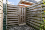 De achtertuin is gelegen op het zuiden, circa 11 meter diep, onderhoudsvriendelijk en voorzien van een houten berging en achterom.