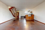 Indeling: uitgebouwde entree met toilet en binnendoor bereikbare berging, open keuken met eenvoudige rechte unit, tuingerichte woonkamer met plankenvloer, open trapopgang en uitzicht op “Station Zwaag”.