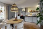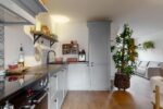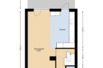 Begane grond: voortuin, entree, hal, modern toilet (2022), trapopgang, fijne woonkamer met een open keuken aan de achterzijde met een moderne L-vormige keukenunit (2022) voorzien van vaatwasser, fornuis met inductieplaat en gril, koel-/vriescombinatie en afzuigkap. De gehele begane grond is voorzien van een keurige pvc-vloer. Via de keuken toegang tot de zonnige tuin met overkapping, berging en achterom.