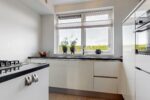 Bij binnenkomst treft u de hal met toegang tot het toilet. De open keuken is modern ingericht en beschikt over inbouwapparatuur, waaronder een recent vernieuwde combioven (2024) en een vaatwasser (2023).
