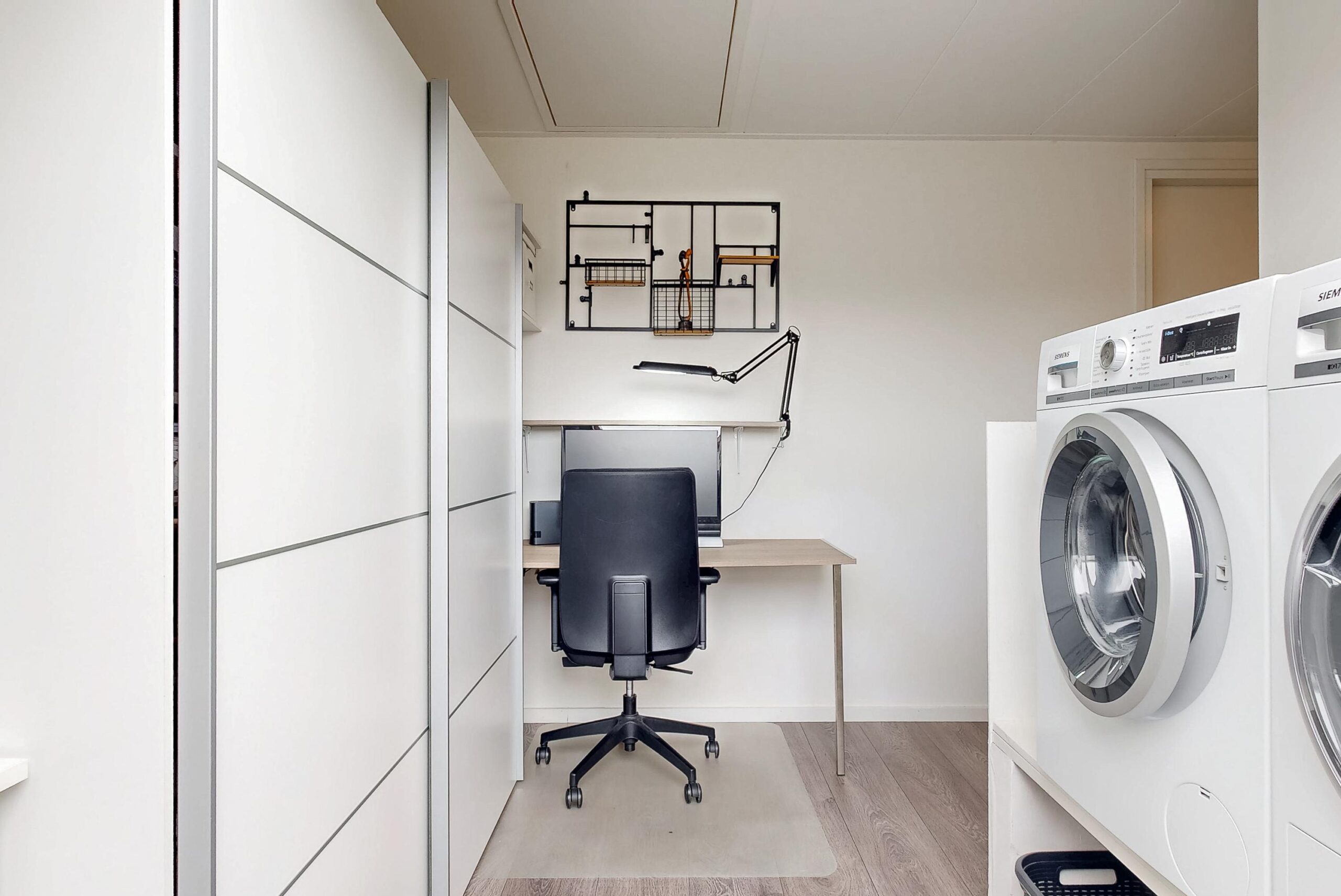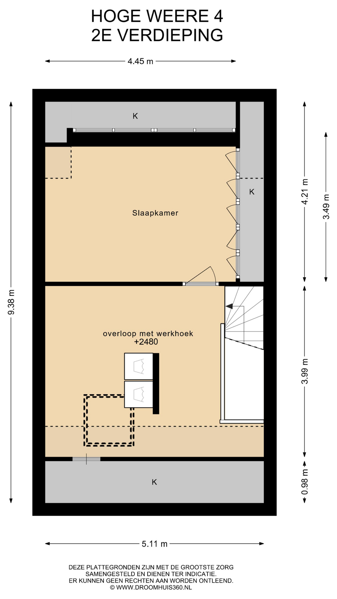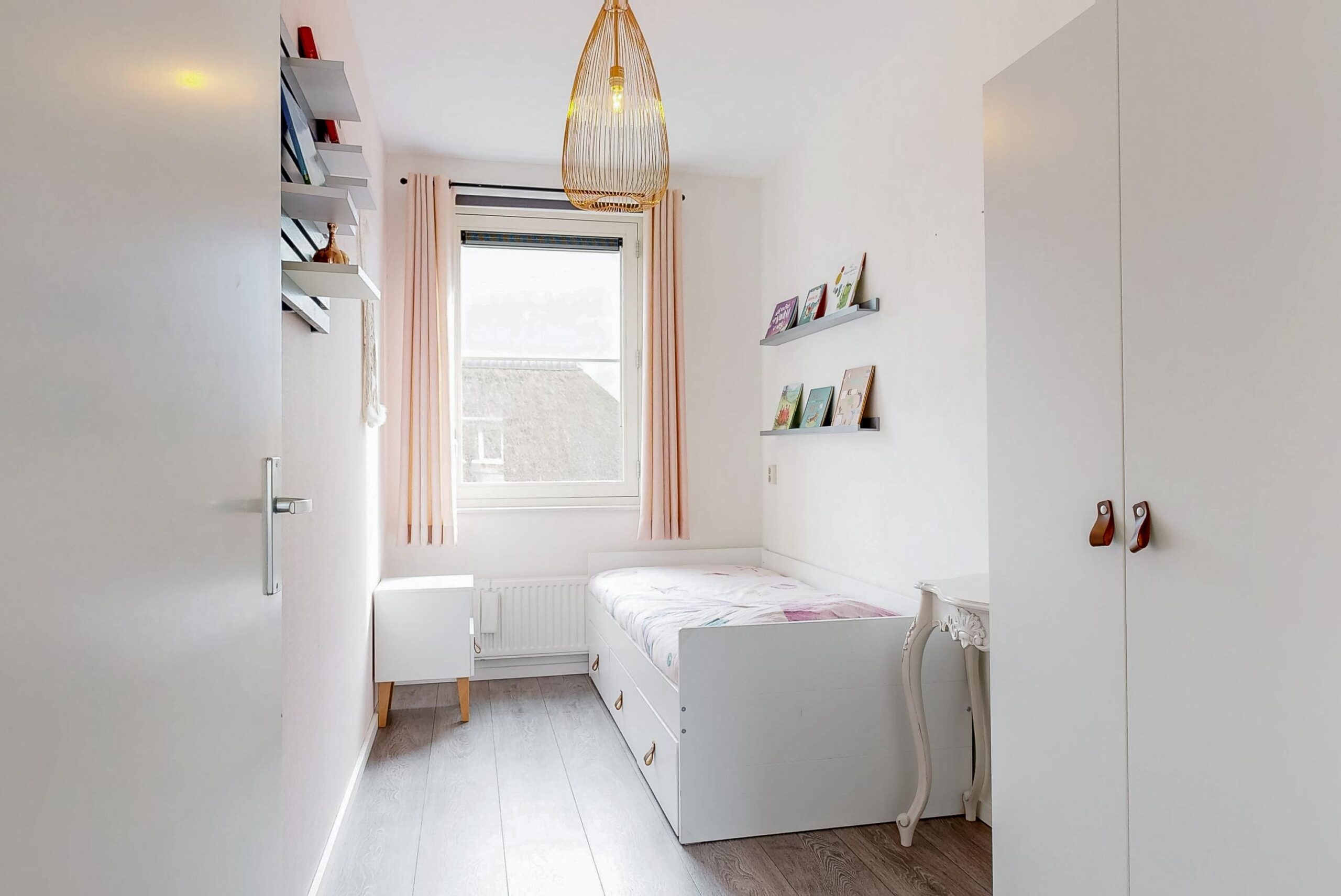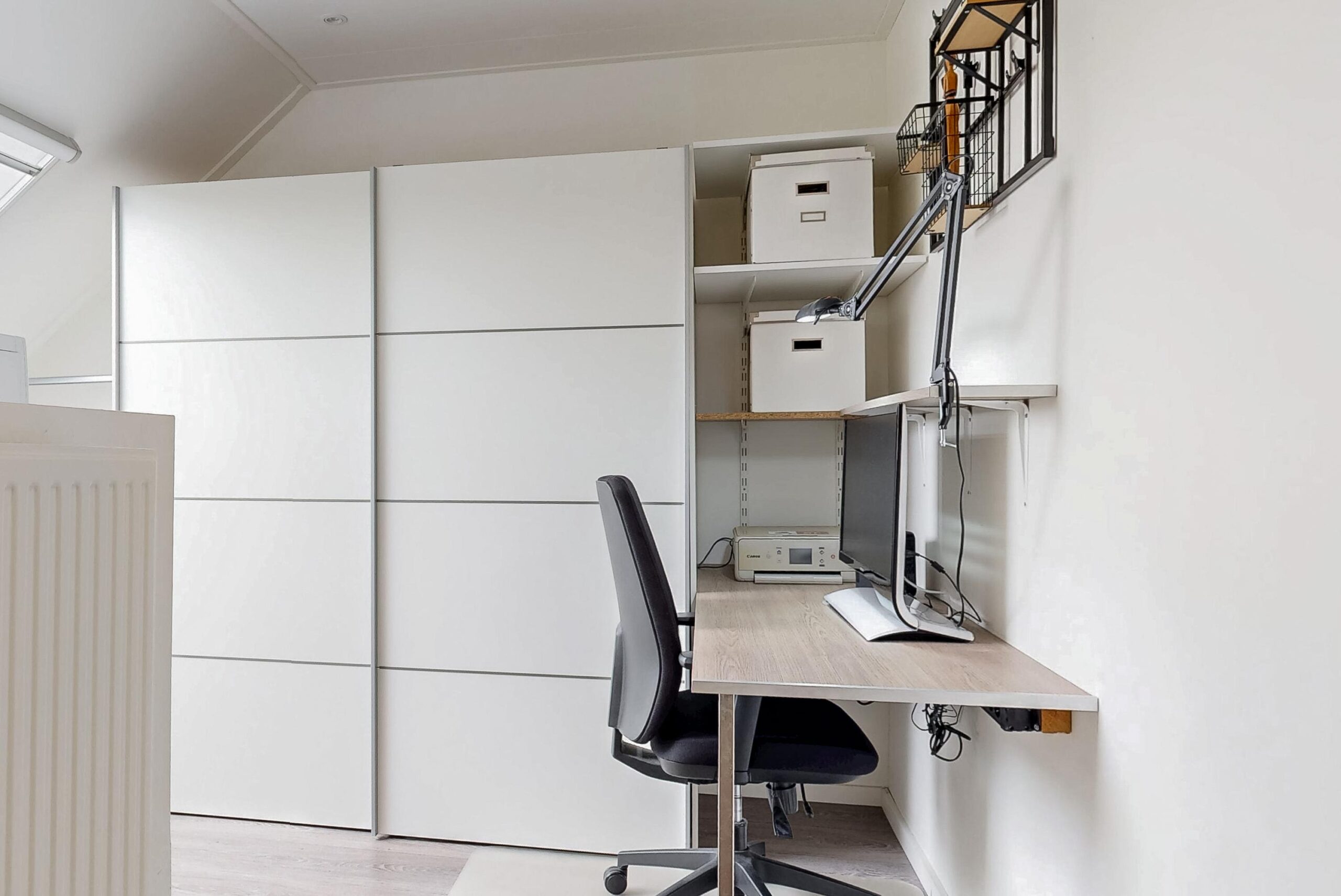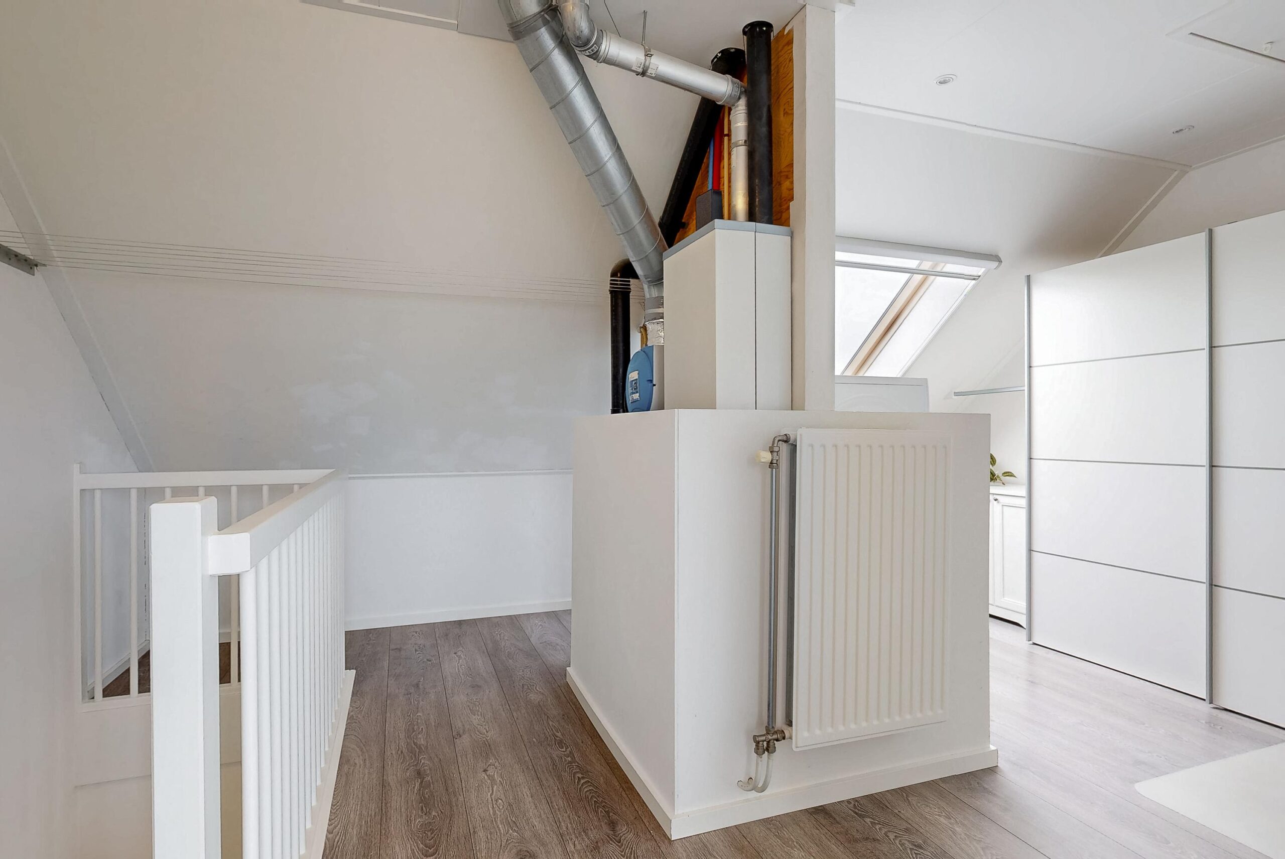 Tweede verdieping: ruime voorzolder met wasmachine/droger opstelling, groot dakraam en werkhoek, zeer ruime 4e slaapkamer met grote kunststof dakkapel en prachtig panoramisch uitzicht.