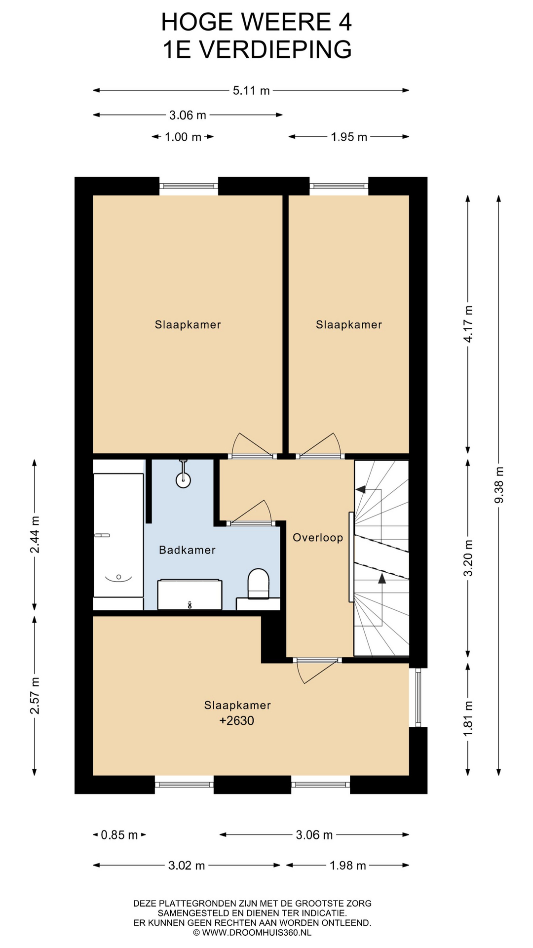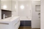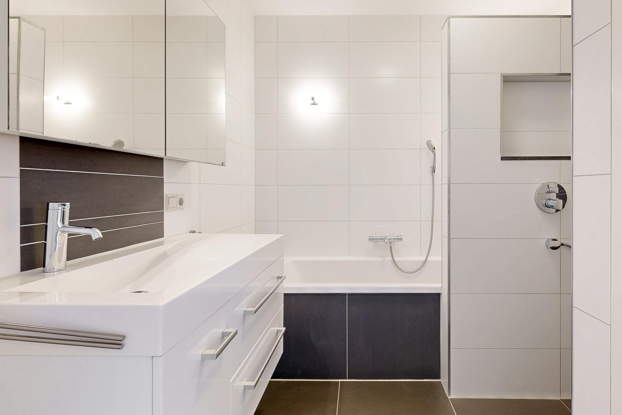 Eerste verdieping: overloop, drie slaapkamers, en complete badkamer met inloopdouche, wastafelmeubel, 2e wandcloset, duobad en vloerverwarming.