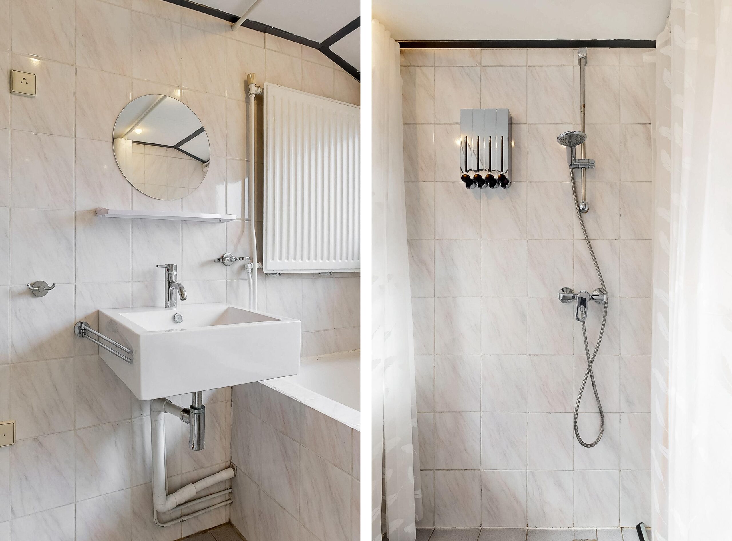 Eerste verdieping: overloop, 2 slaapkamers waarvan 1 met dakkapel, volledig betegelde badkamer voorzien van dakkapel, ligbad, wastafel en douchehoek.