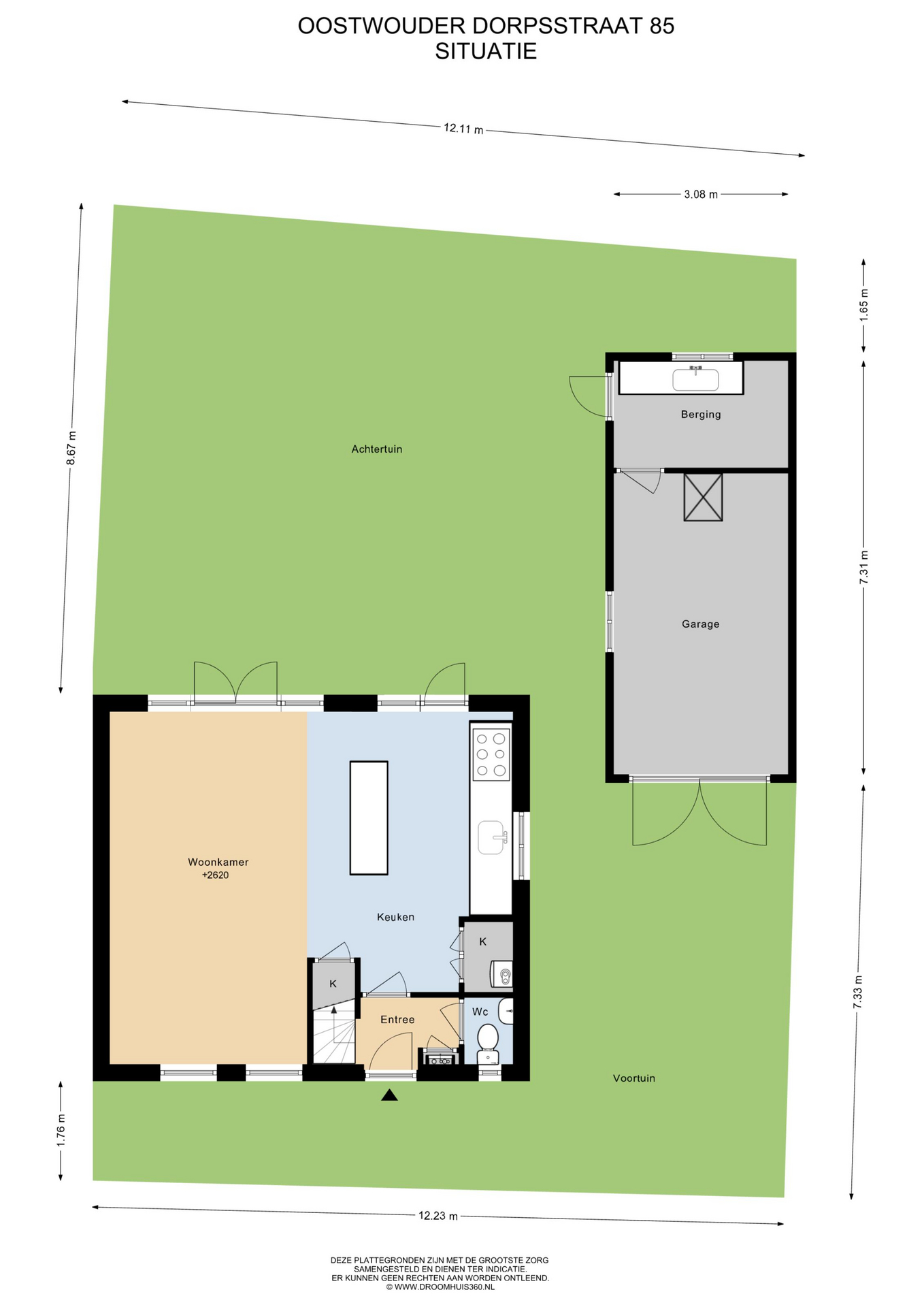 De garage is eenvoudig met de auto bereikbaar te maken door schutting en struiken te verwijderen.