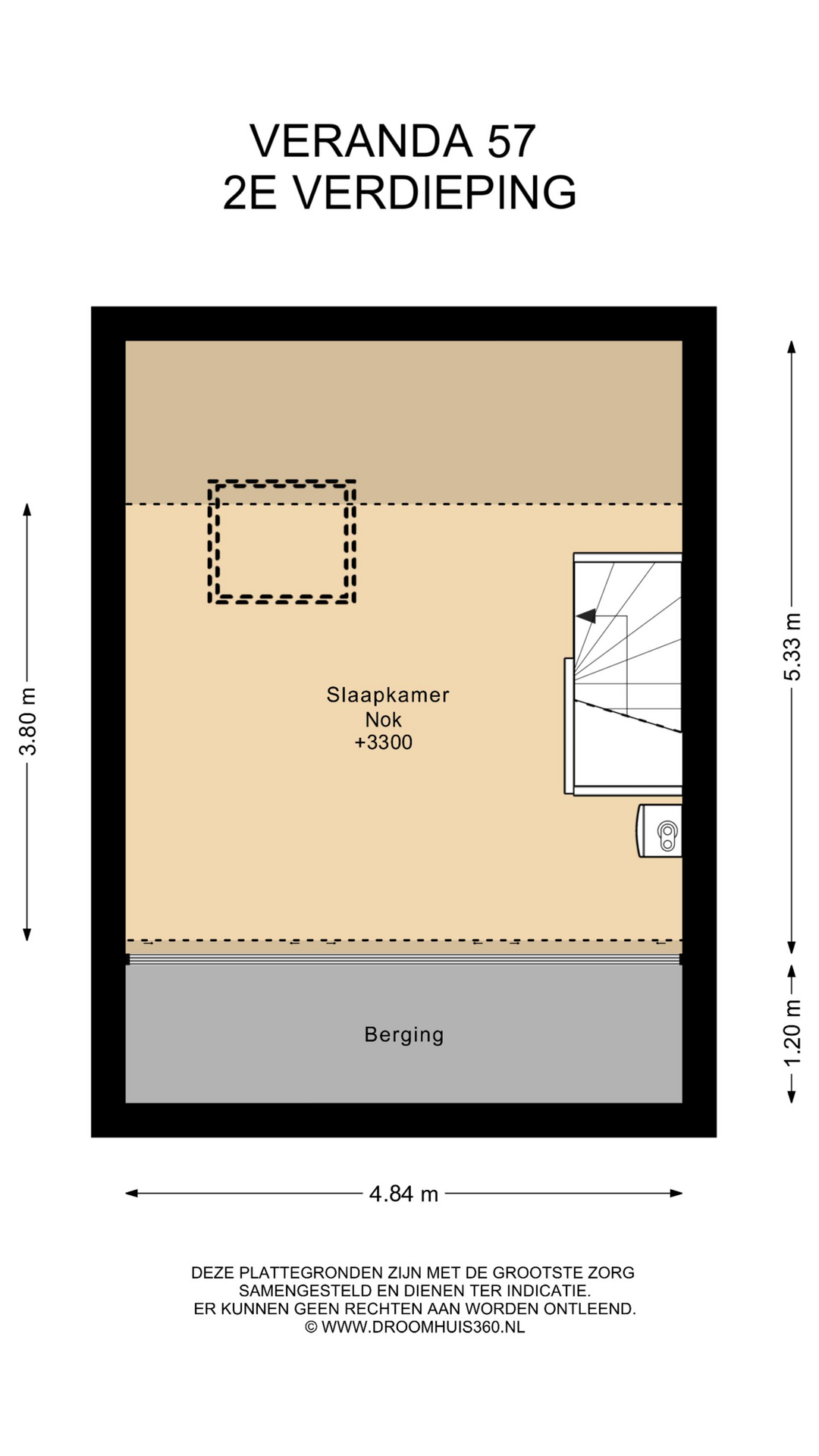 Tweede verdieping: open zolderruimte met cv-opstelling (2024) en mogelijkheid om een extra slaapkamer (4e) te realiseren, een groot dakraam is reeds aanwezig.